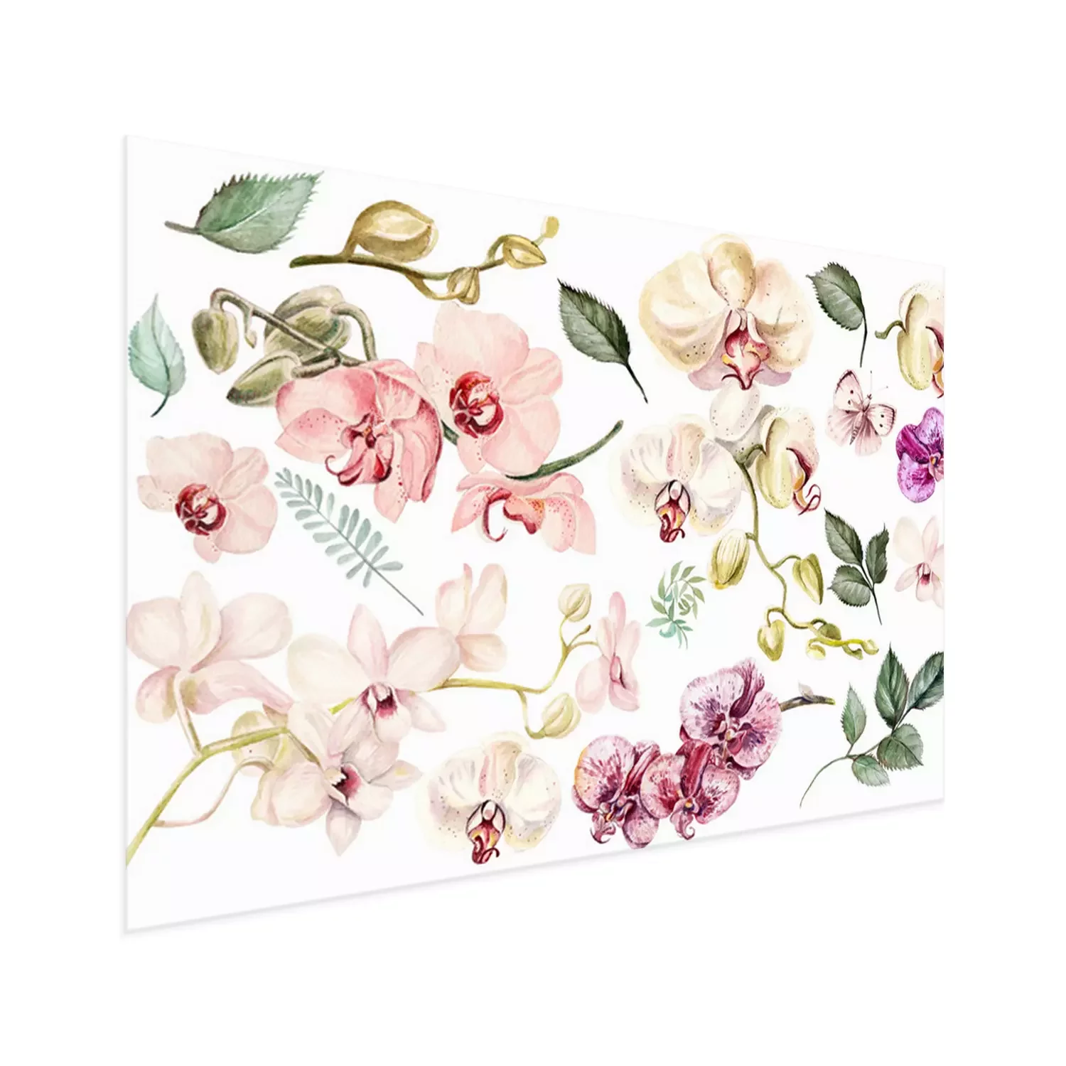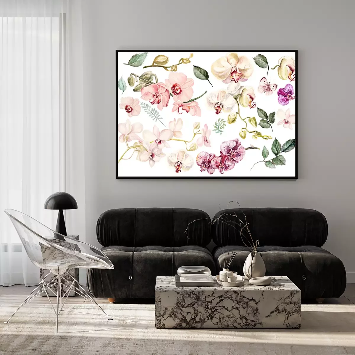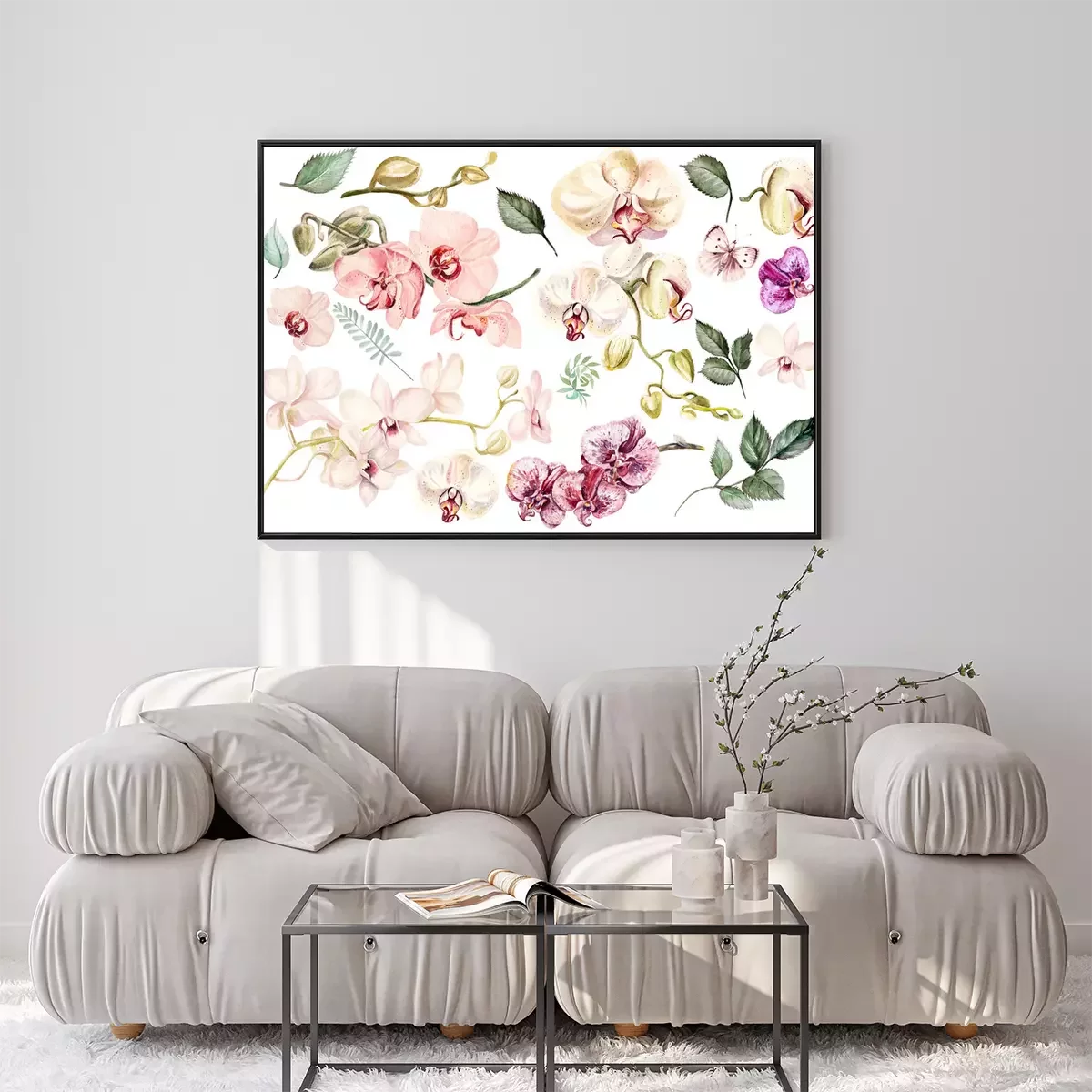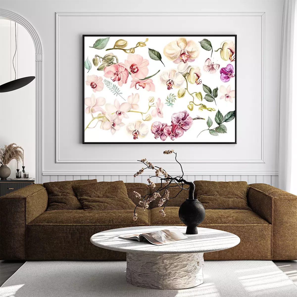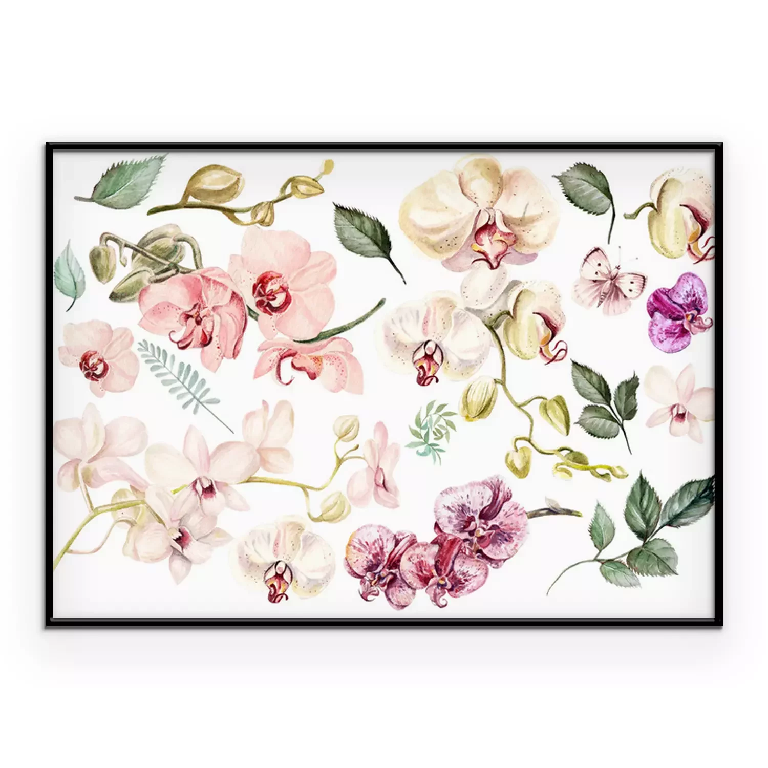 Poster Orchid bloemen naadloos patroon met bladeren en vlinders