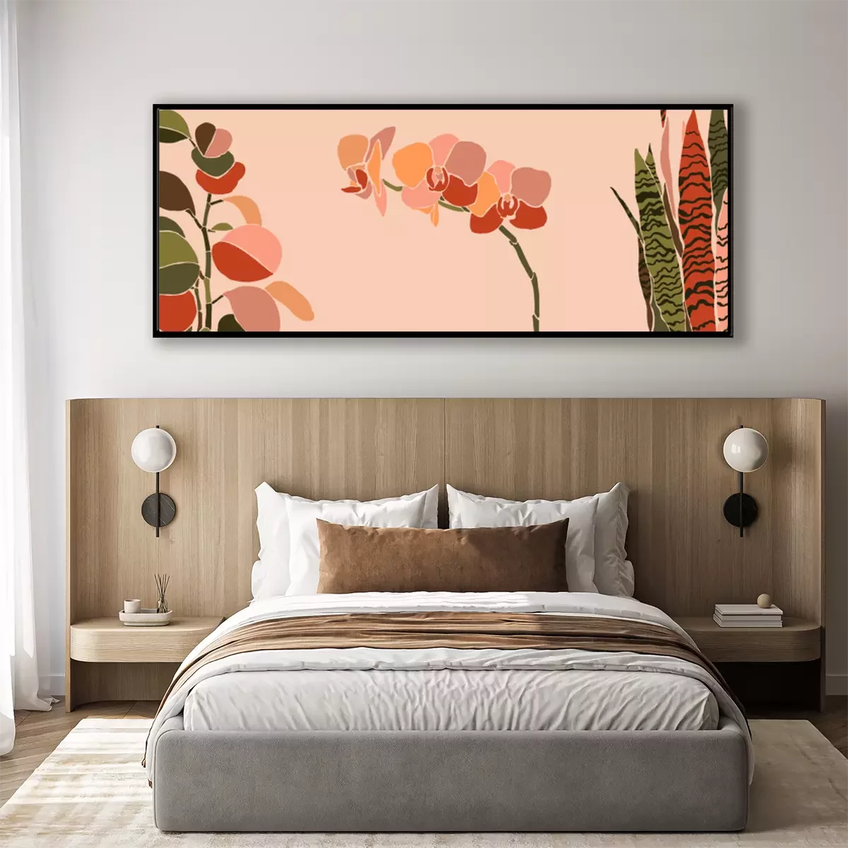 Poster: Orchidee en sensevieria in warme kleuren