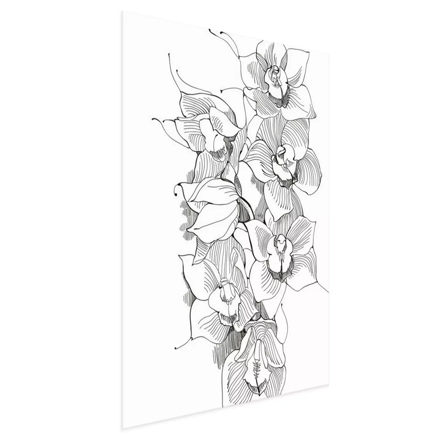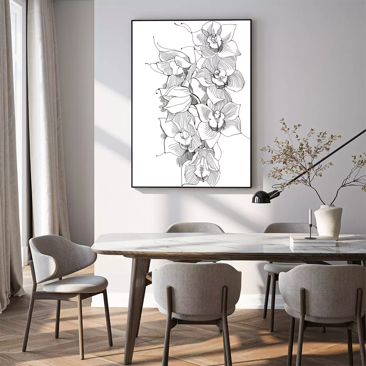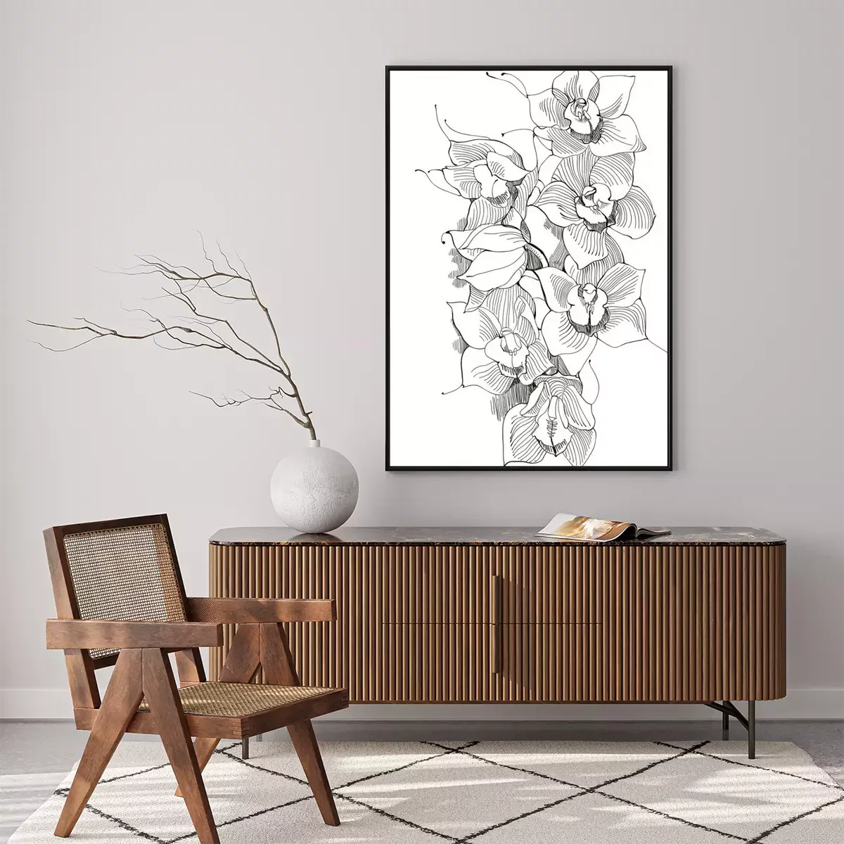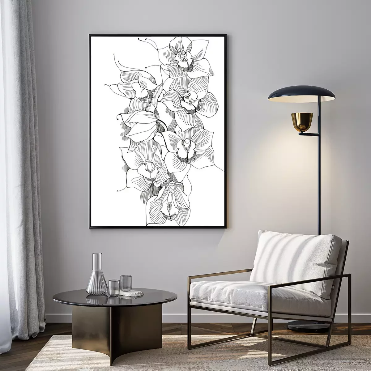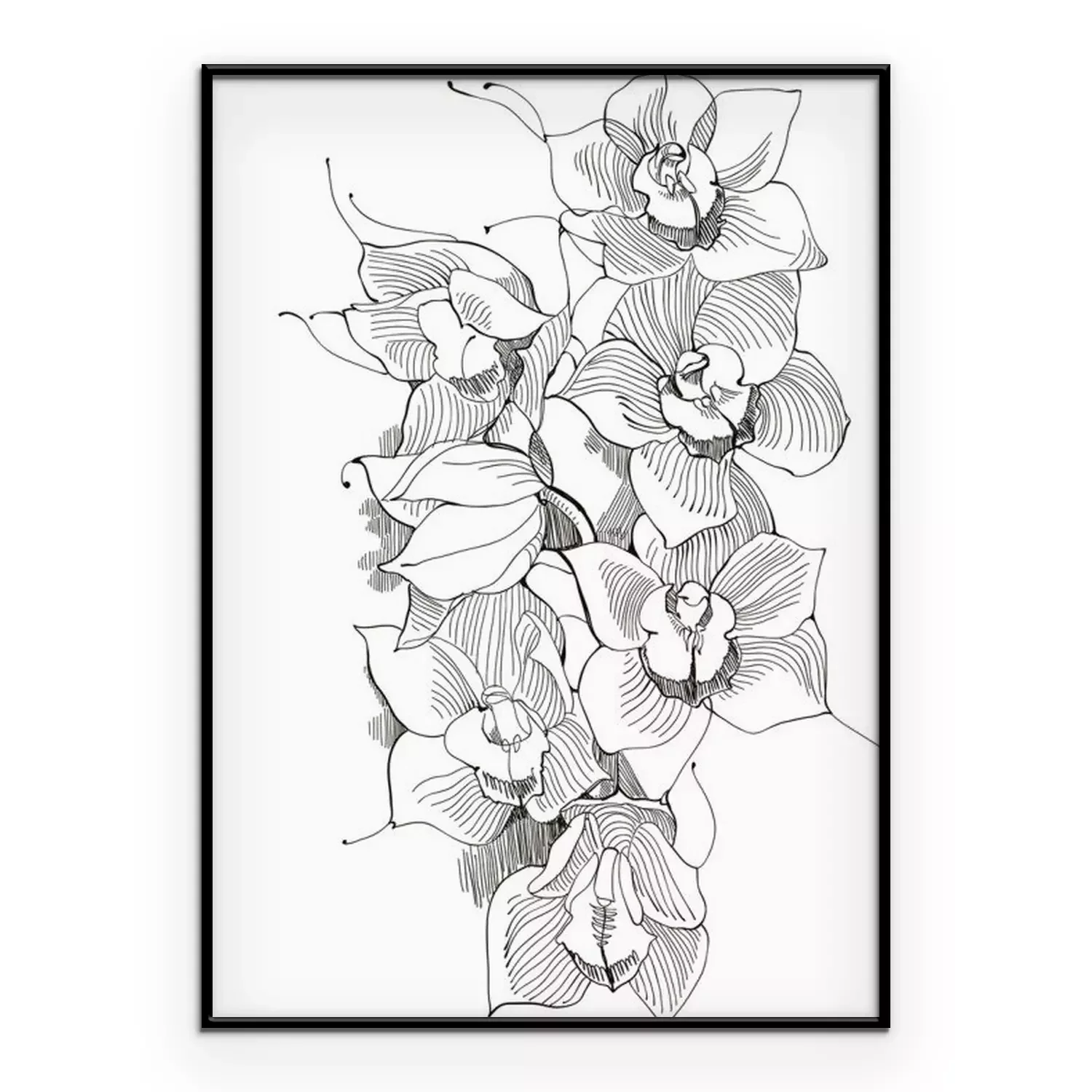 Poster: Orchideebloemen getekend met een zwarte lijn