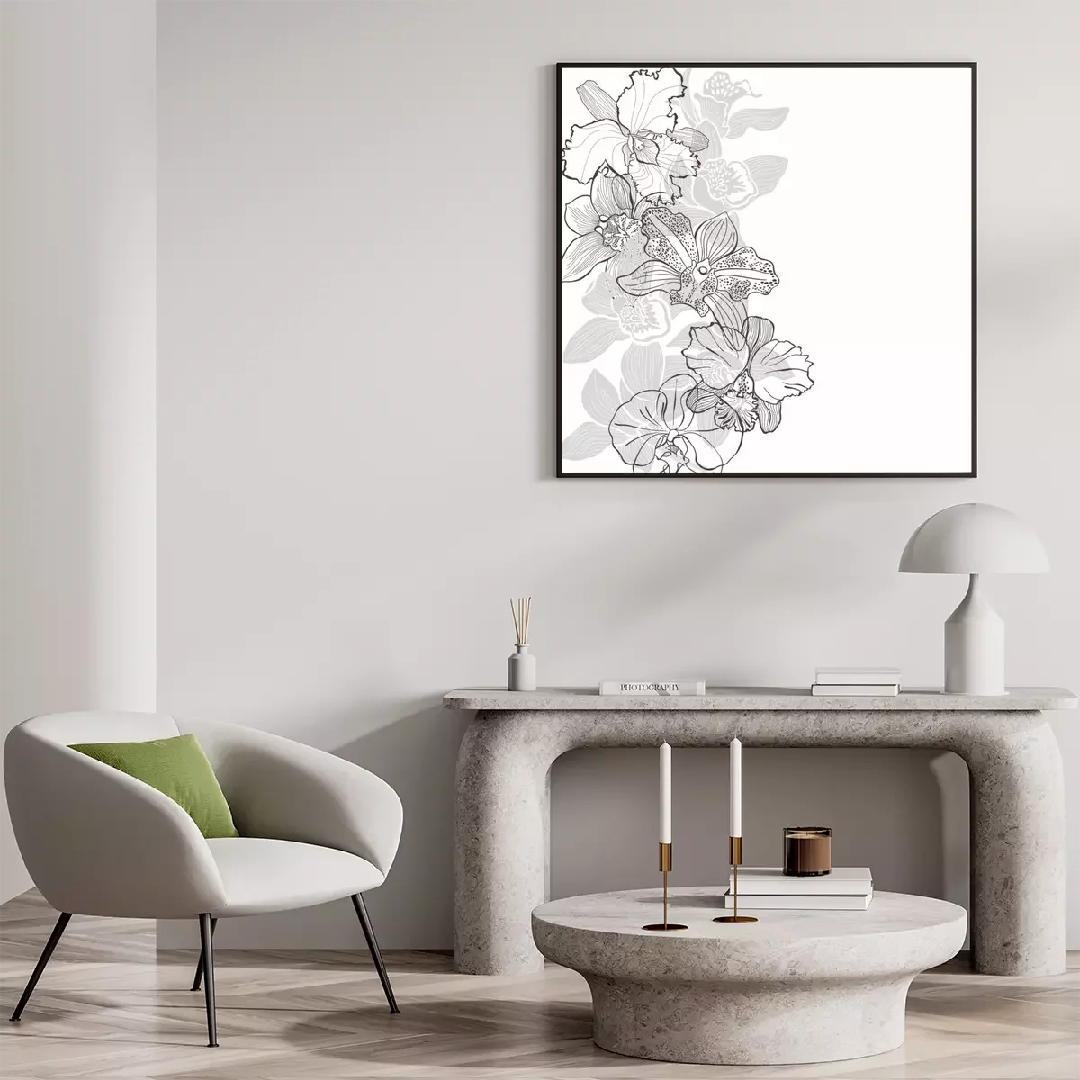 Bloemen naadloos patroon met hand getrokken verschillende orchideeën. Vector zwart-witte illustratie. Contour tekenen.