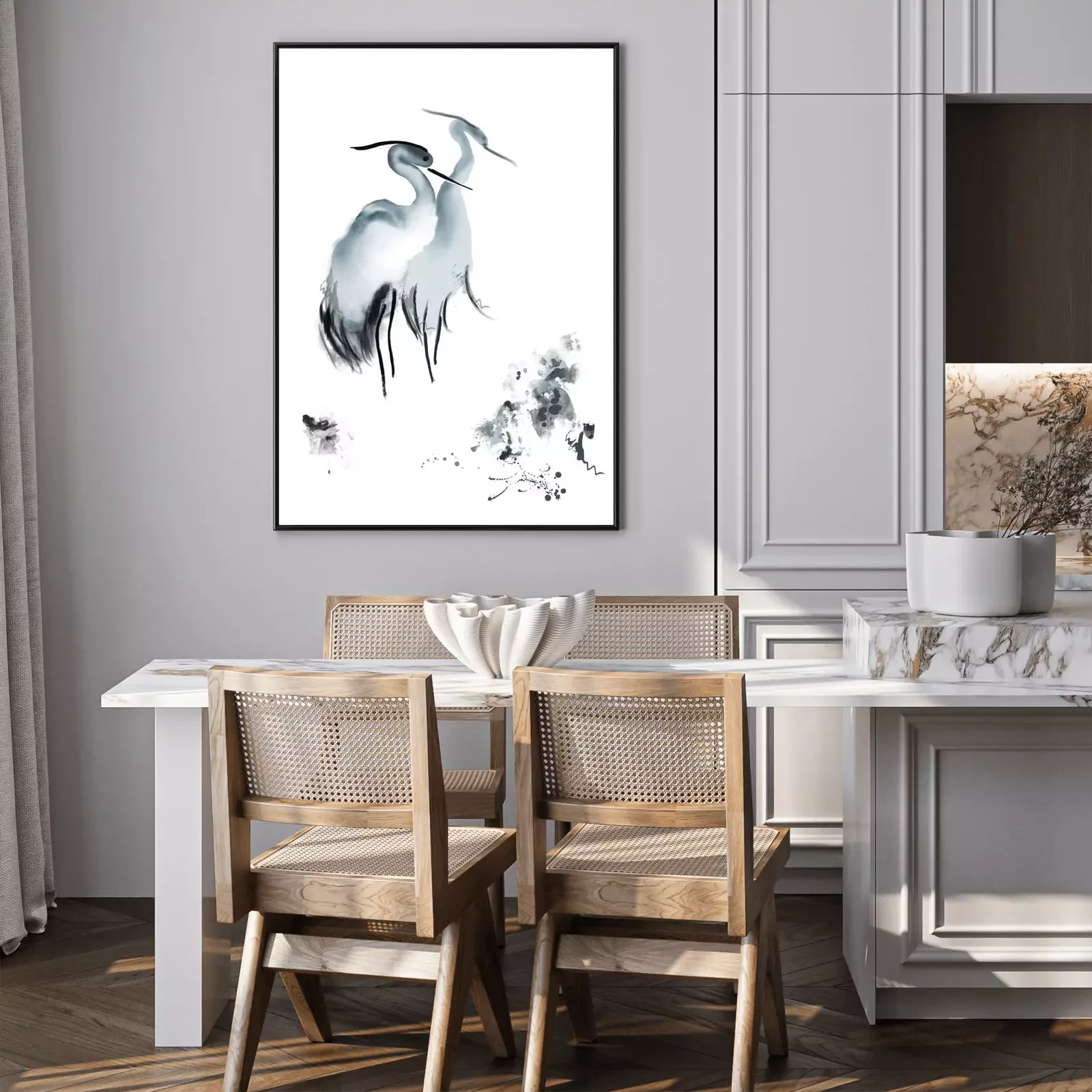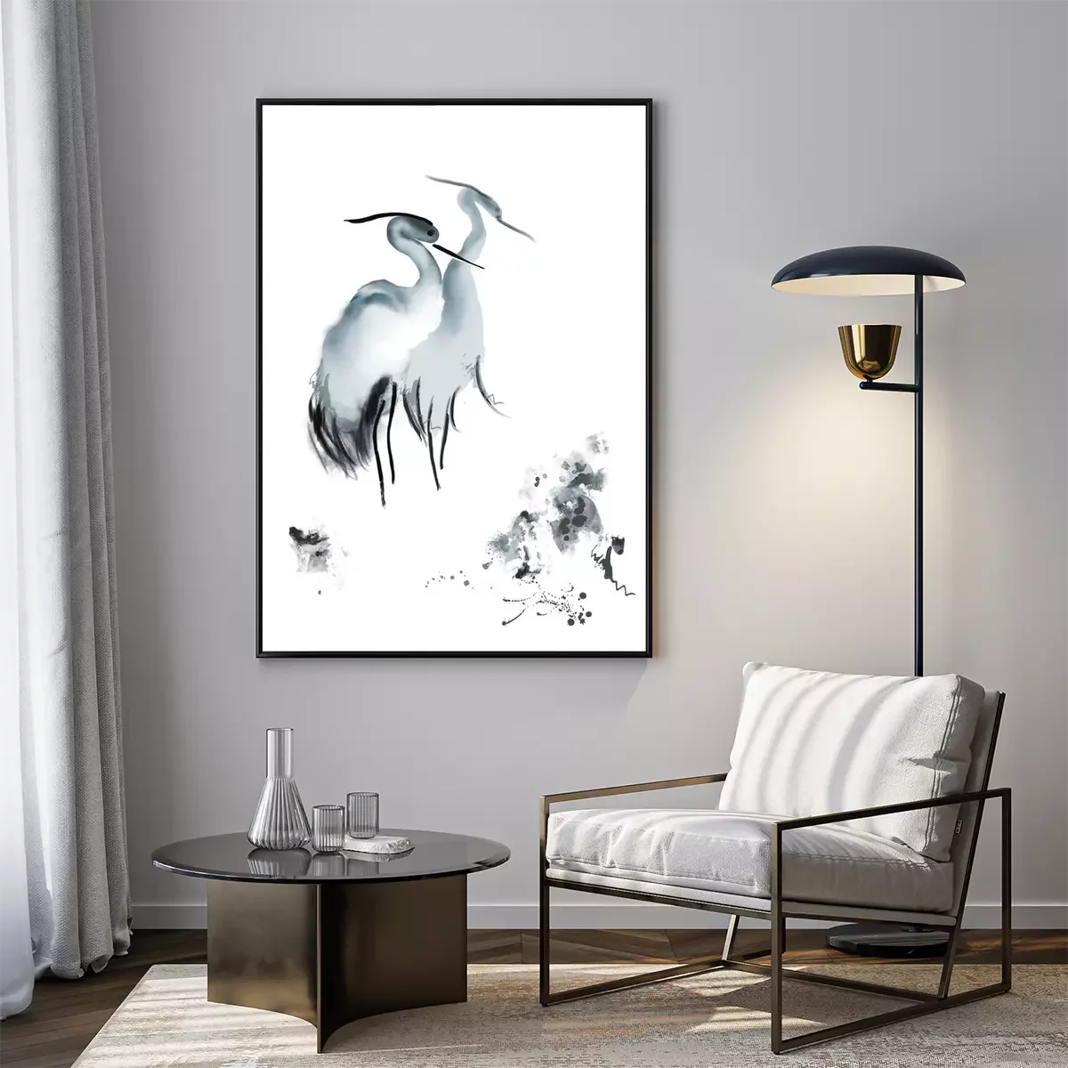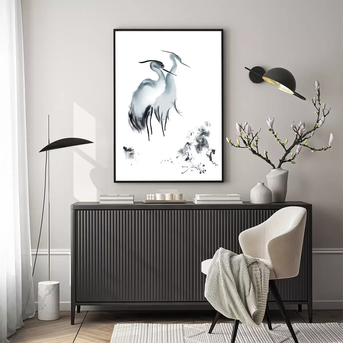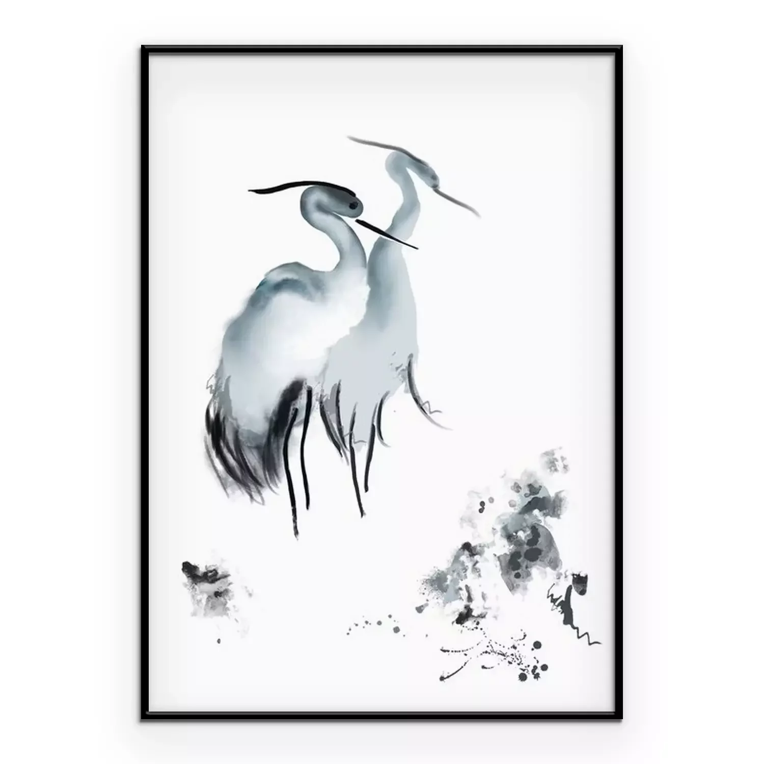 Poster: Oriënteer Japanse waterverf met kraanvogels