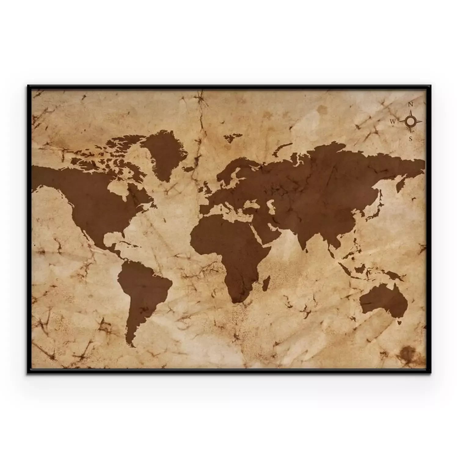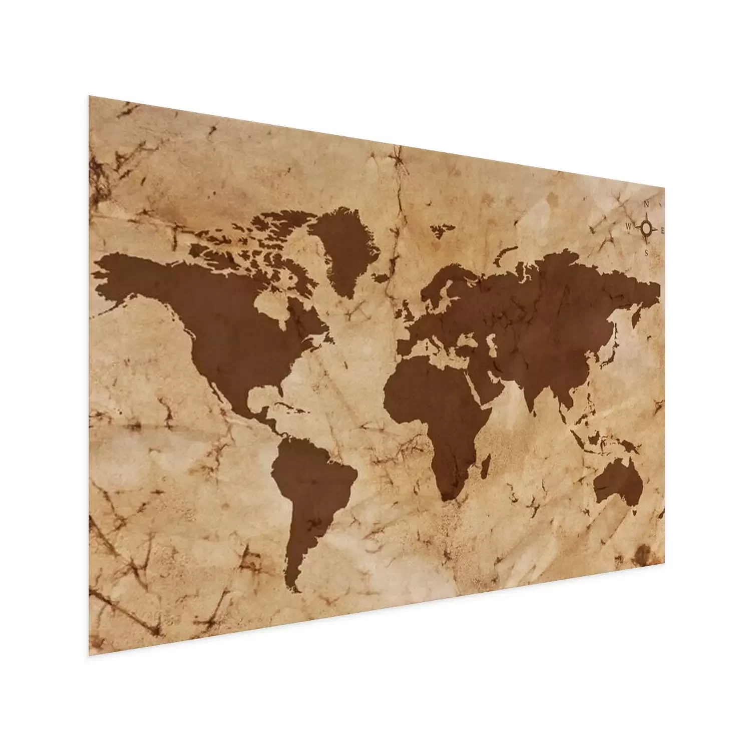 Poster: Oude kaart van de wereld op de gekreukte en gekleurd perkamentpapier