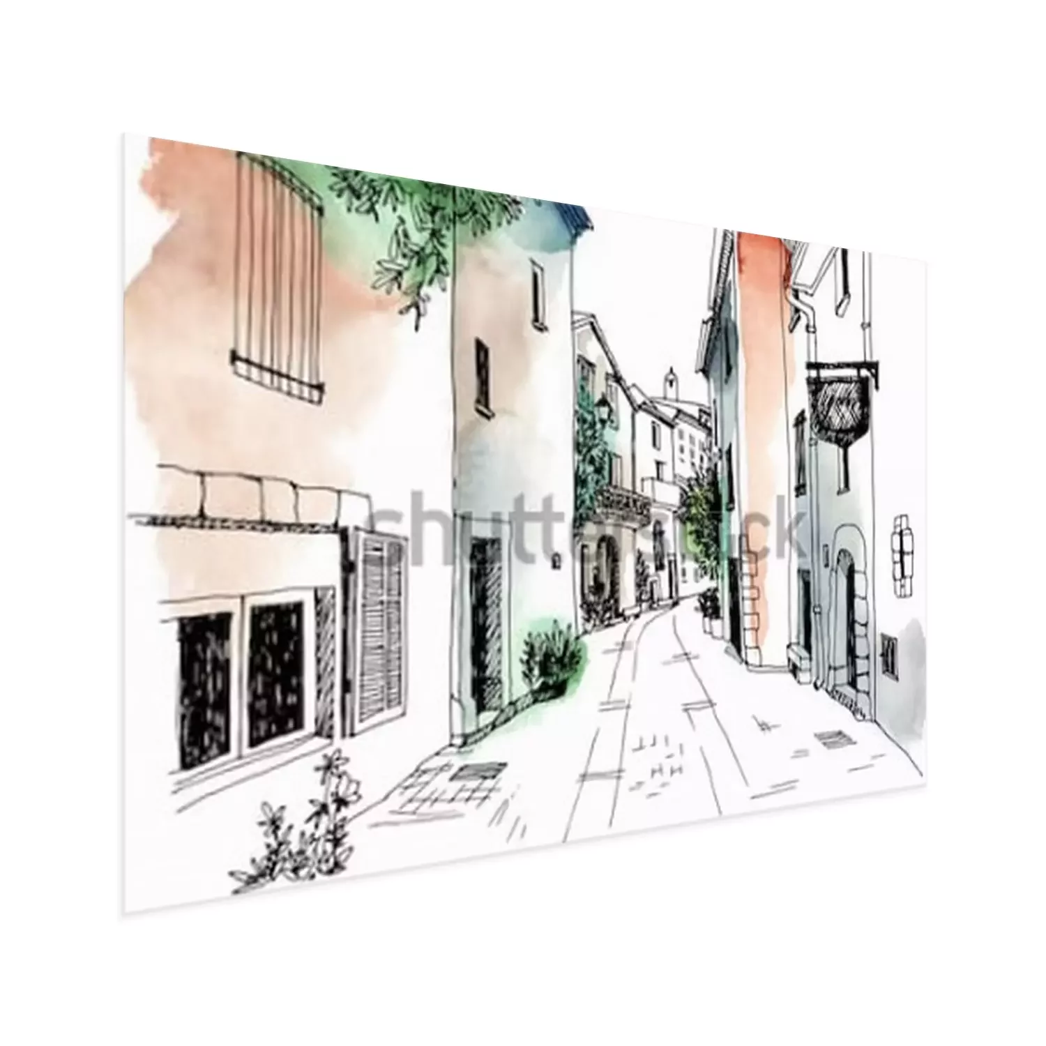 Poster: Oude stadsstraat in Frankrijk