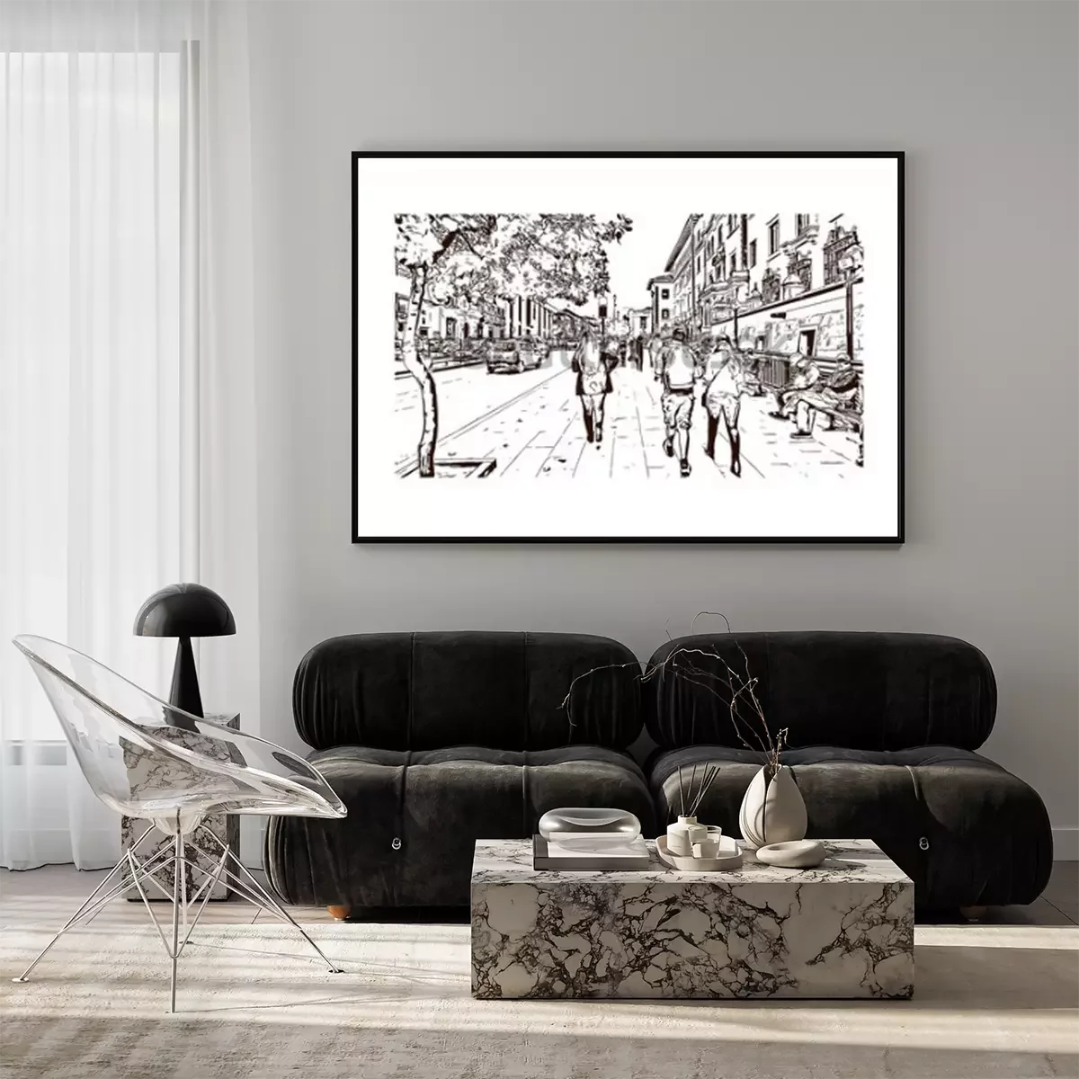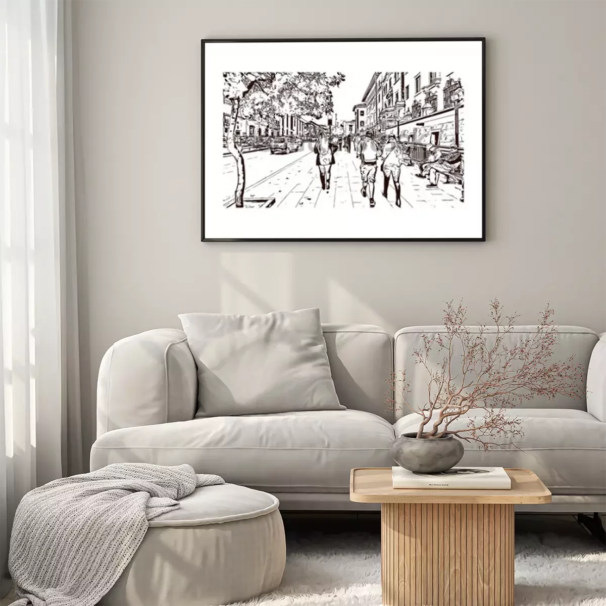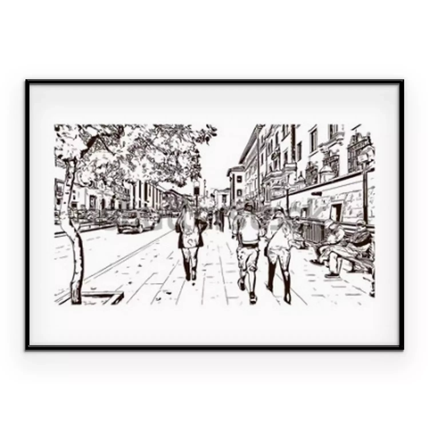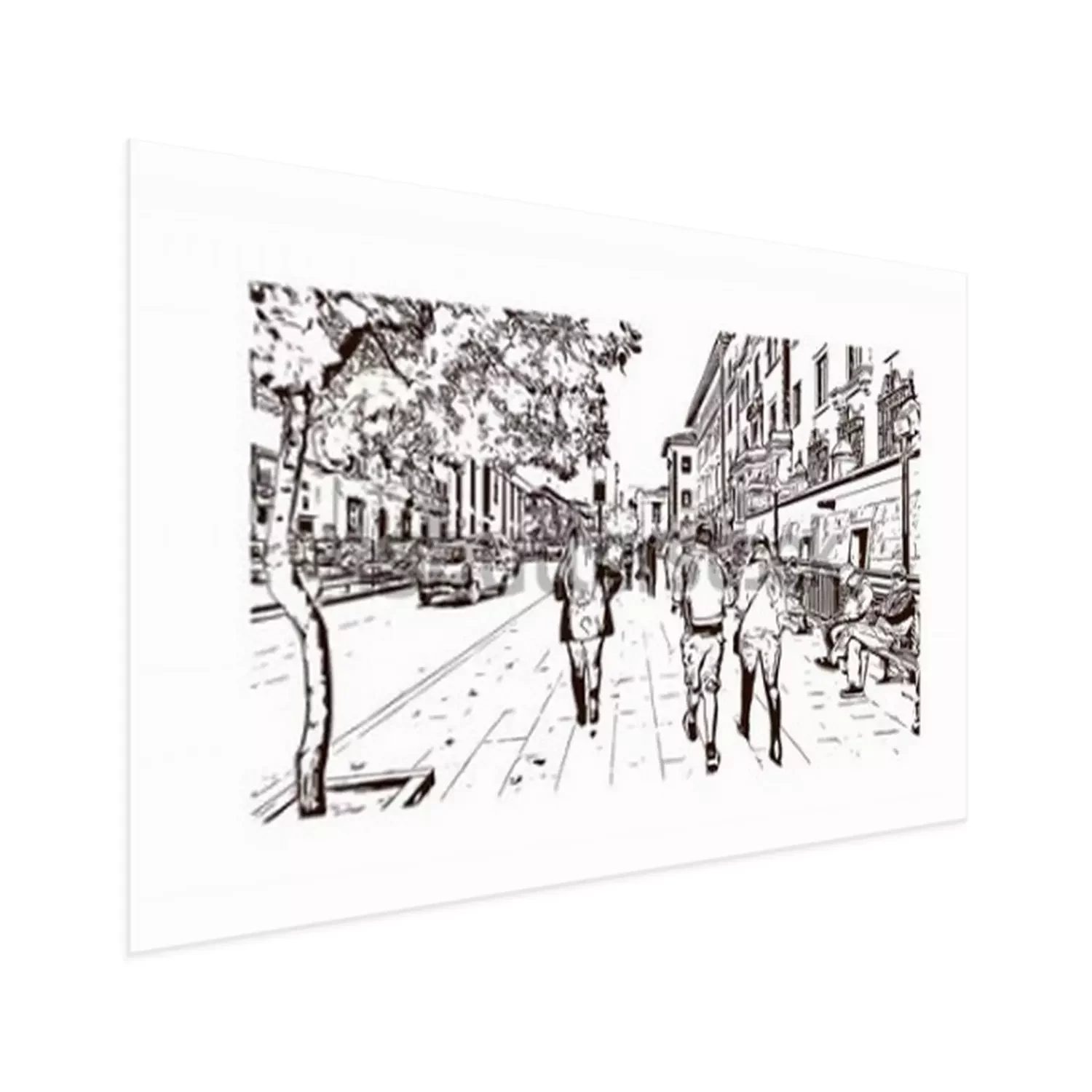 Poster Oude straten zwart-wit schets