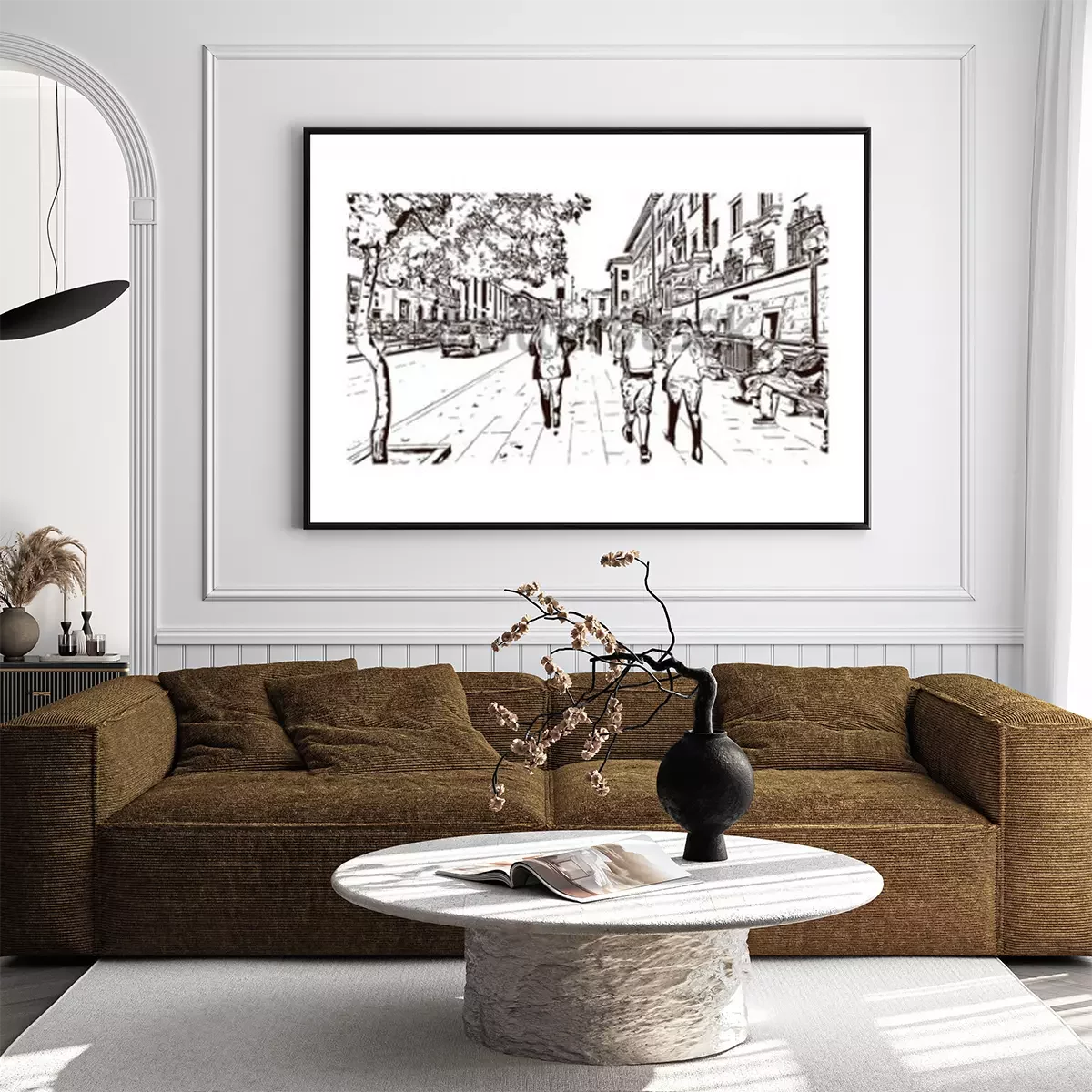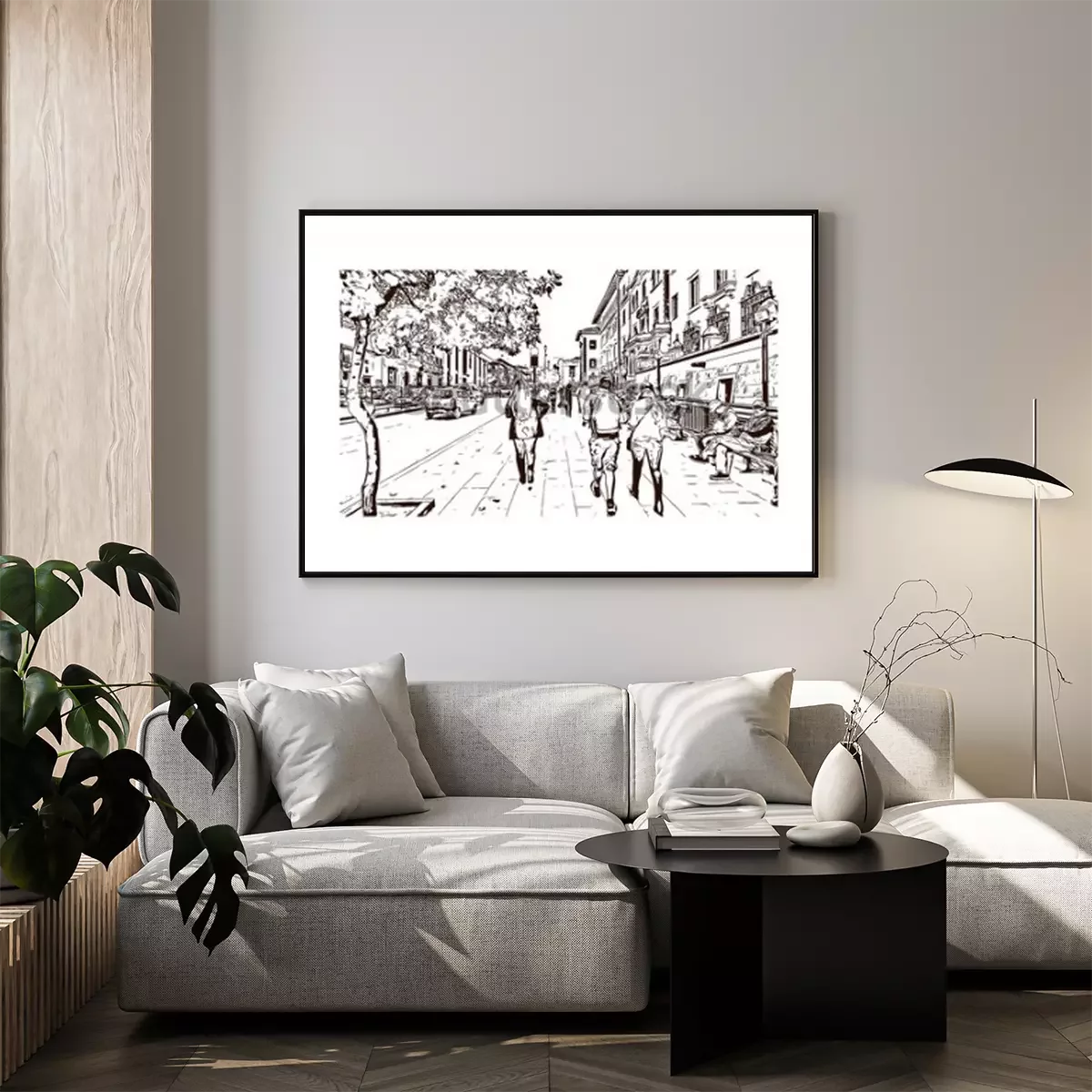Poster: Oude straten zwart-wit schets
