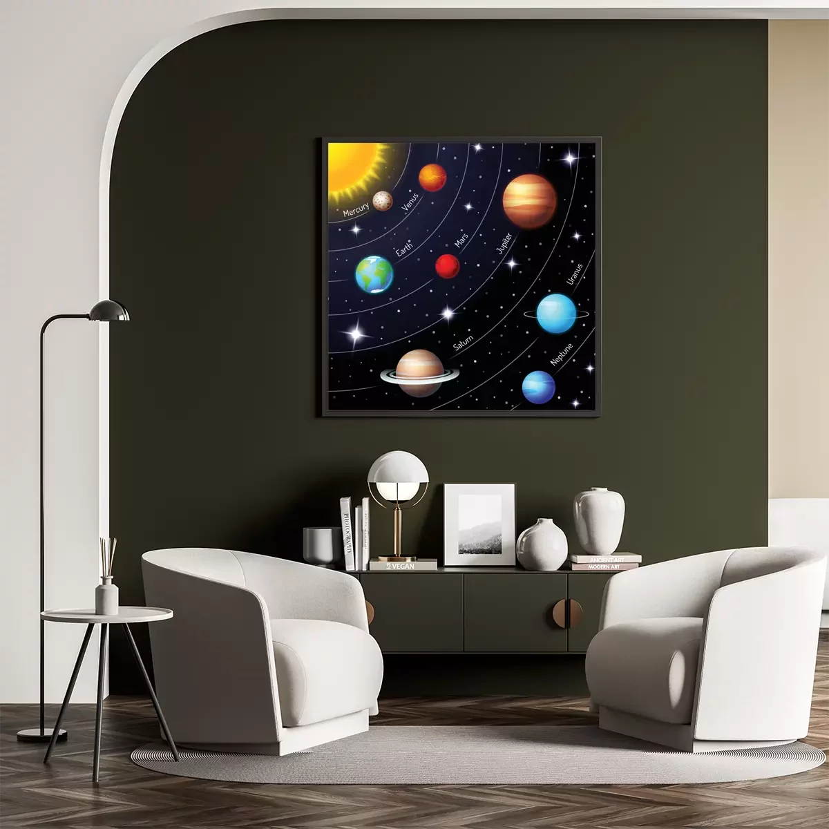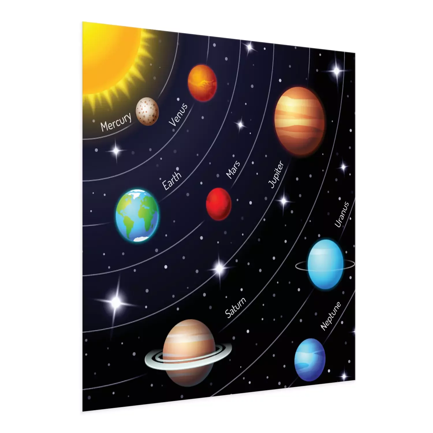Poster: Outer space for kids tekenfilmplaneten met namen