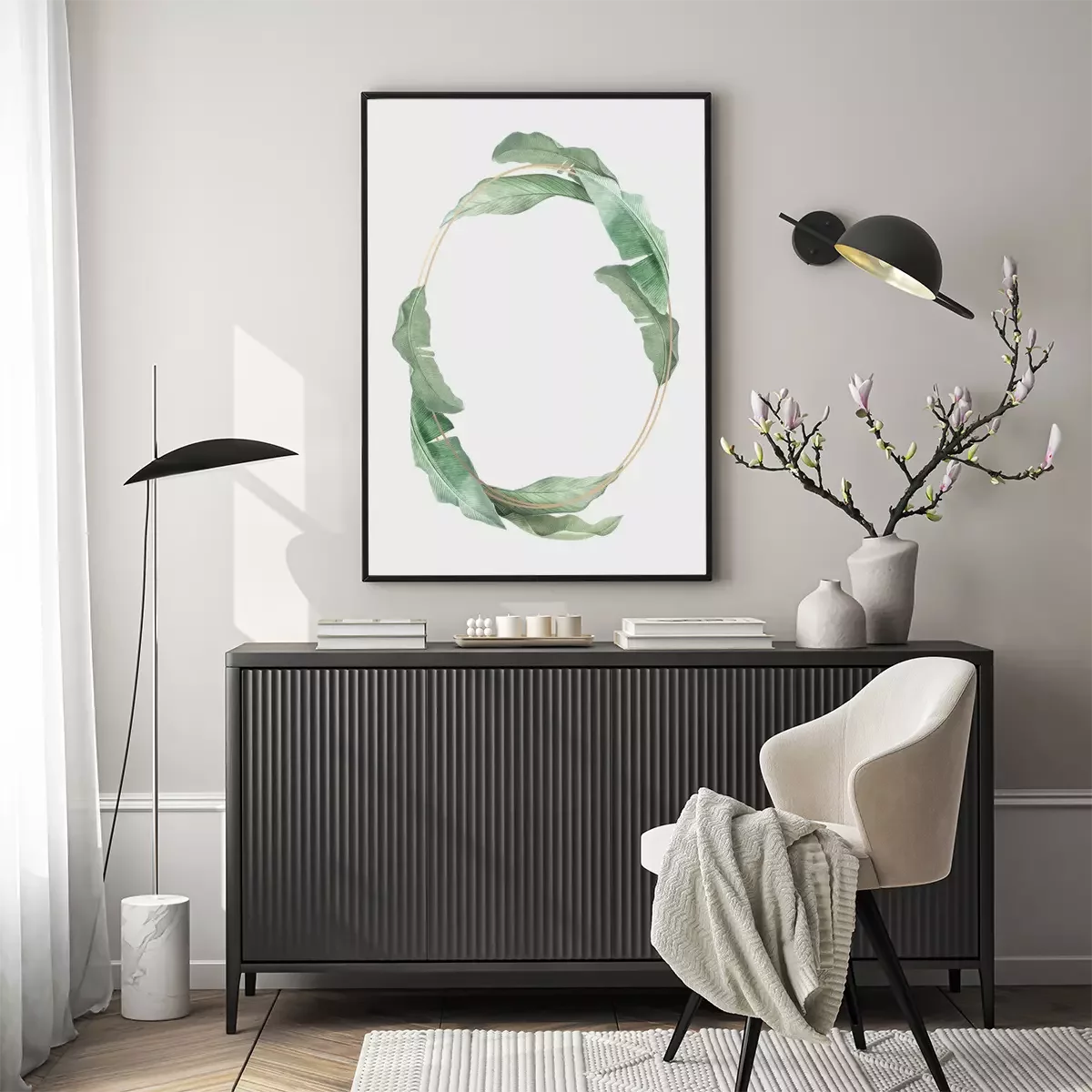 Poster Ovaal montuur met een botanische twist