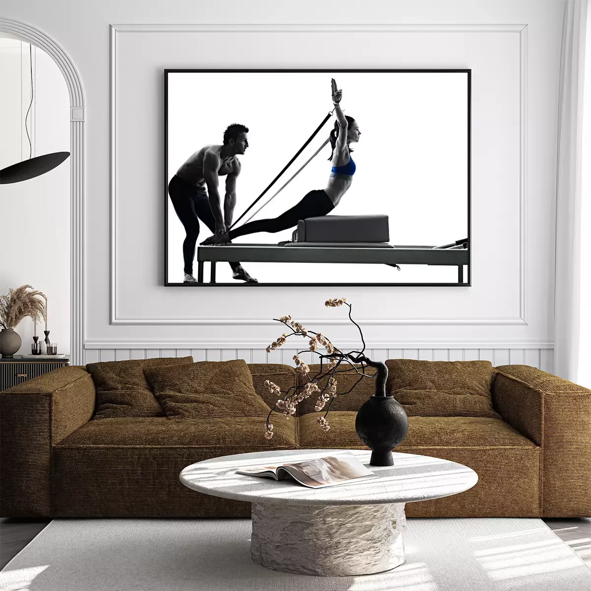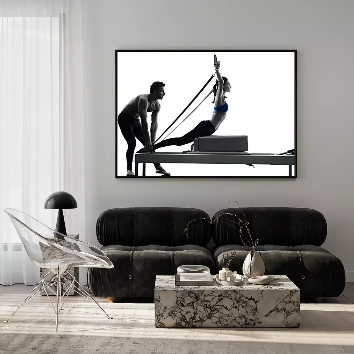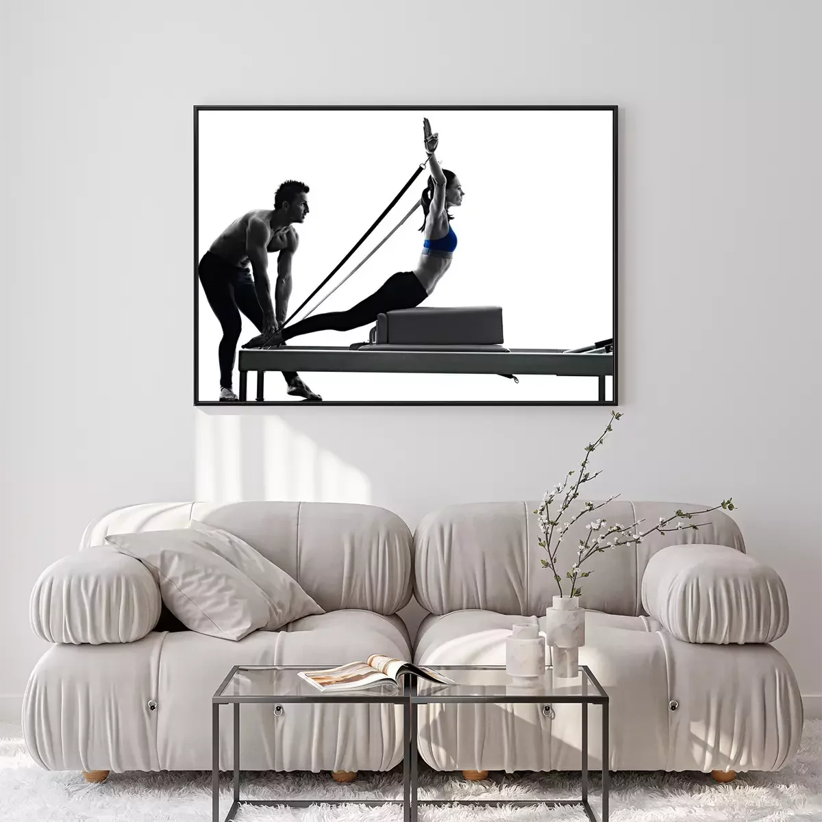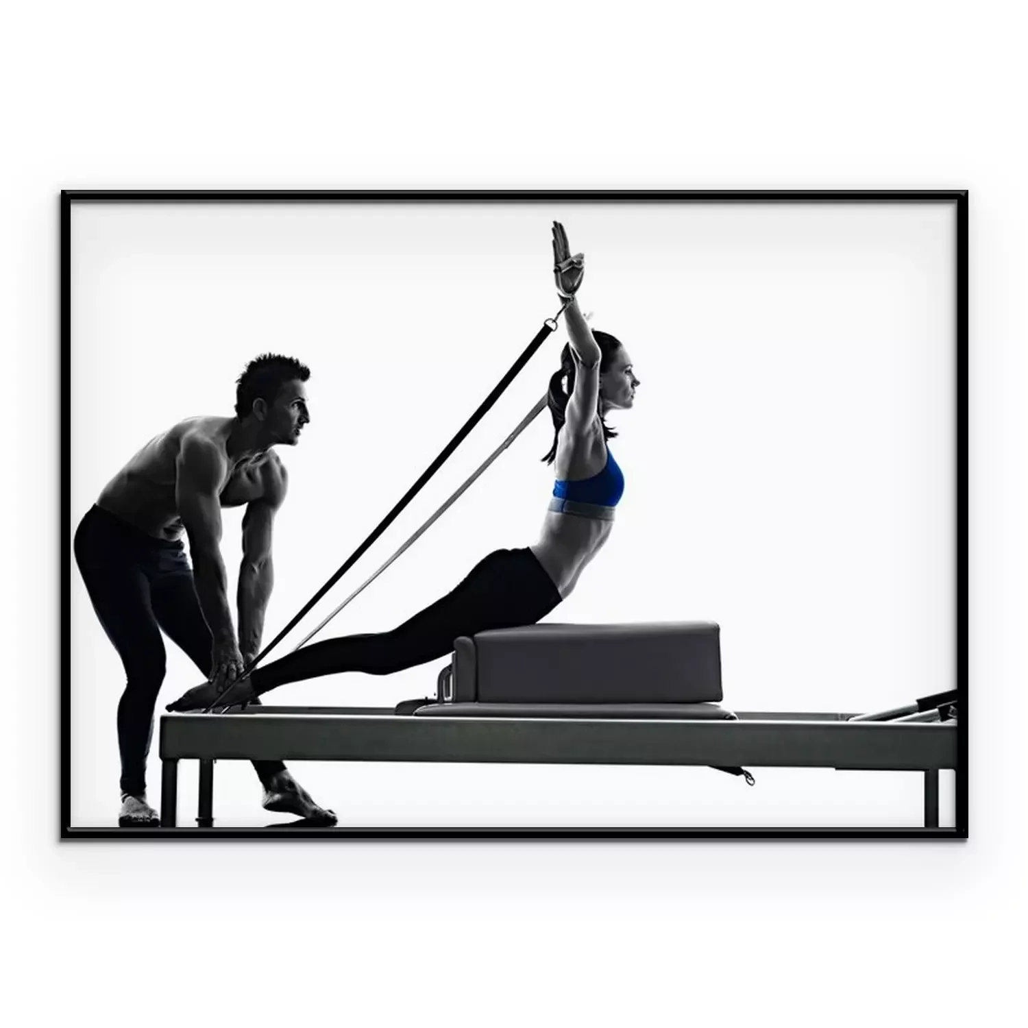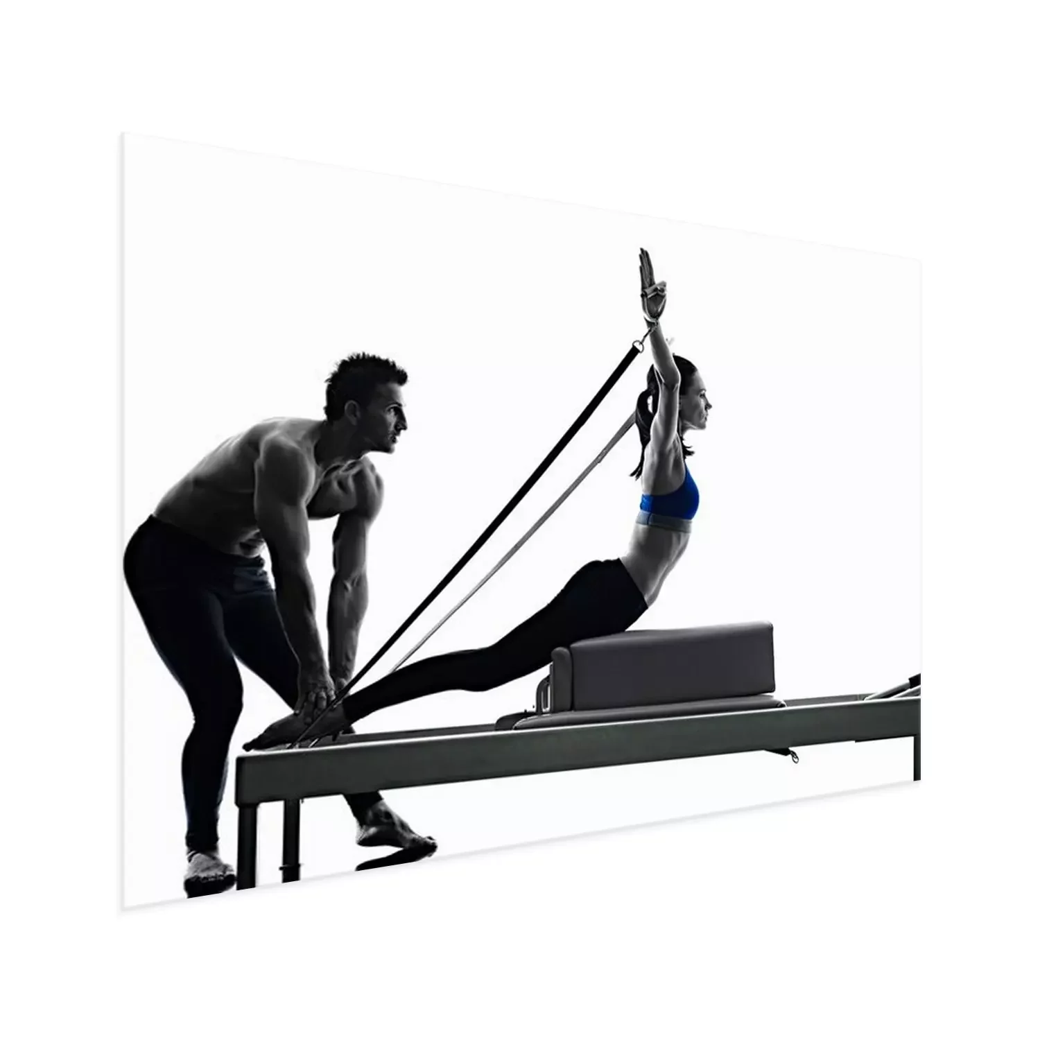 Poster: paar pilates reformator oefeningen fitness geïsoleerde