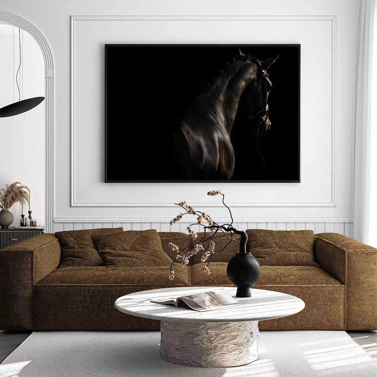 Poster: Paard op een zwarte achtergrond