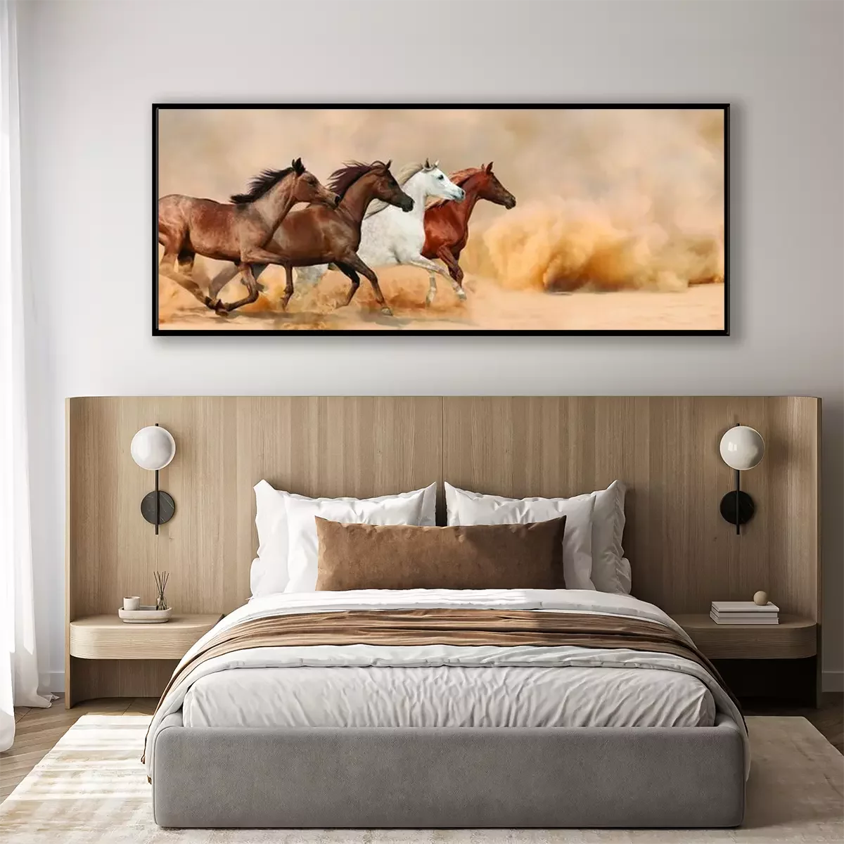 Groep rennende paarden in de woestijnProbleemloze bezorging verzorgd door vertrouwde vervoerders