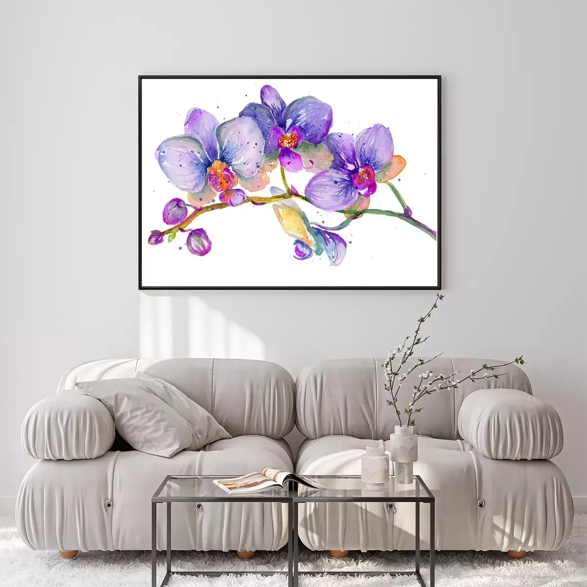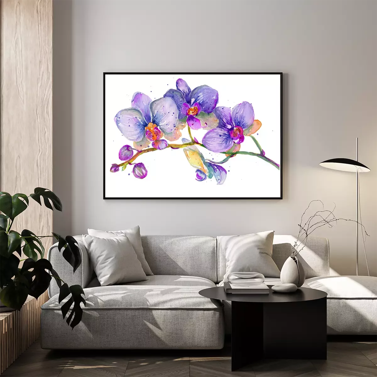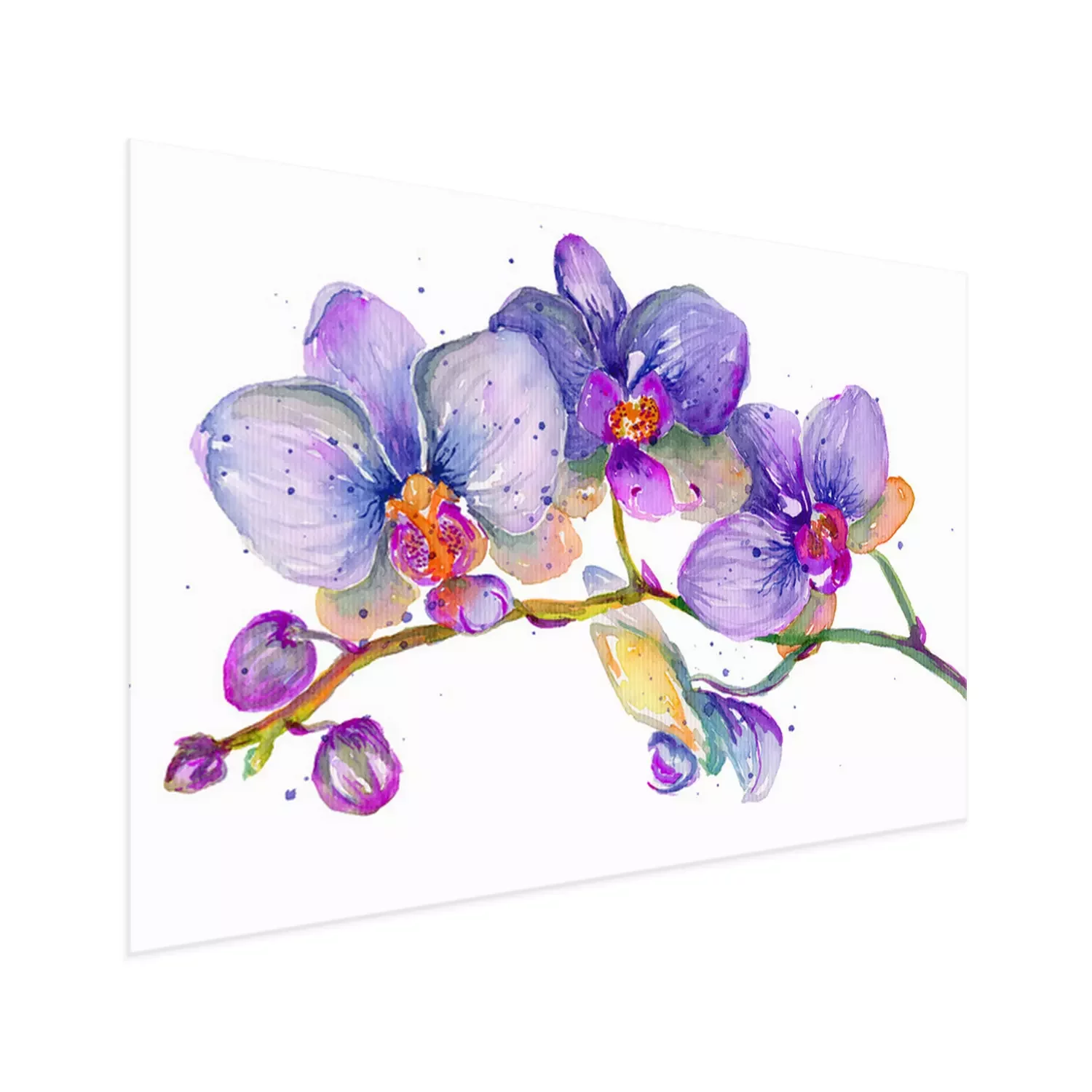 Drie paarse orchidee, tak, bloem, waterverf schets op een witte achtergrond