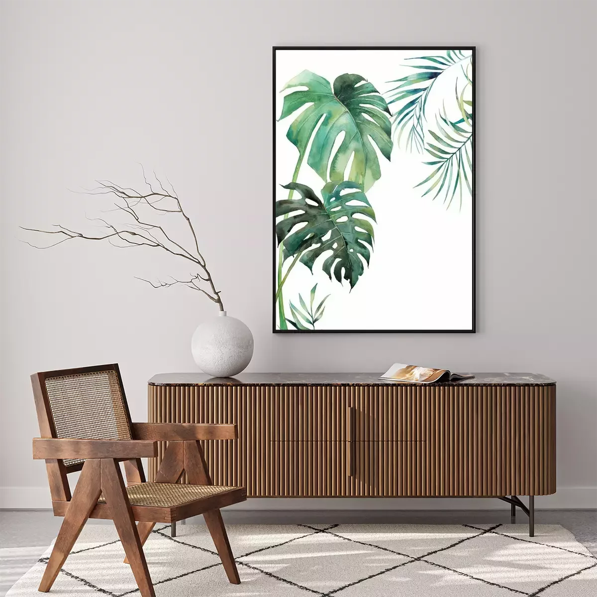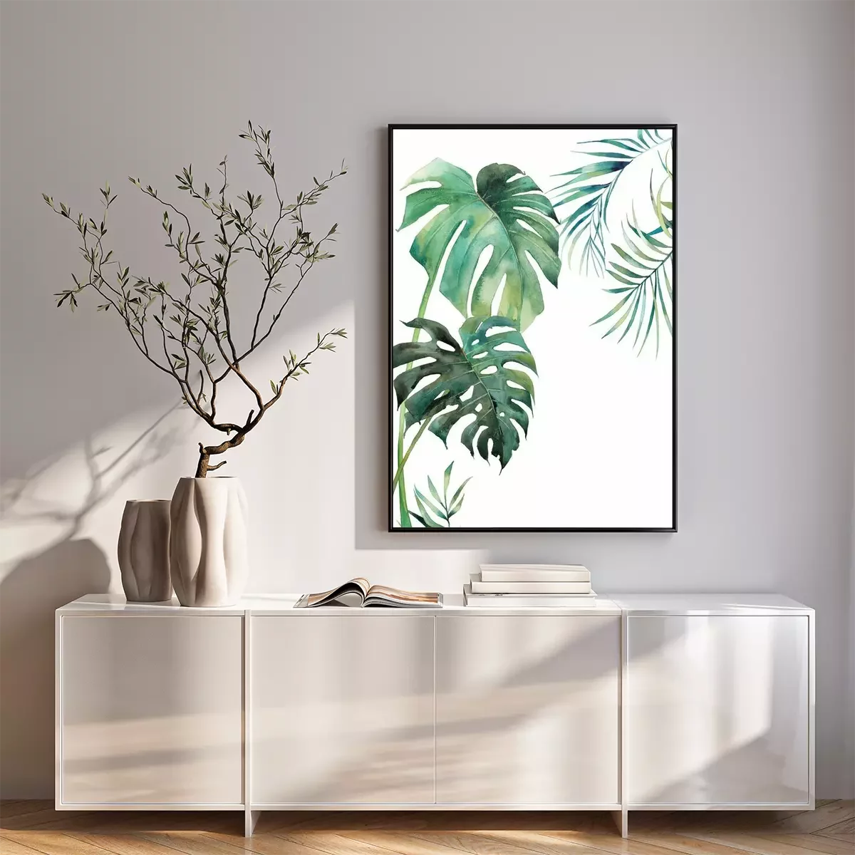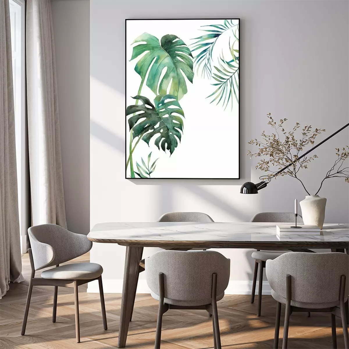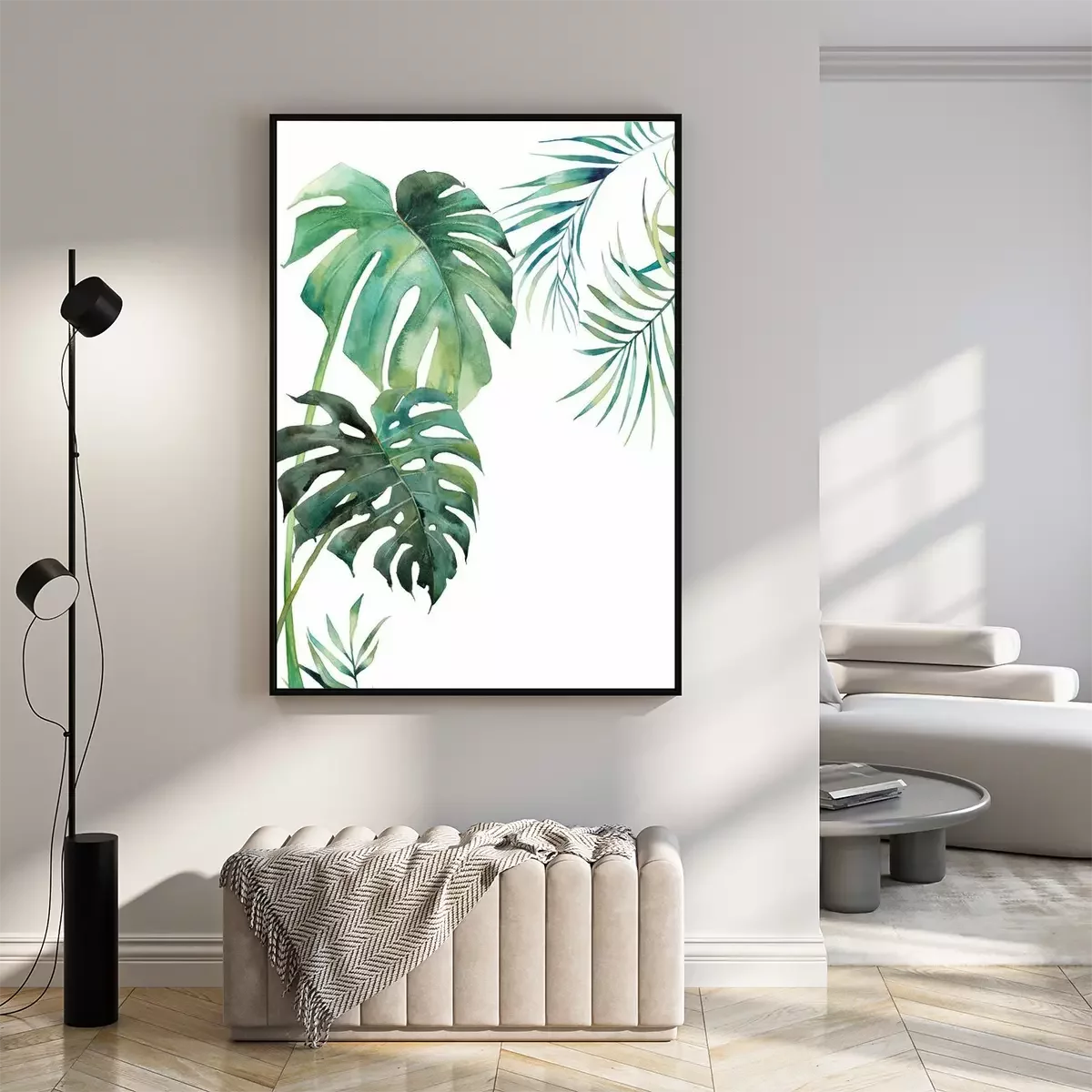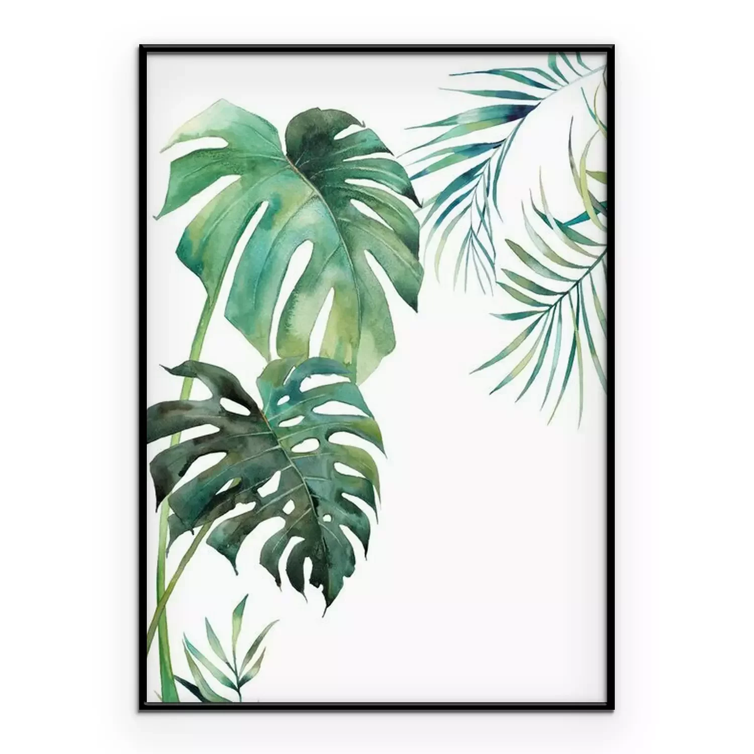 Monstera-bladeren geschilderd met waterverf.Fotobehang