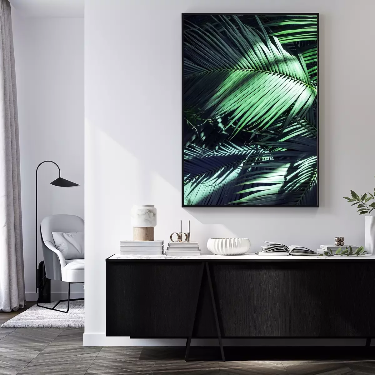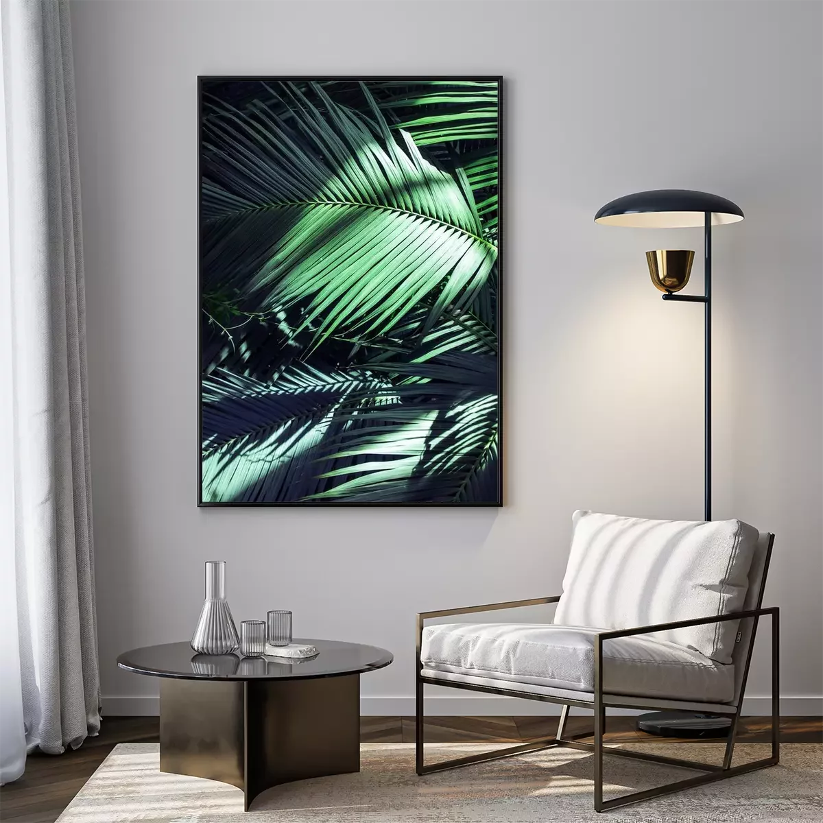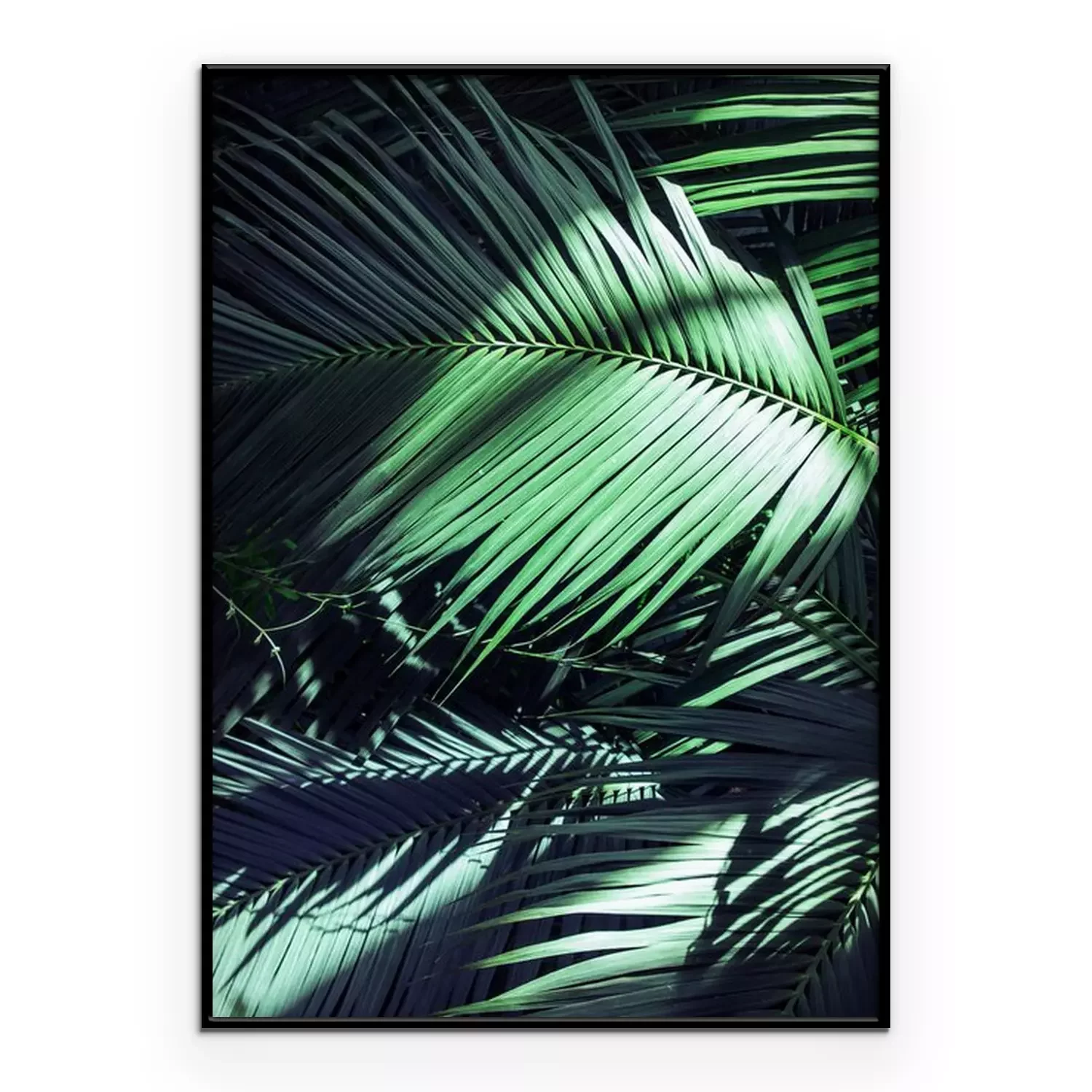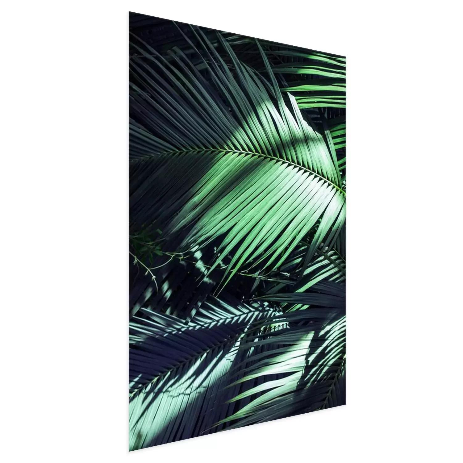 Poster: Palmbladeren verlicht door de stralen van de zon