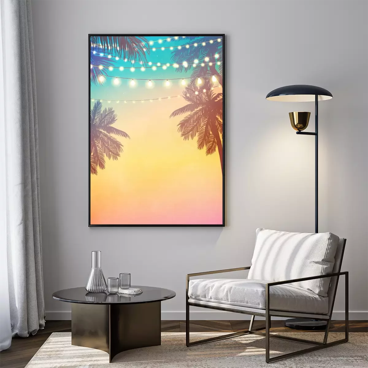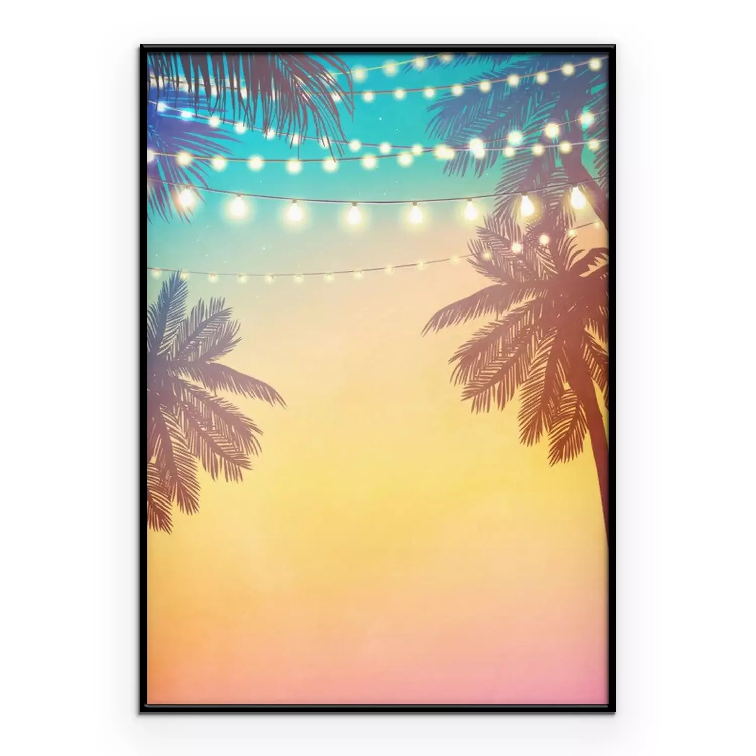 Palmbomen met lantaarns onder de nachtelijke hemel