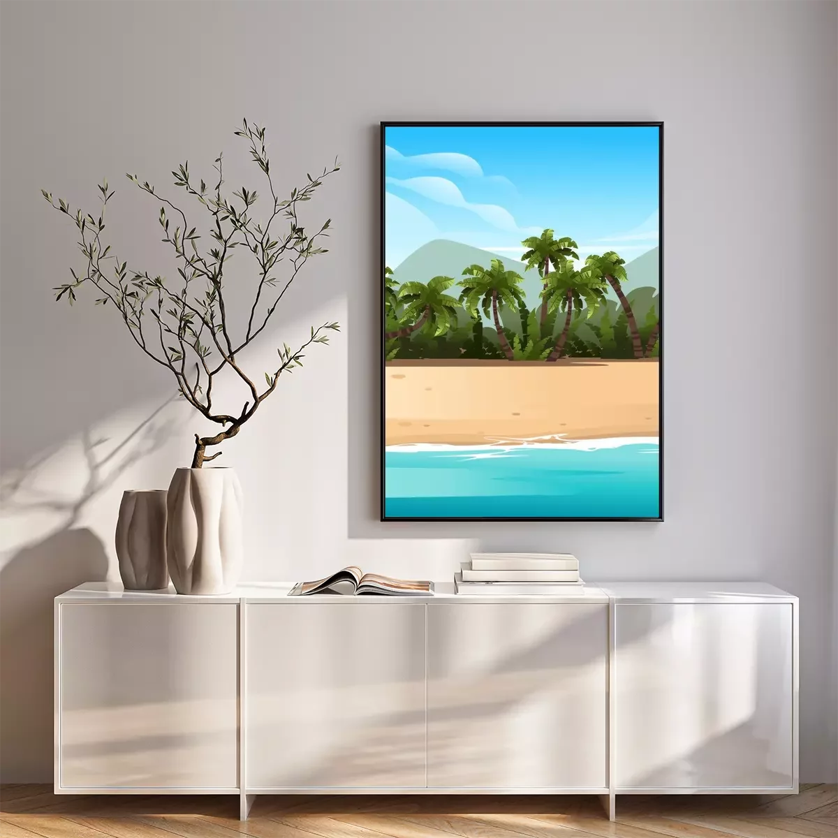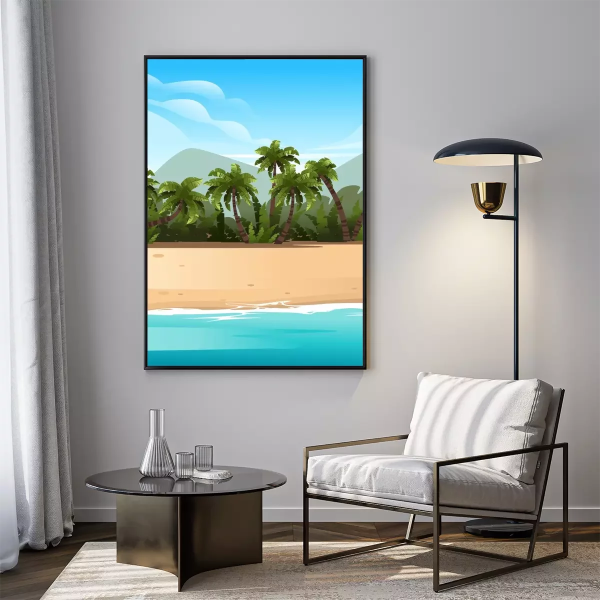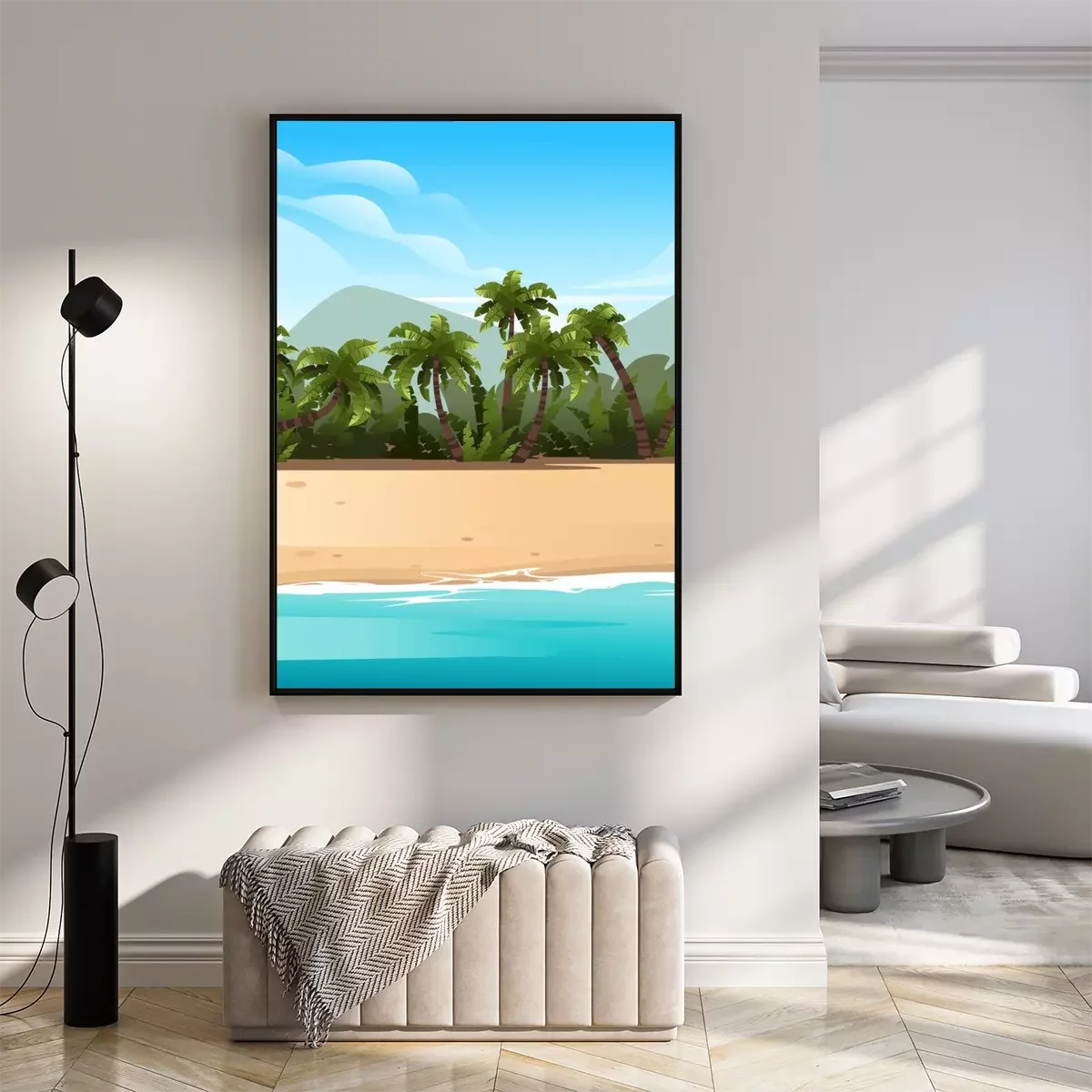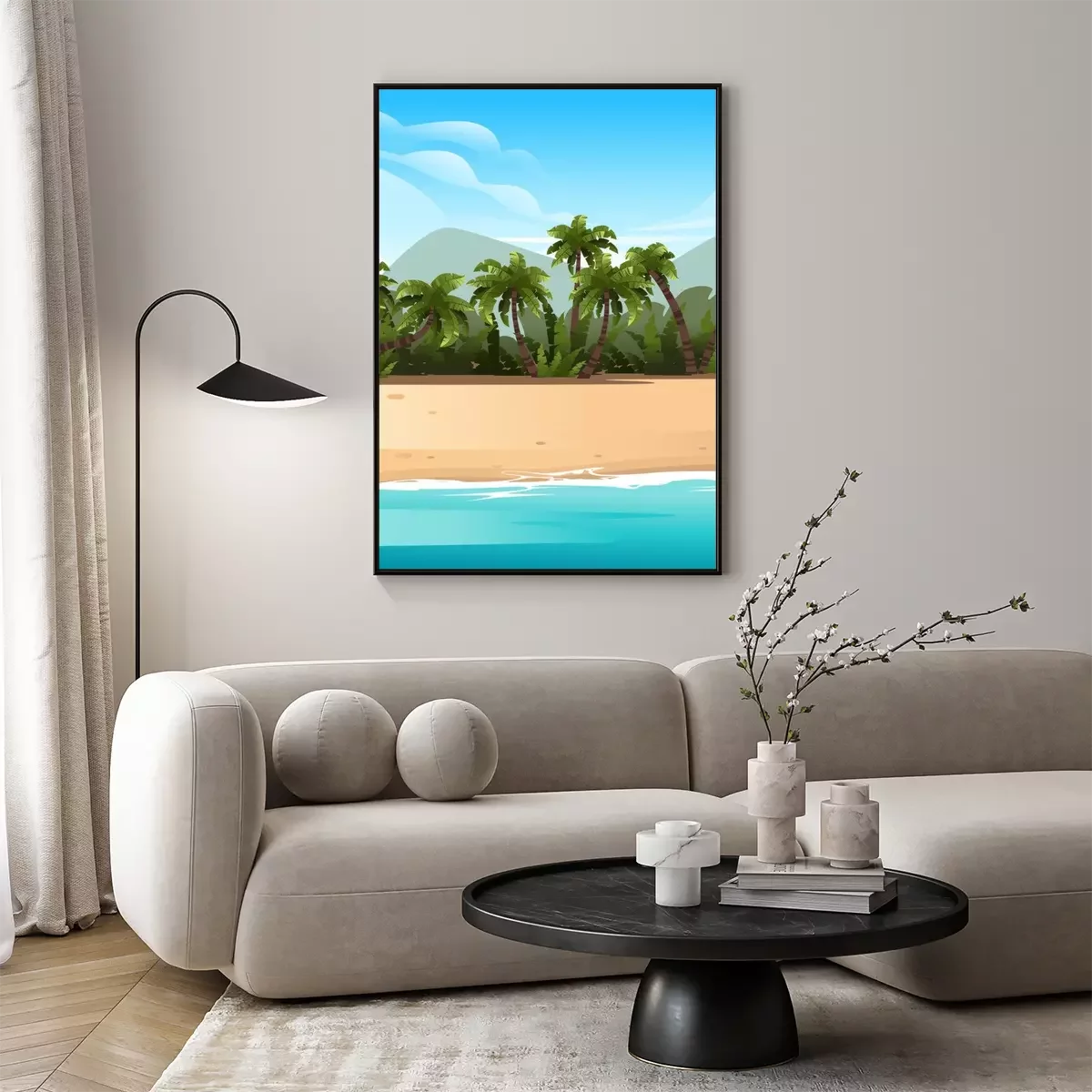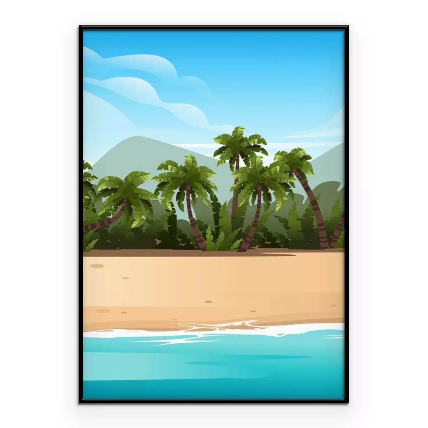 Poster: Palmbomenzee en strand digitaal kunstwerk