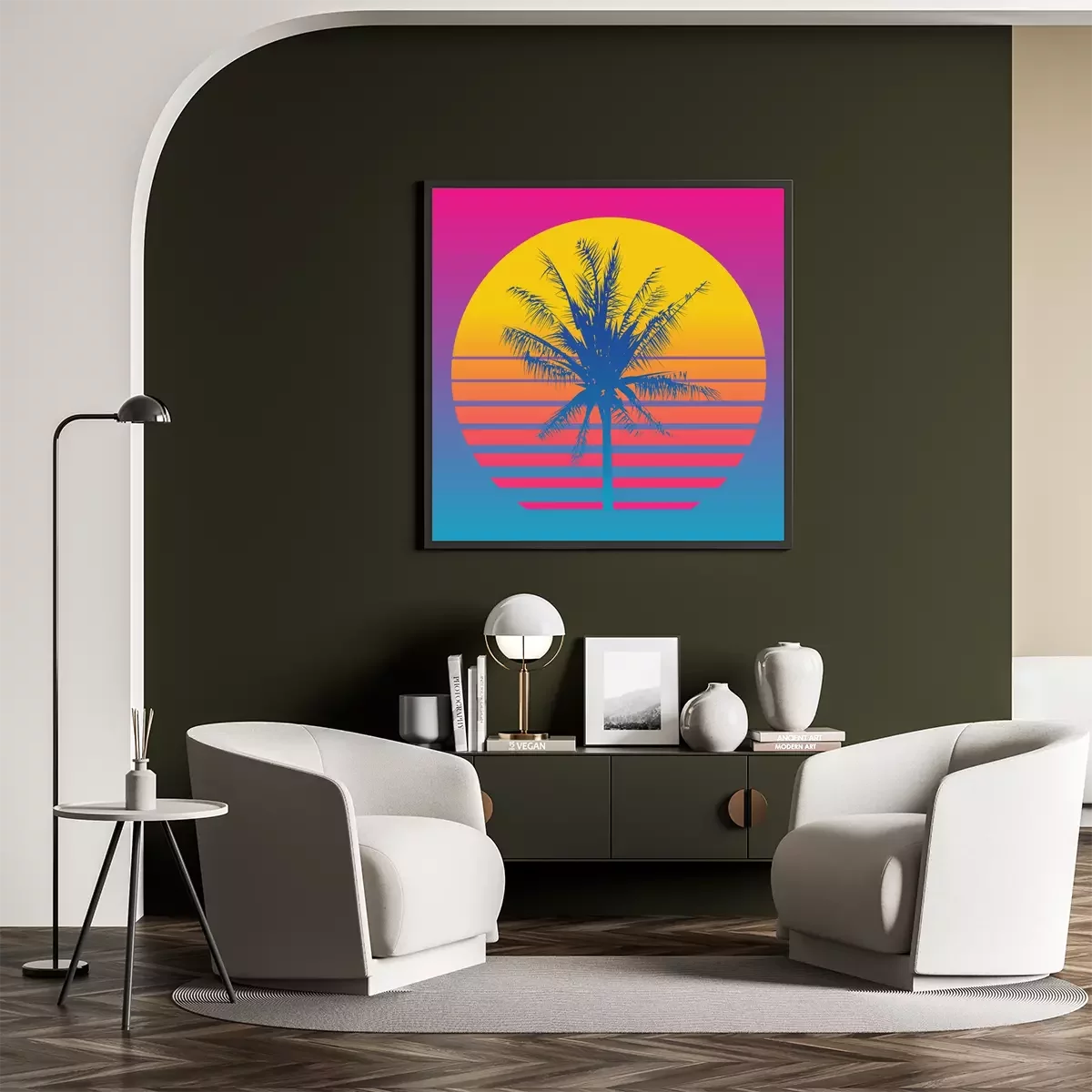 Poster Palmboom op een achtergrond van een zonsondergang