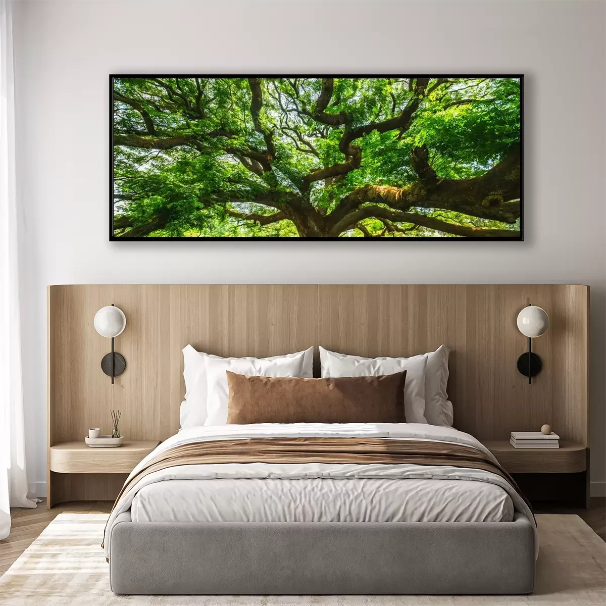 Poster: Panorama beautiful nature scenic landscape Giant Monkey Pod Tree, Attraction famous landmark tourist travel Kanchanaburi Thailand summer vacation trips, Tourism destinations spring scenery place Asia