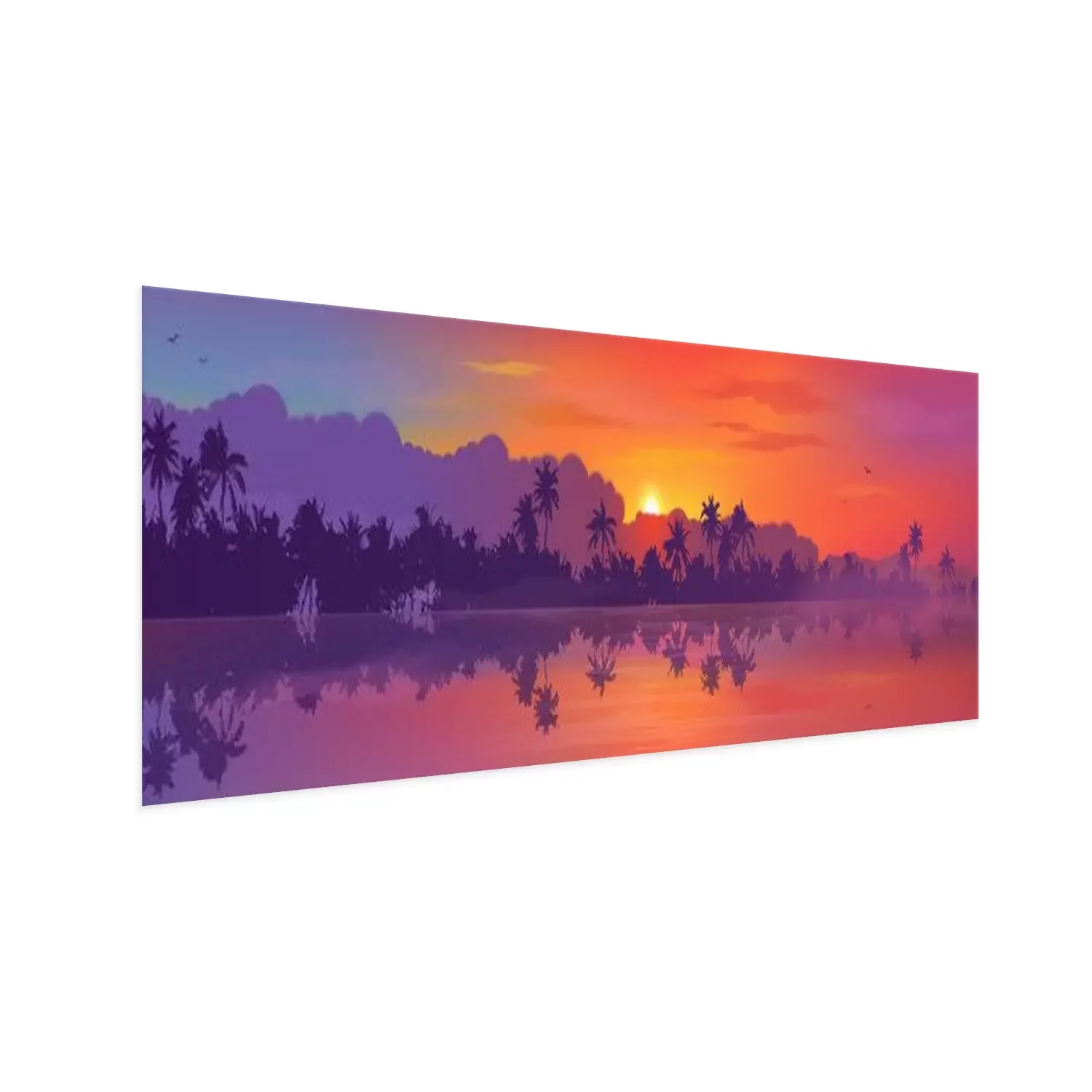 Dark palm trees silhouettes on colorful tropical ocean sunset background, vector illustration