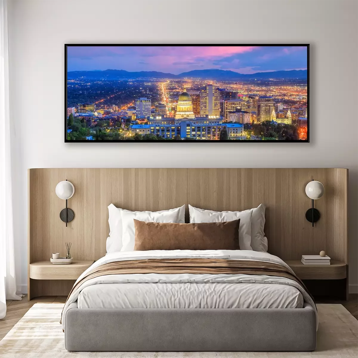 Poster: Panorama van Salt Lake City Utah 's nachts