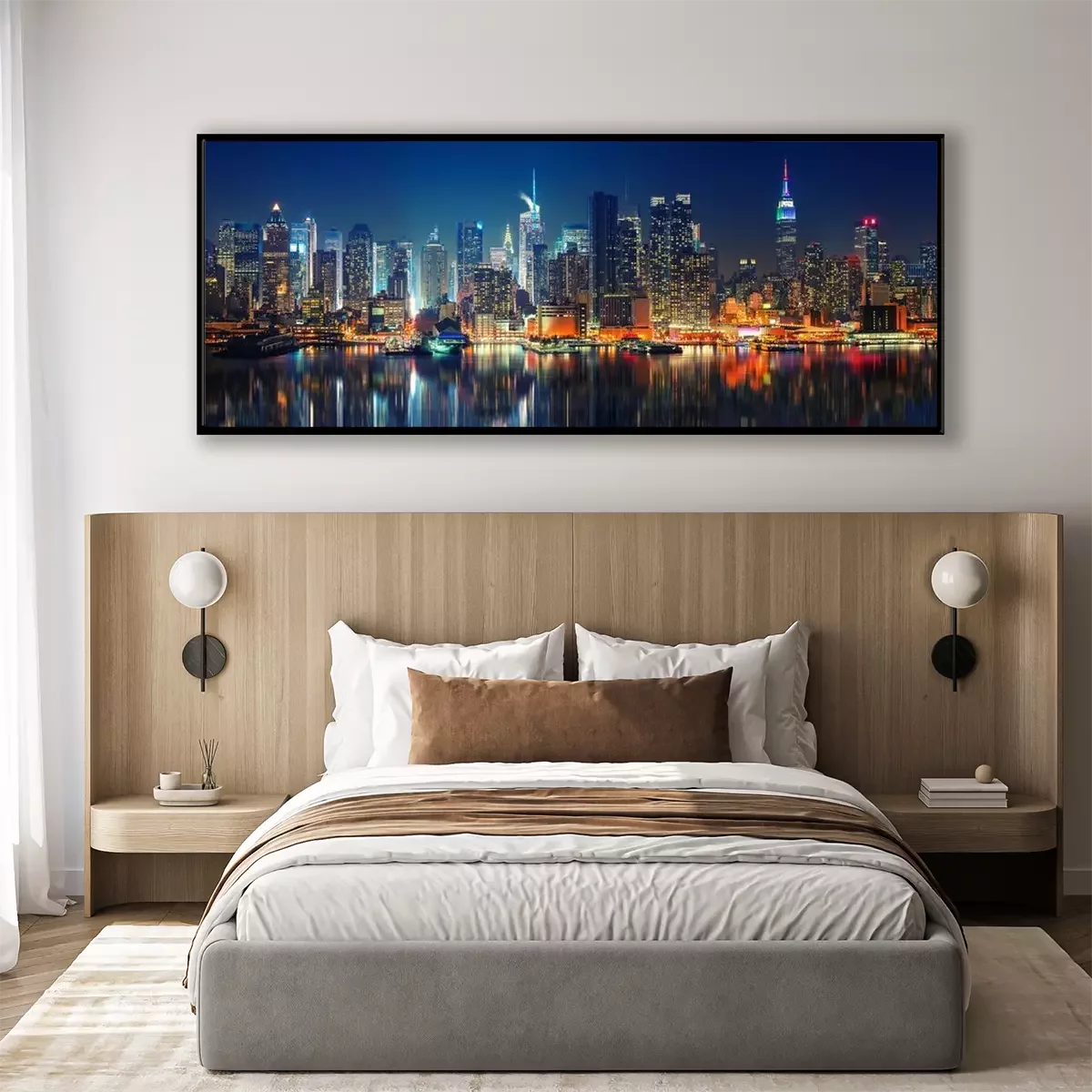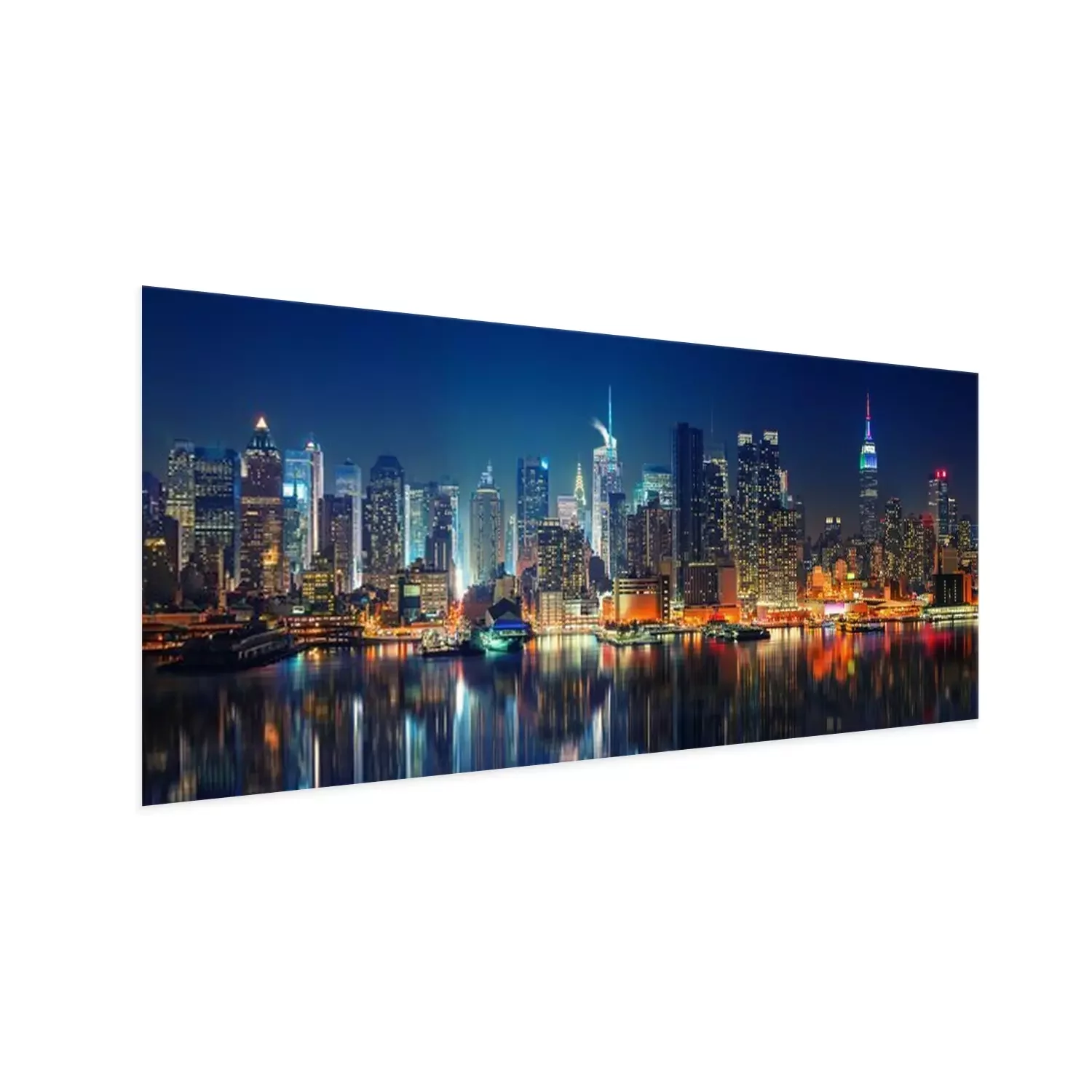 Poster: Panoramisch uitzicht op Manhattan bij nacht
