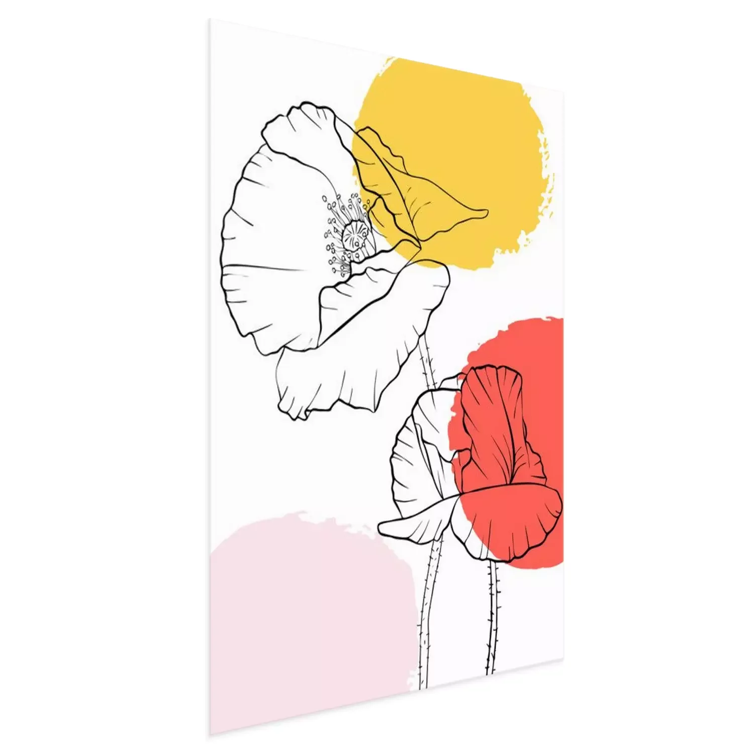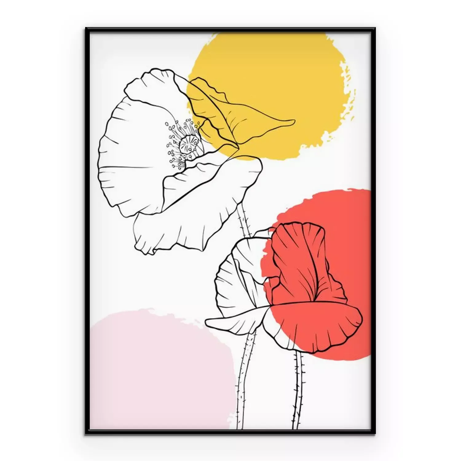 Poster: Papavers op een witte achtergrond bedekt met verfspatten
