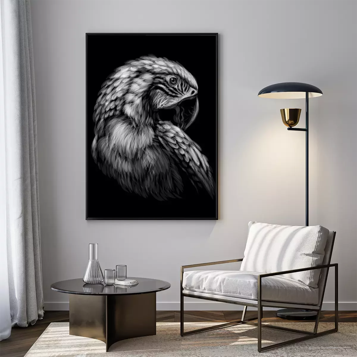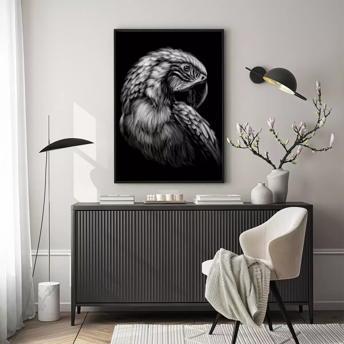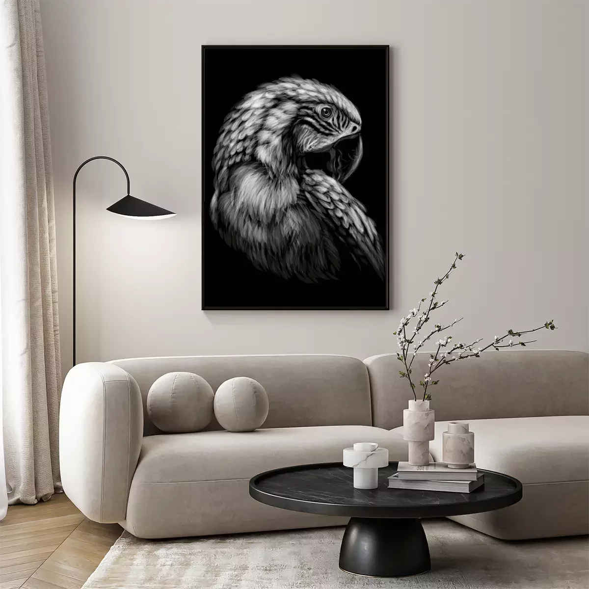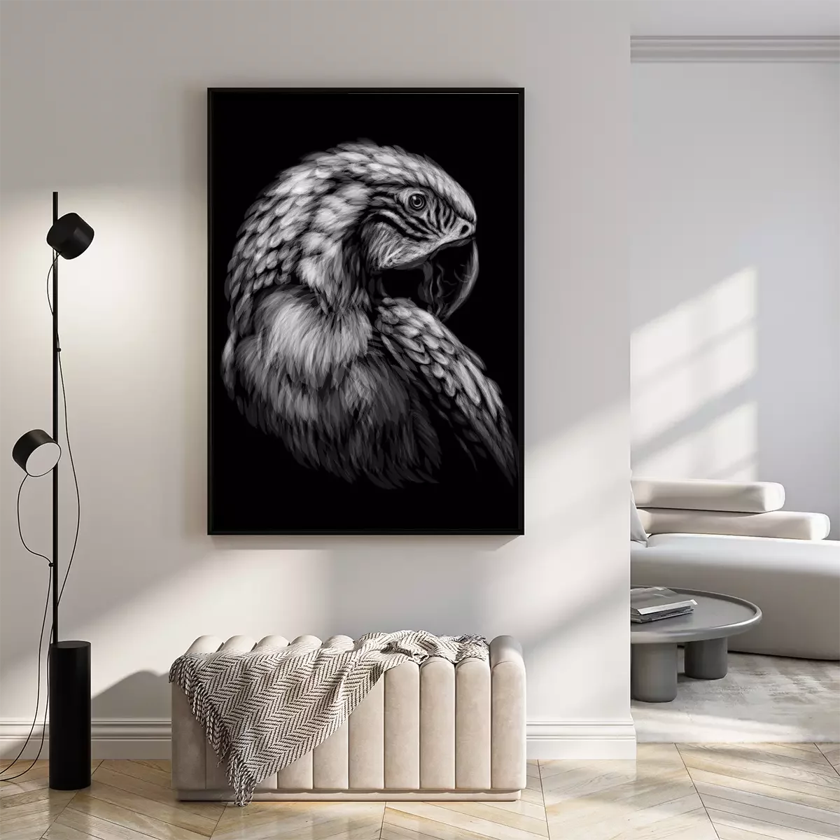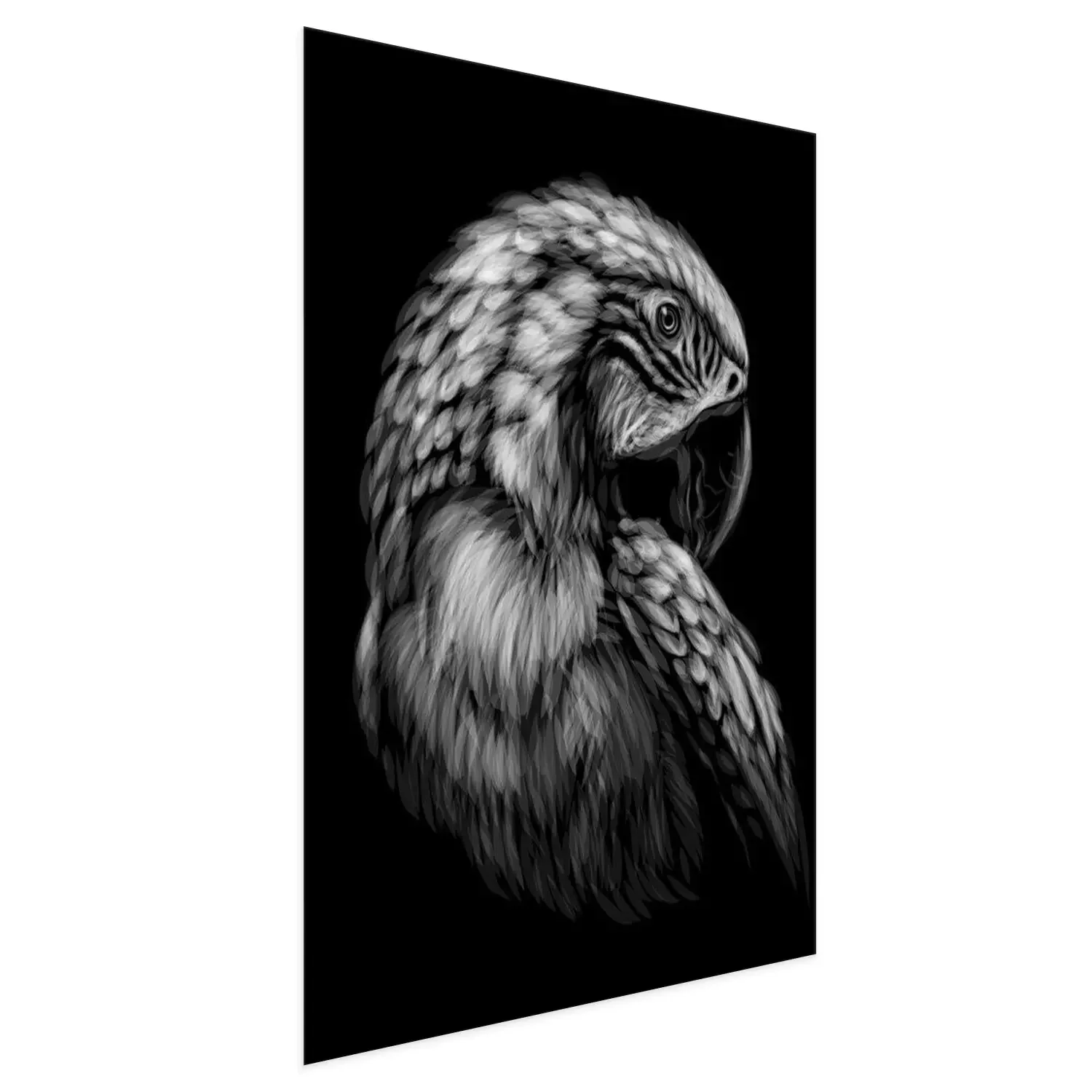 Poster: Papegaai op een geïsoleerde zwarte achtergrond