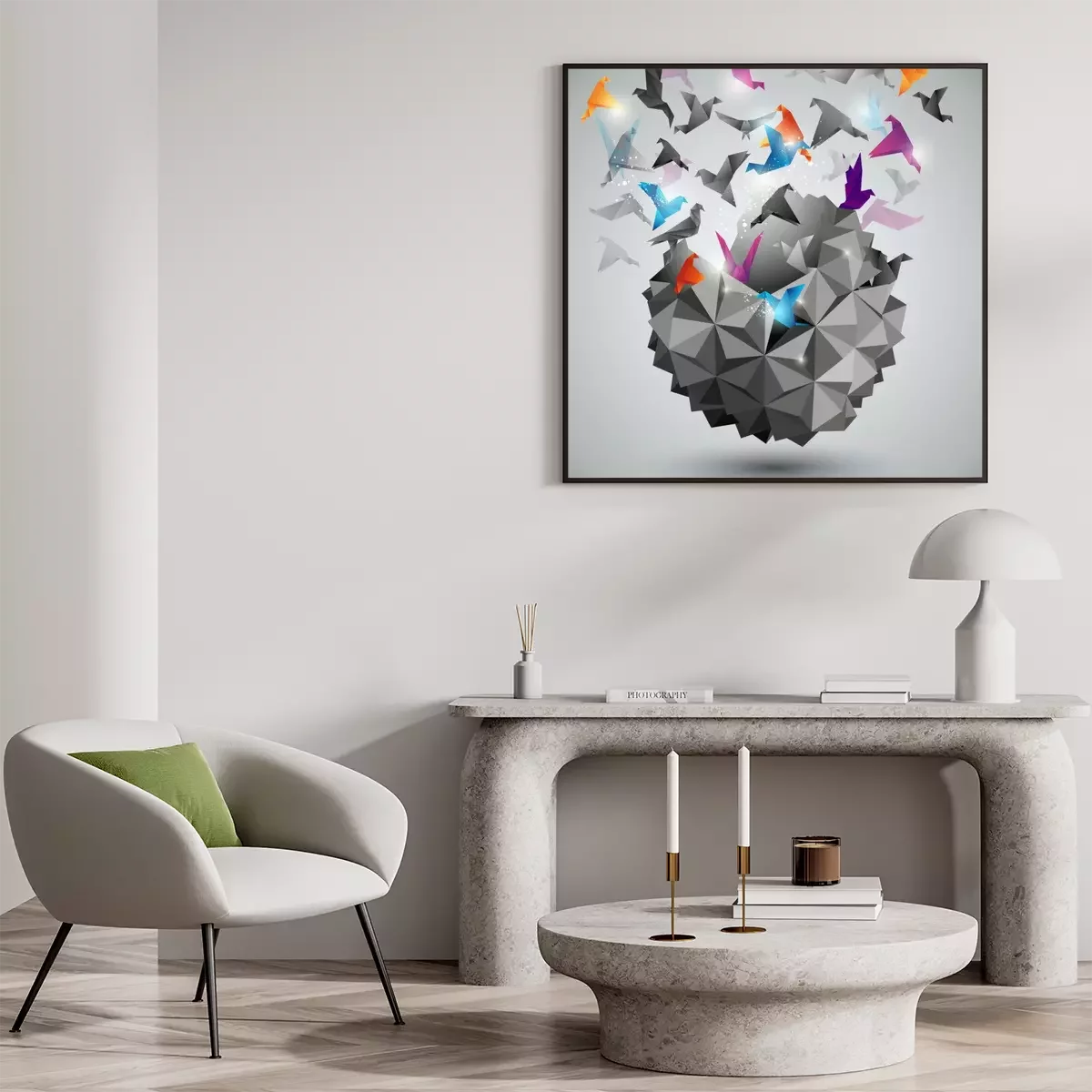 Poster: Papier Vrijheid, Origami abstracte vector illustratie.