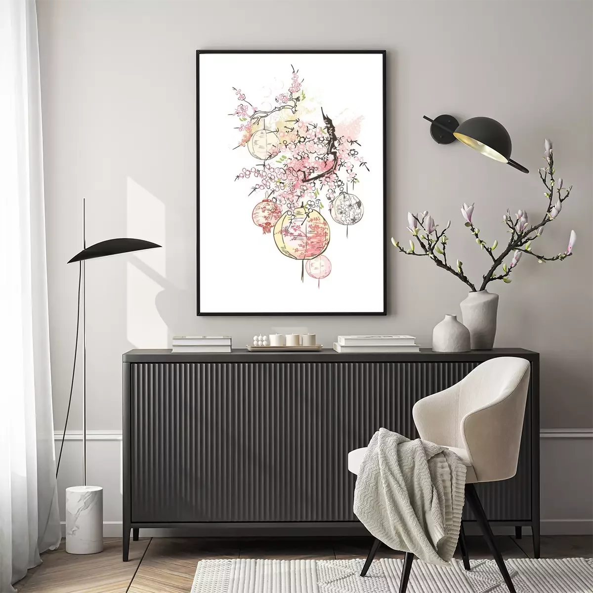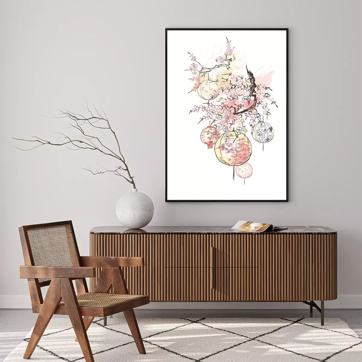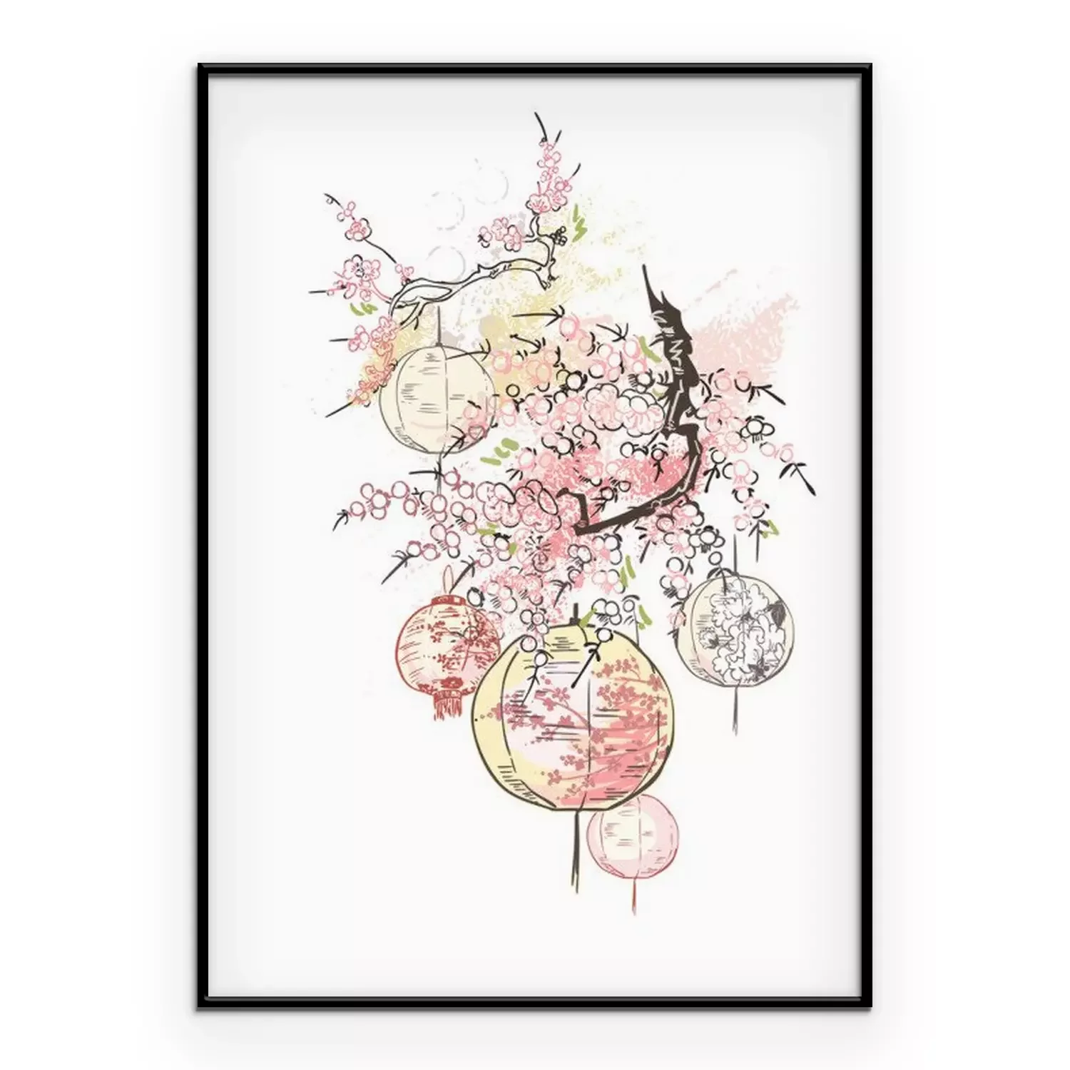Poster: Papieren lantaarns op een tak
