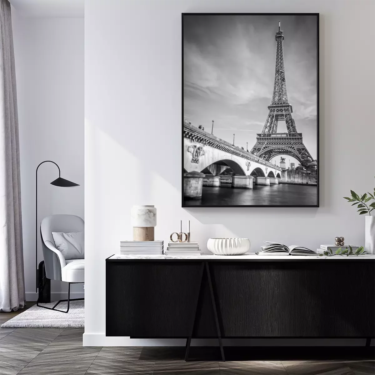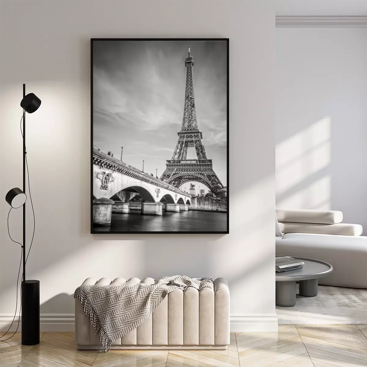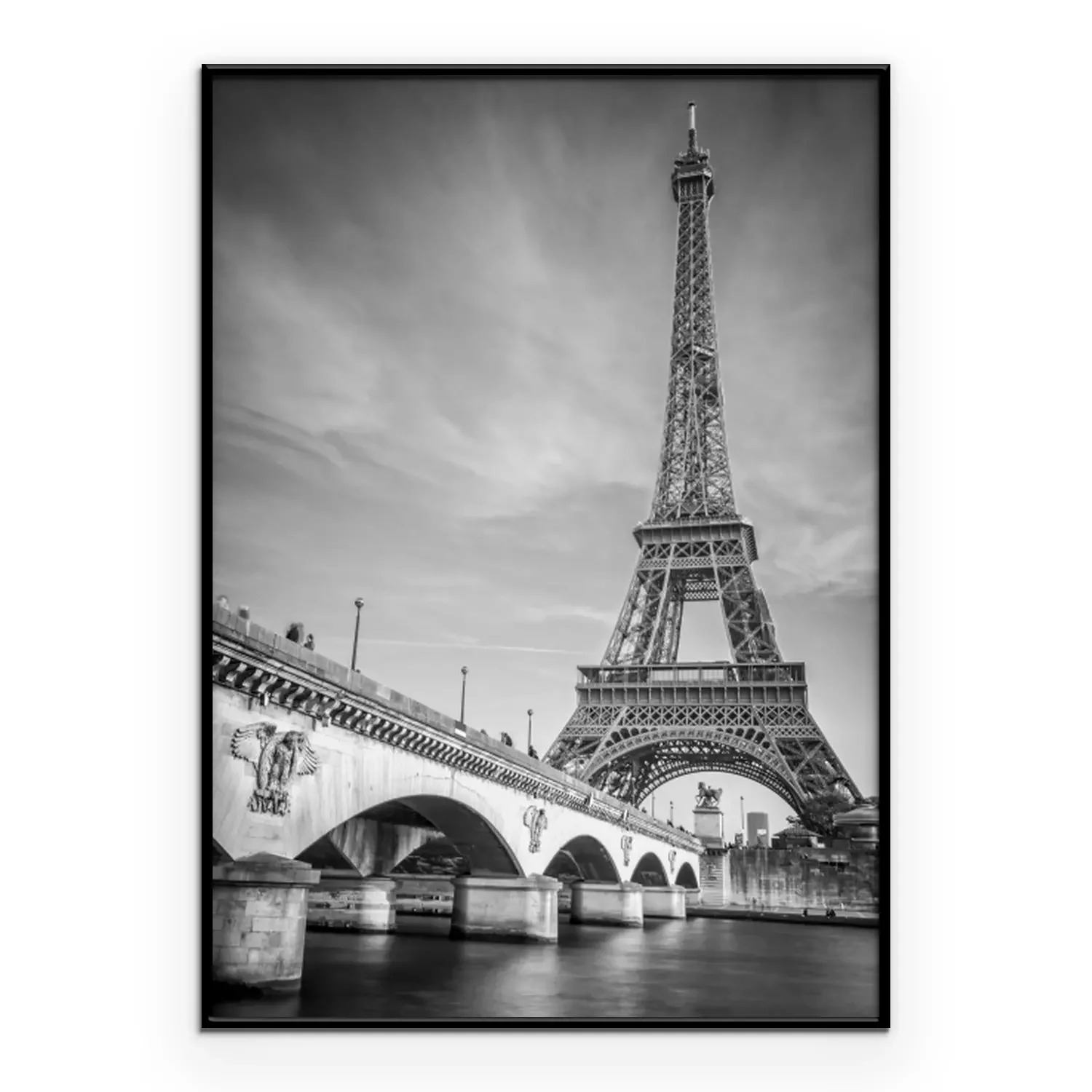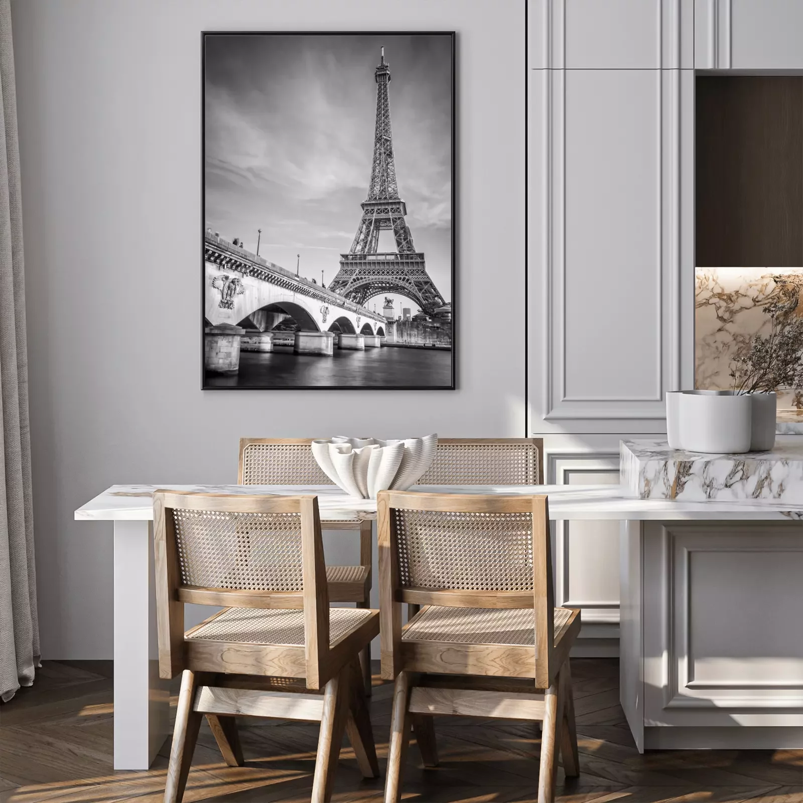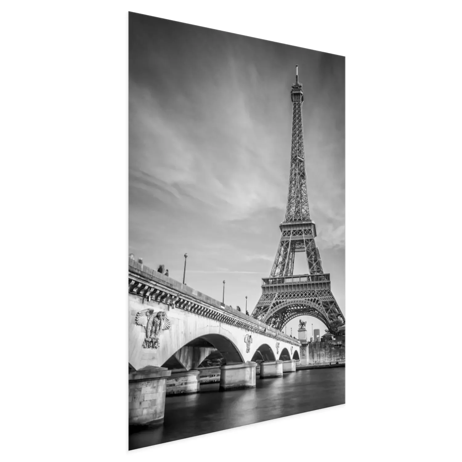 Poster: Parijse sfeer in zwart wit Eiffeltoren