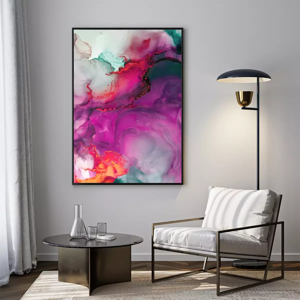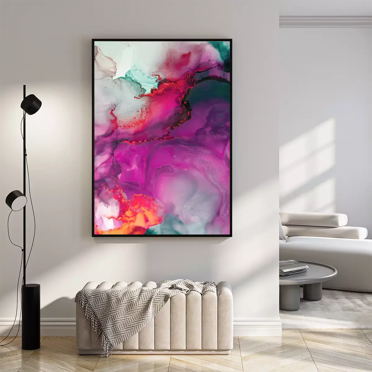 Poster: Part of original alcohol ink painting. Modern art. Abstract colorful background, wallpaper. Marble texture. Fluid Art for modern banners, ethereal graphic design.