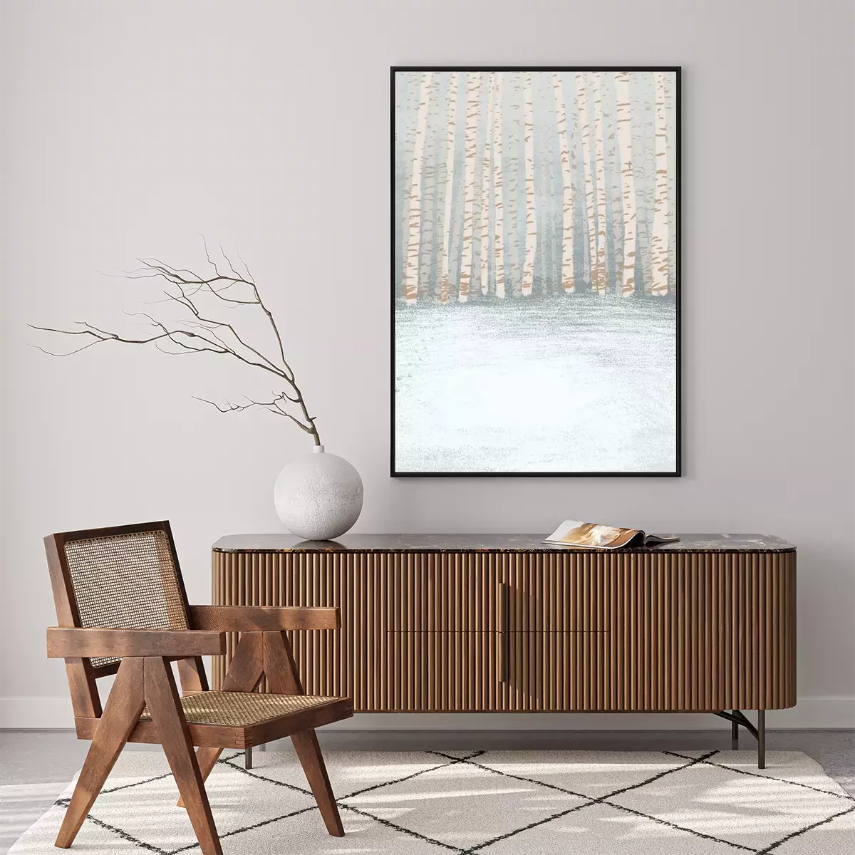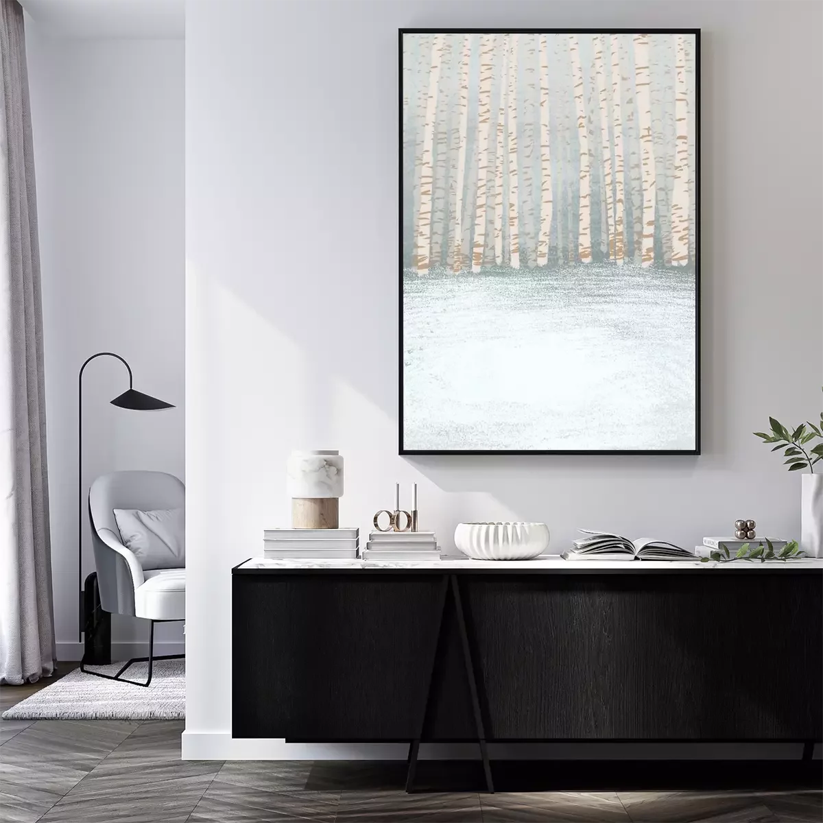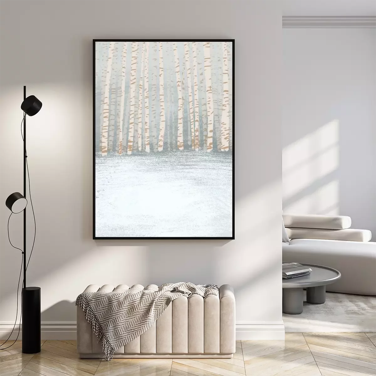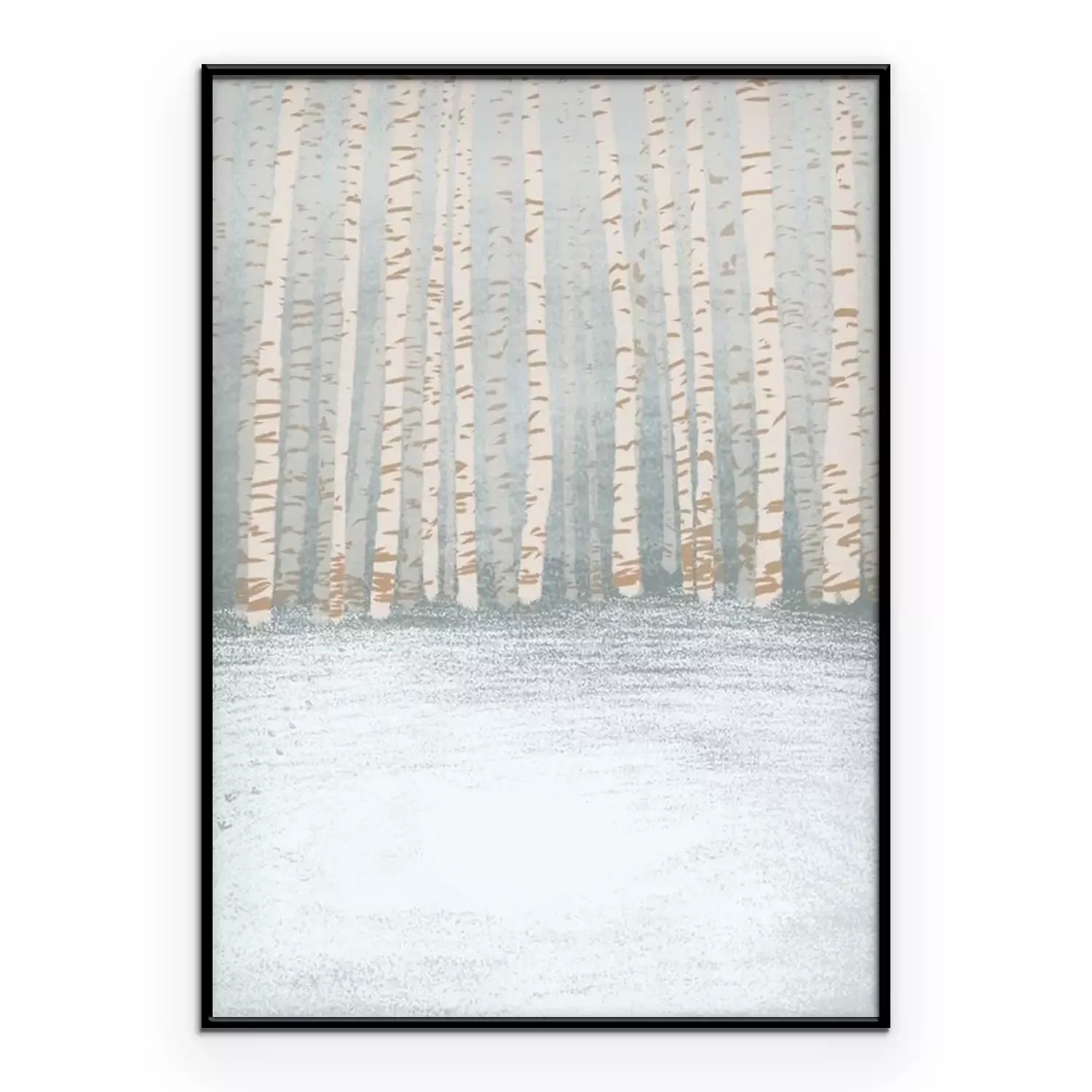 Poster: pastel kleuren illustratie van de winter berkenbos achtergrond en textuur