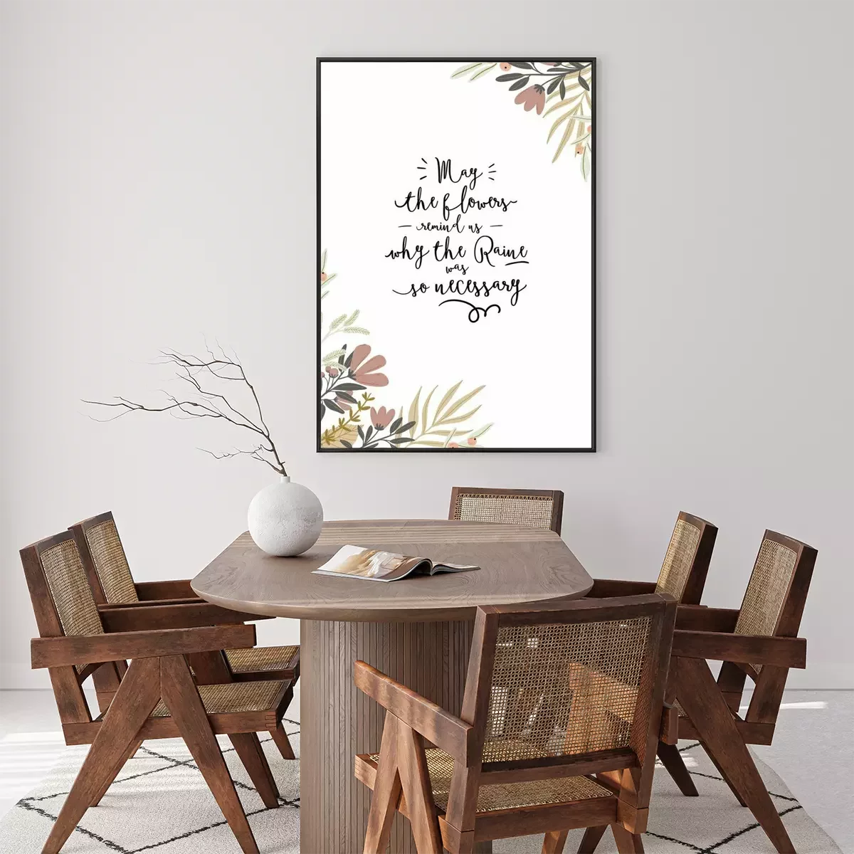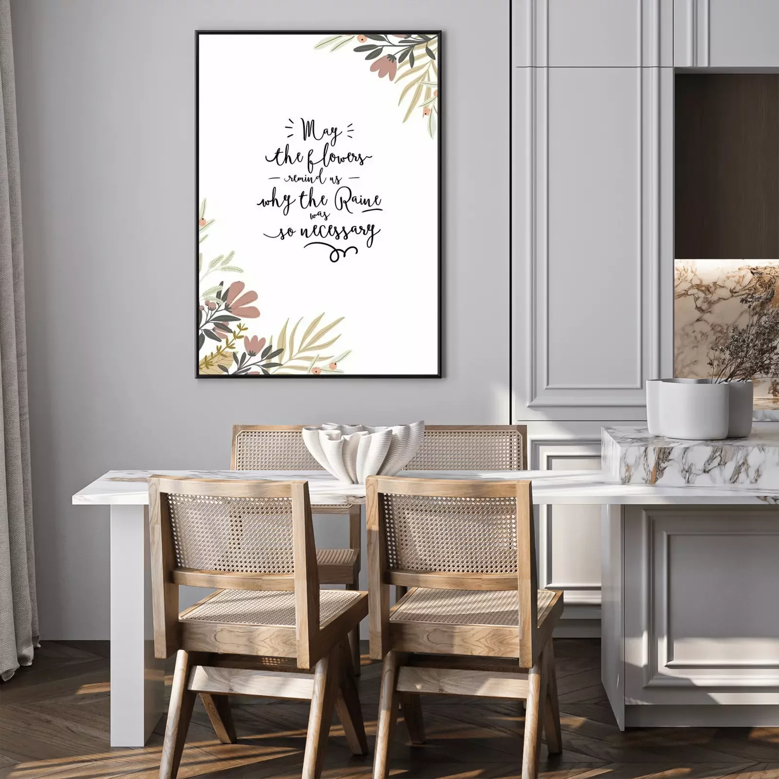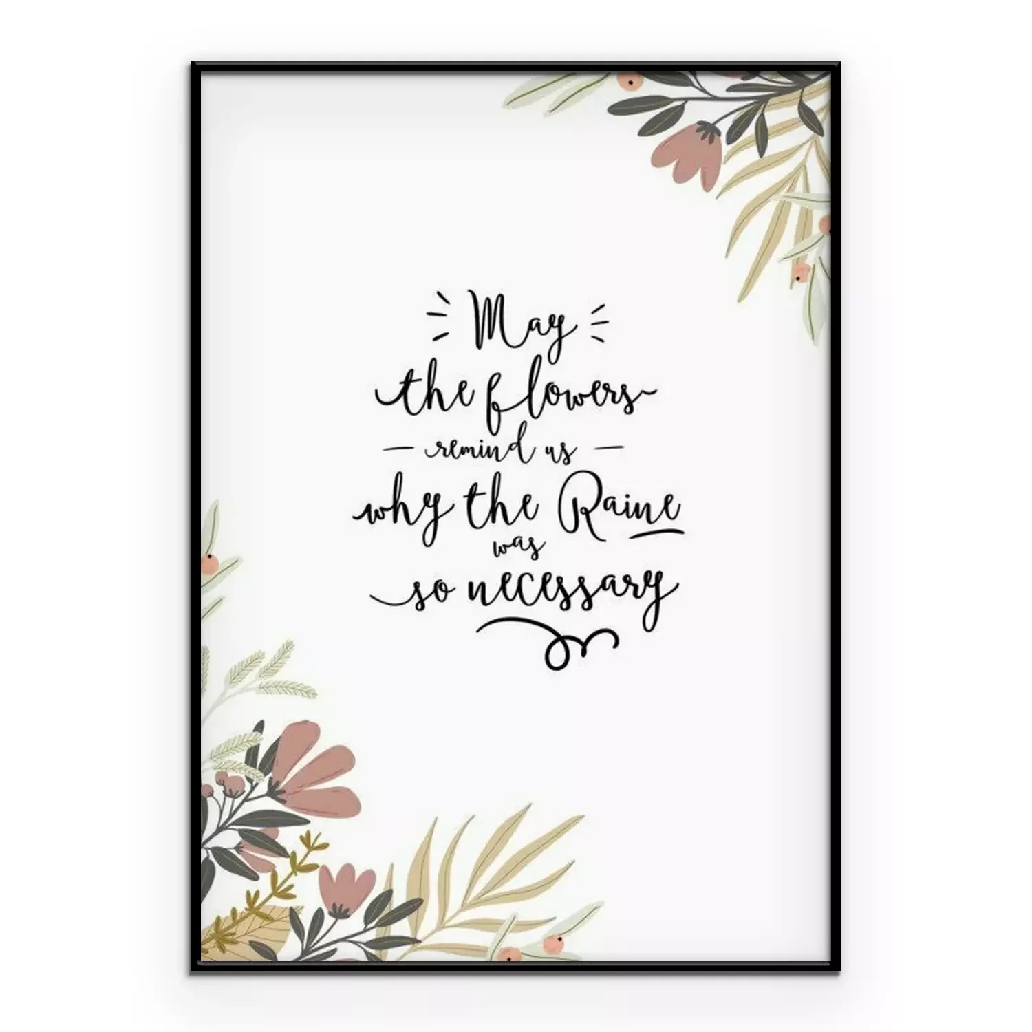 Poster: Pastelkleurige bloemen en zwarte letters in het midden