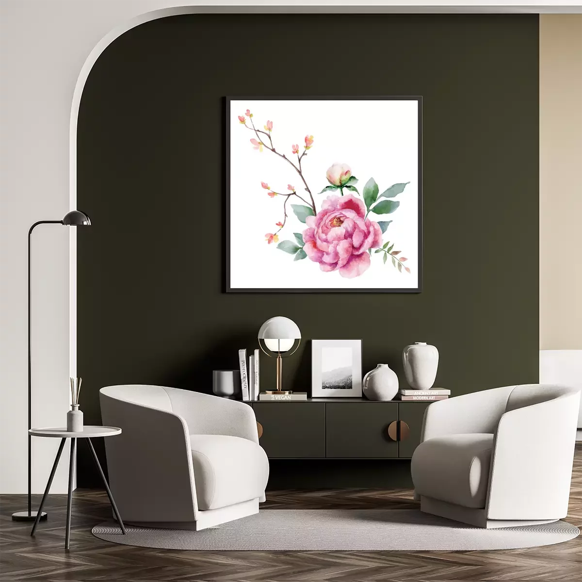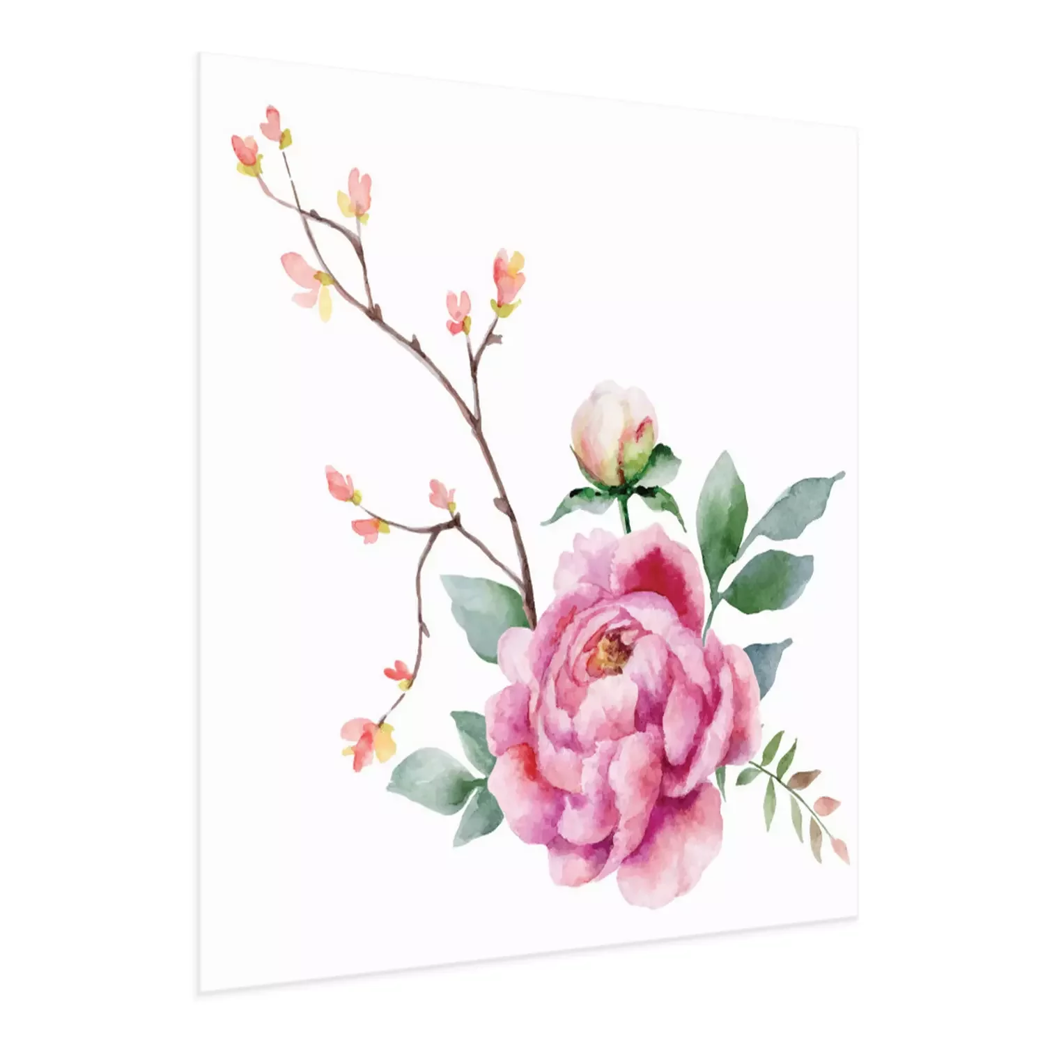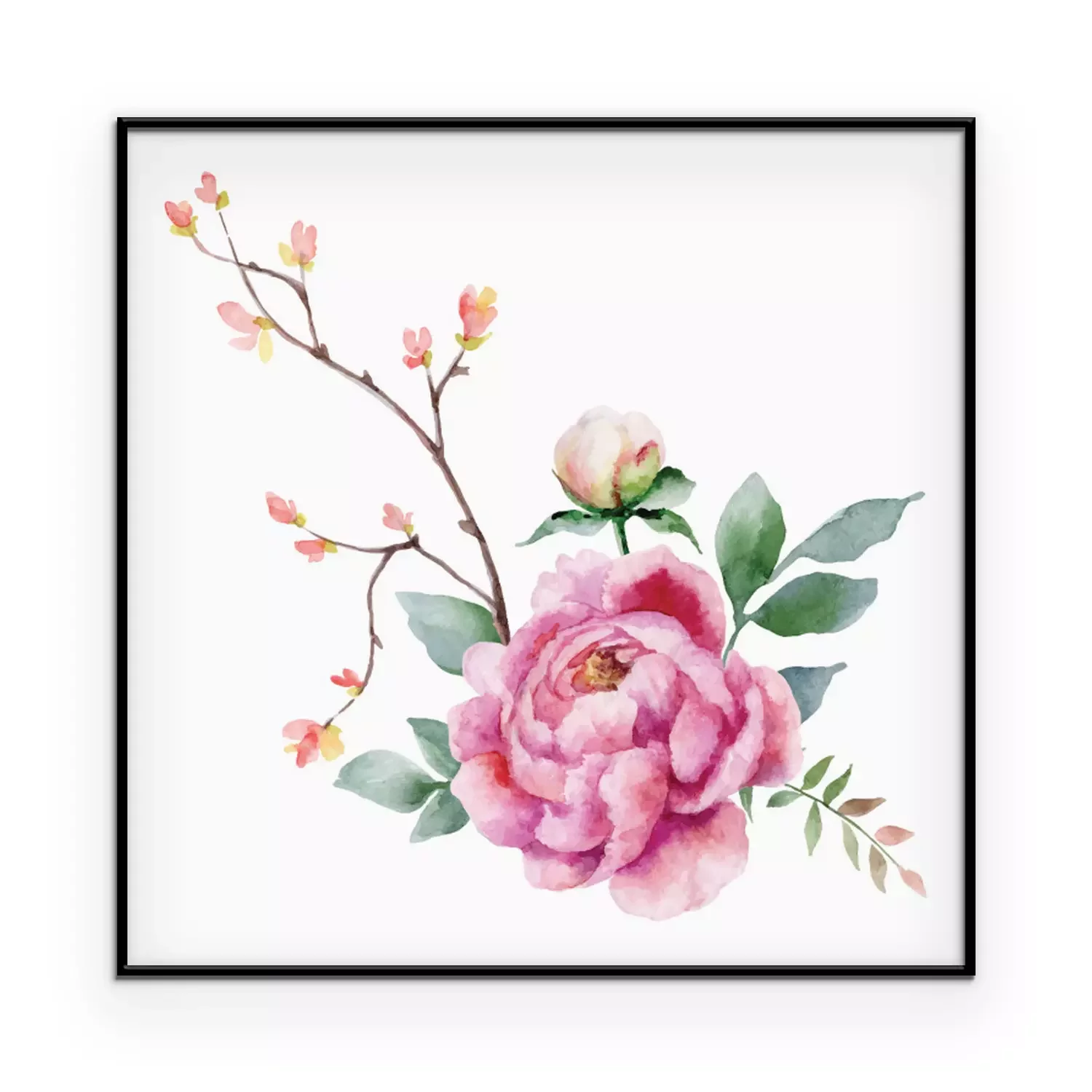 Poster: Peony en een takje kleine bloemen