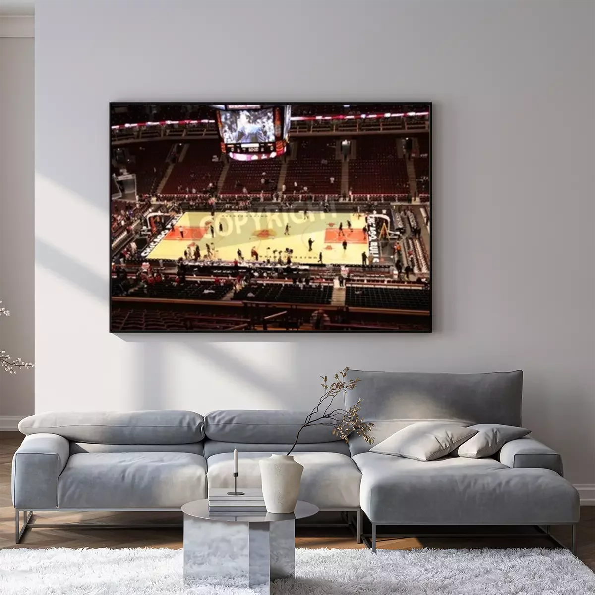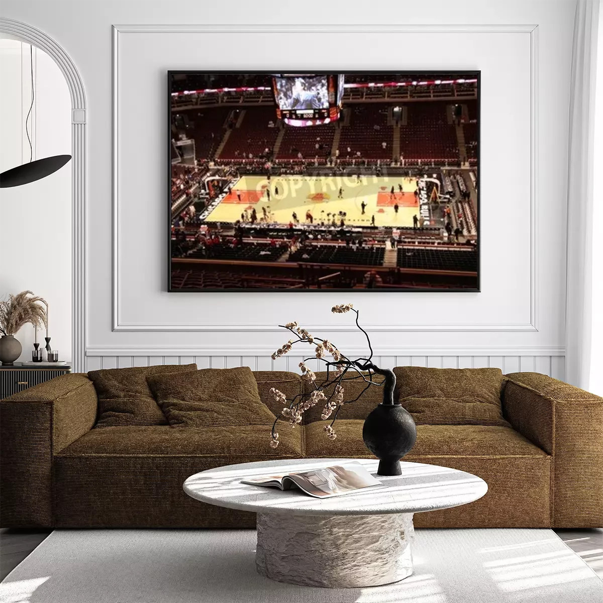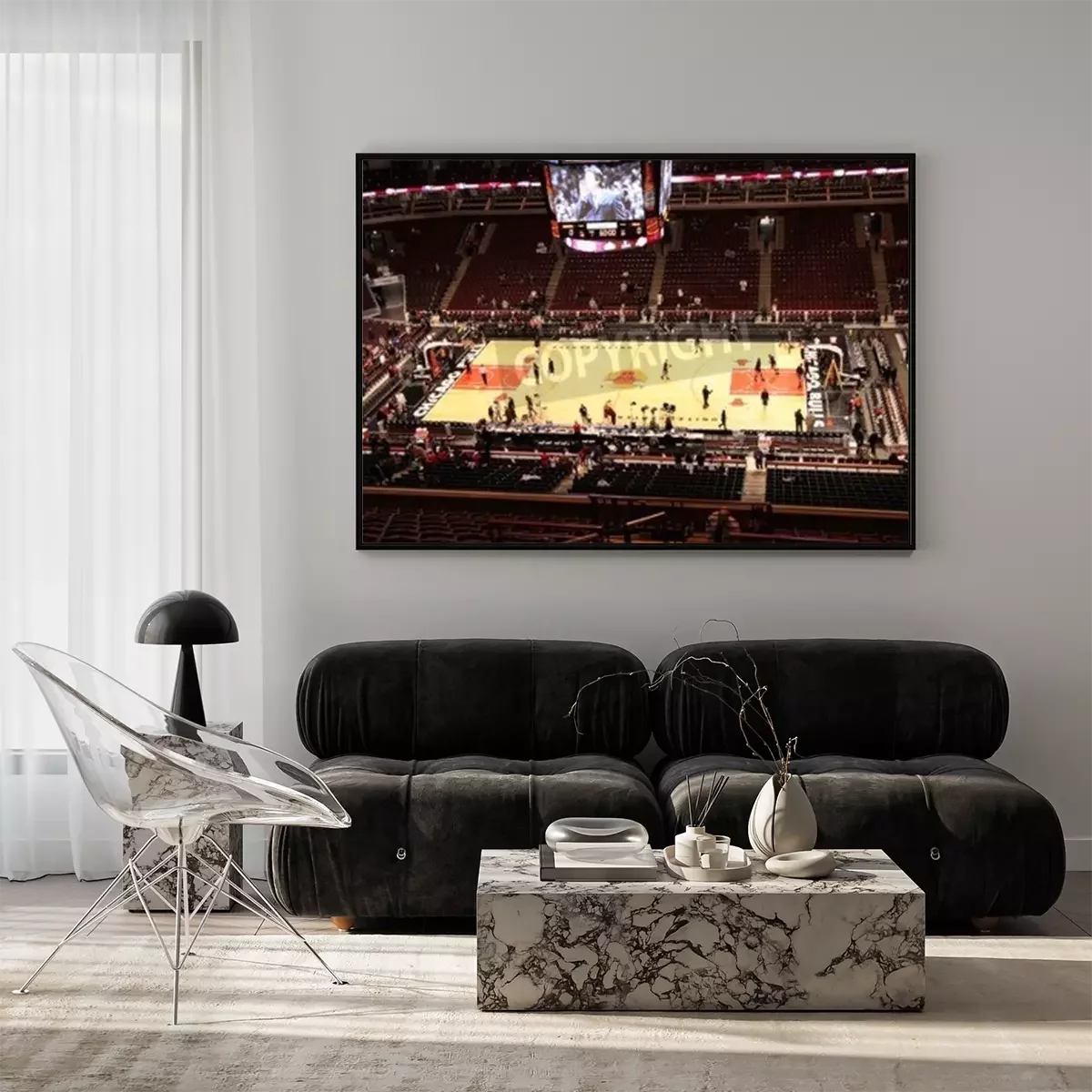 Poster Photo of the United Center, the indoor sports arena home to the Chicago Bulls of the National Basketball Association (NBA) located in  Chicago, Illinois, USA taken on April 11, 2009.