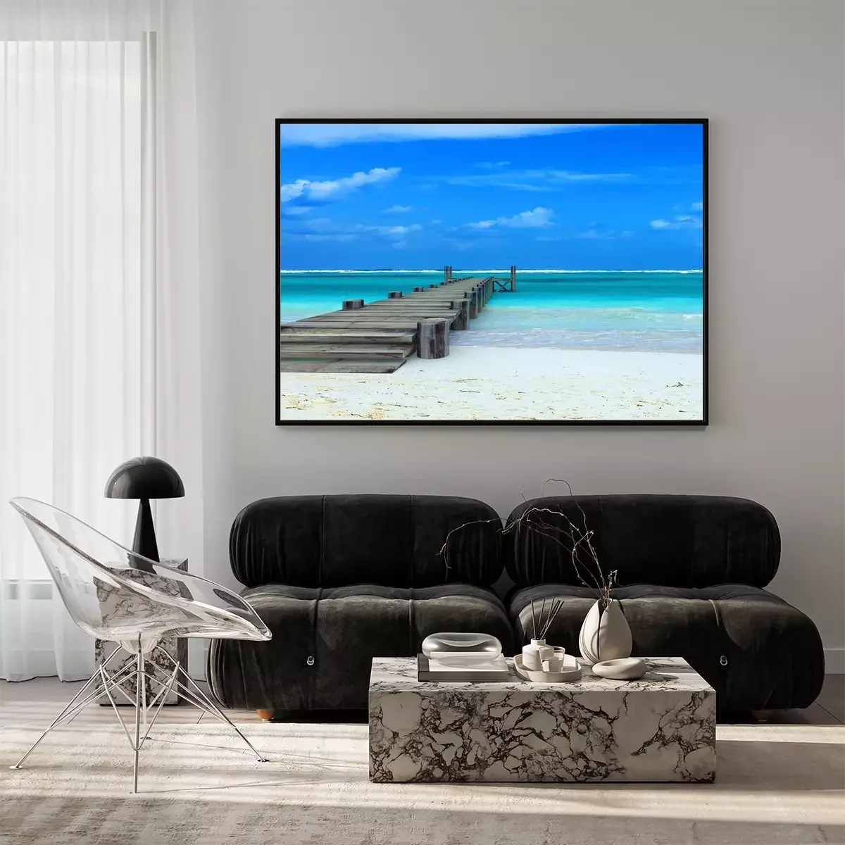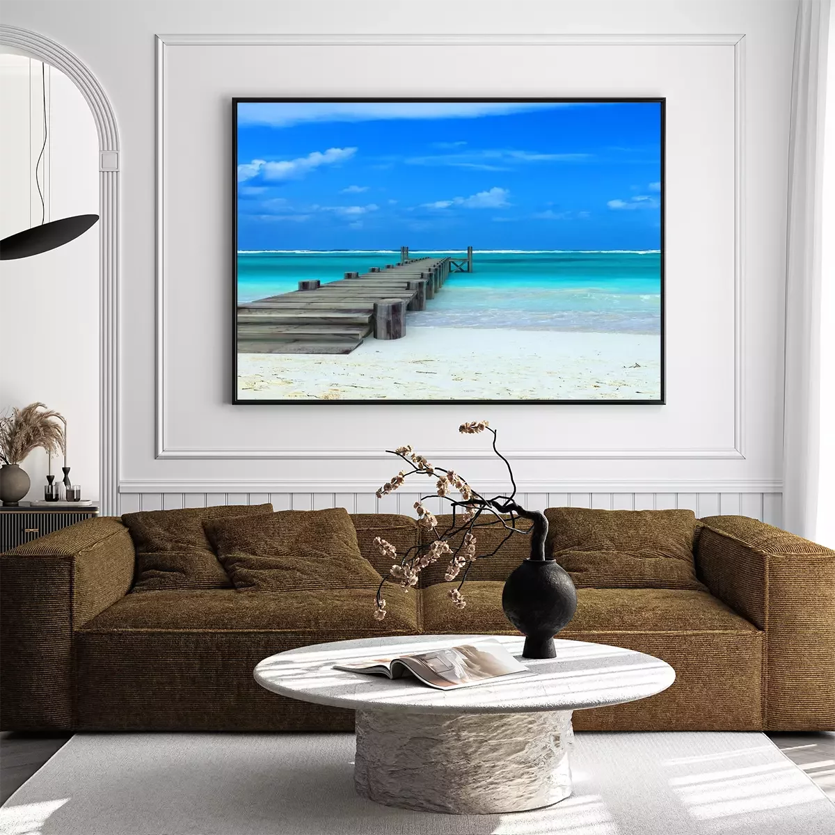Poster: Pier en zee op een exotisch landschap