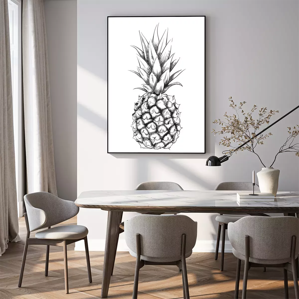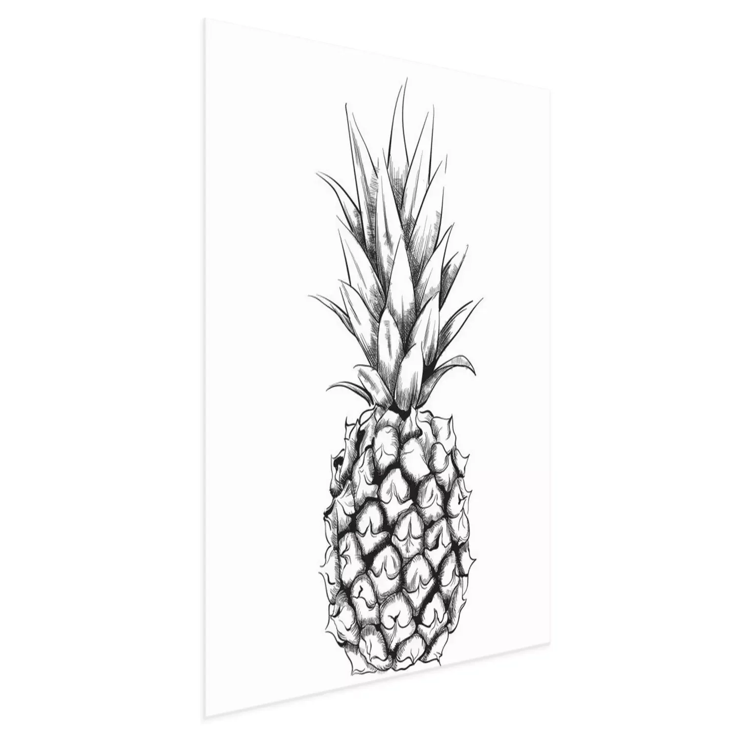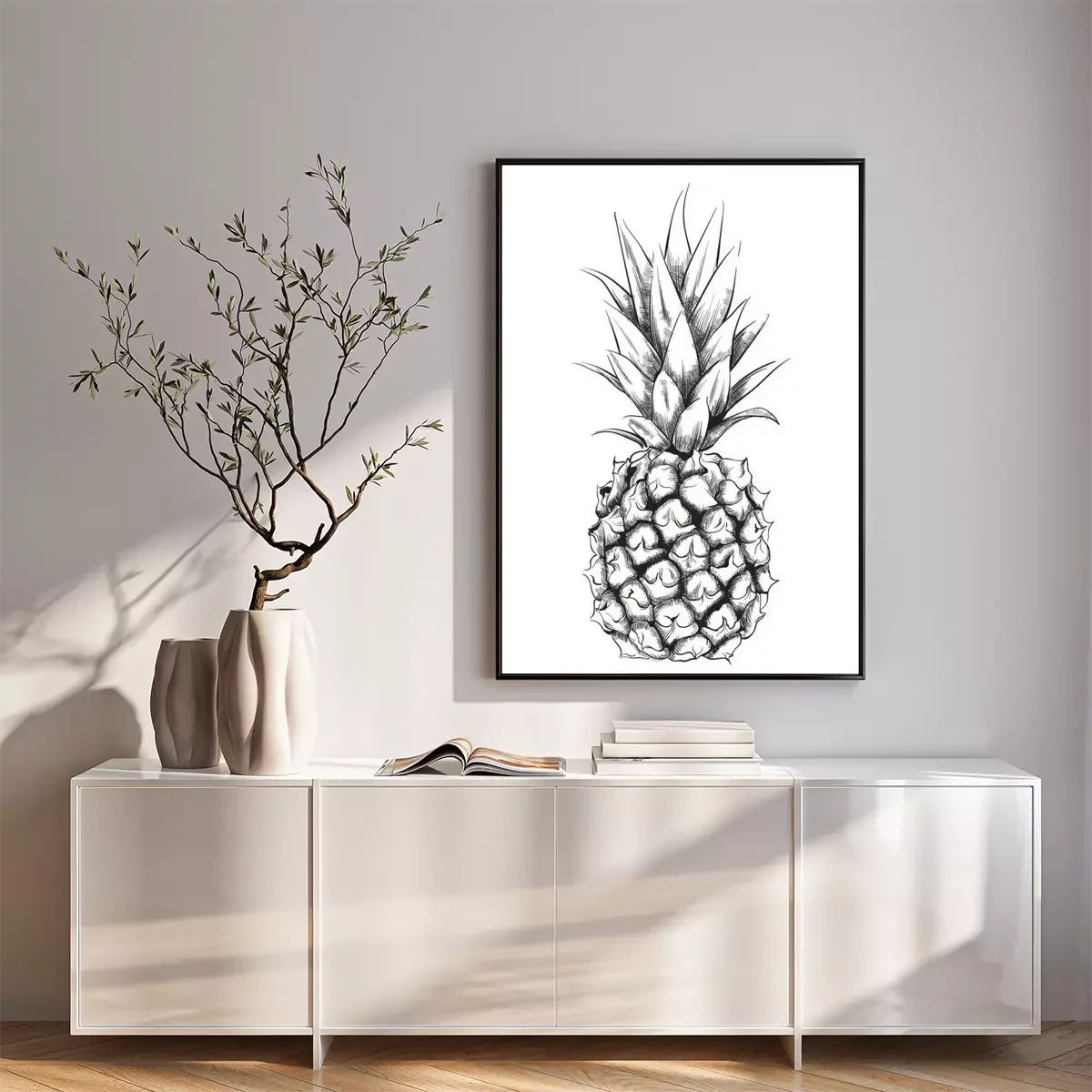 Poster: Pineapple vector line art. Vintage design fruit isolated on whites
