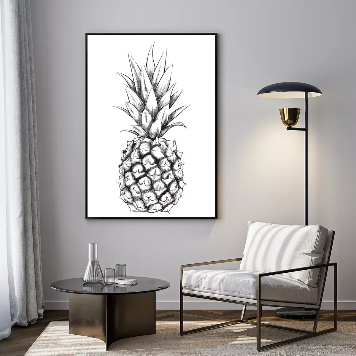 Poster Pineapple vector line art. Vintage design fruit isolated on whites
