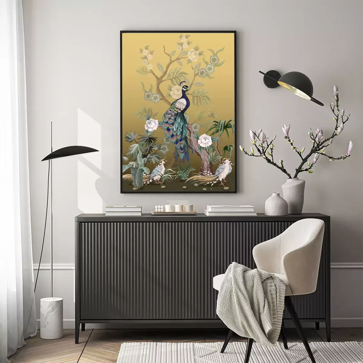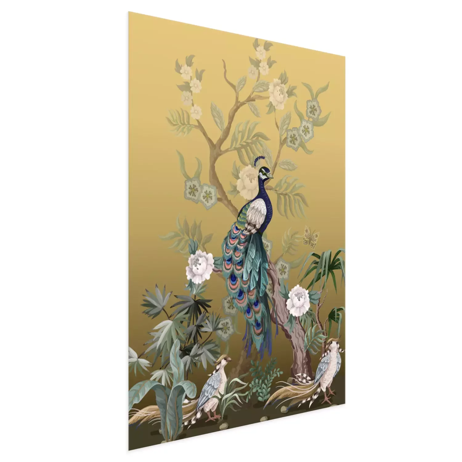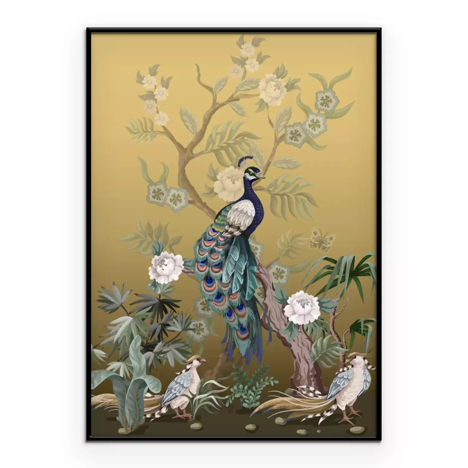 Poster: Pioenrozen en pauwen in Japanse stijl