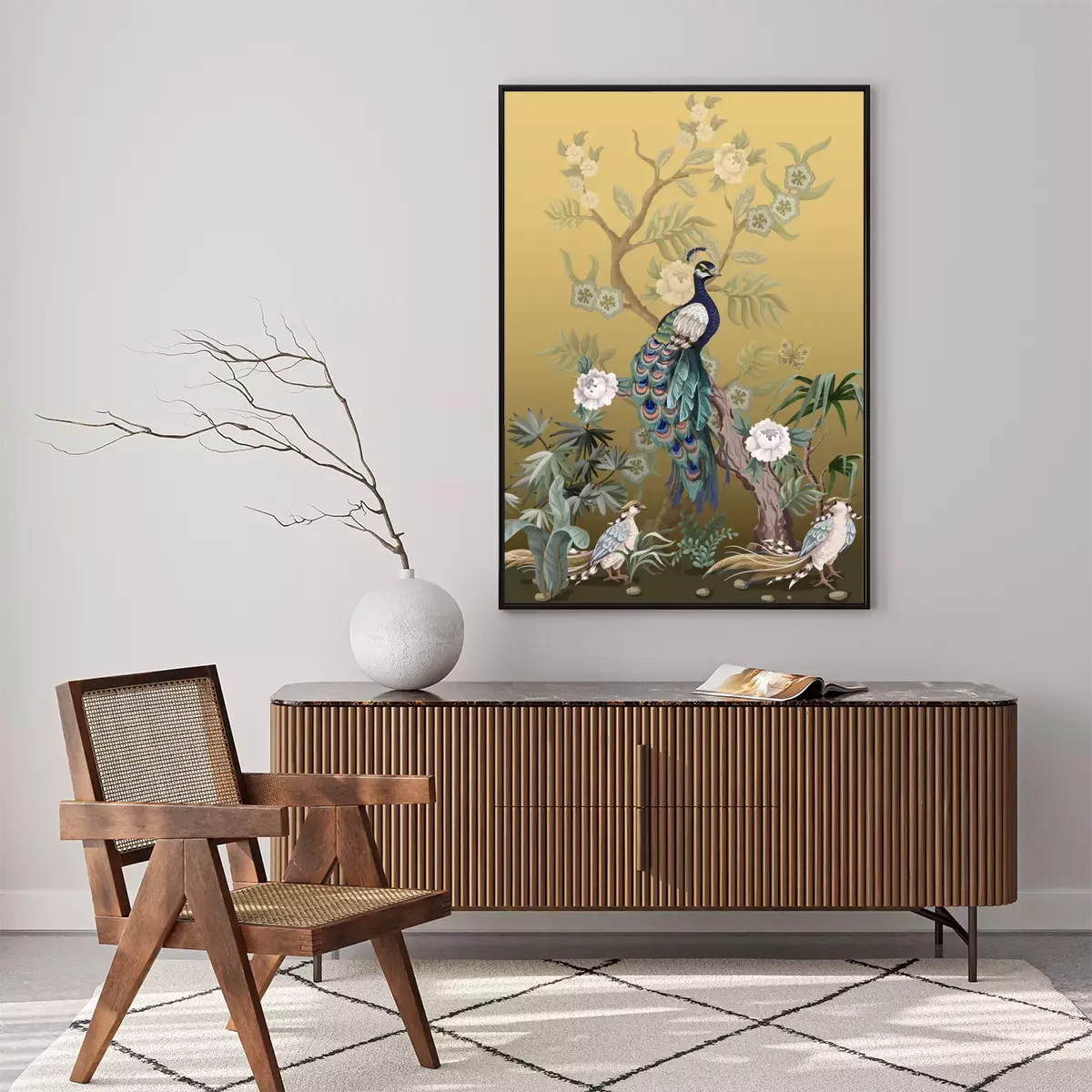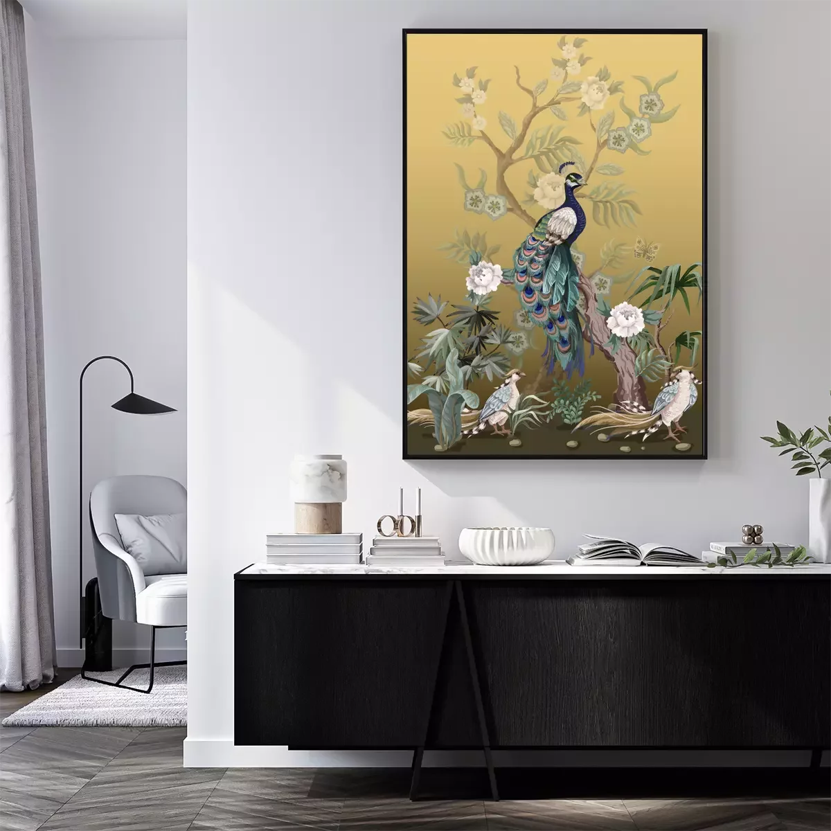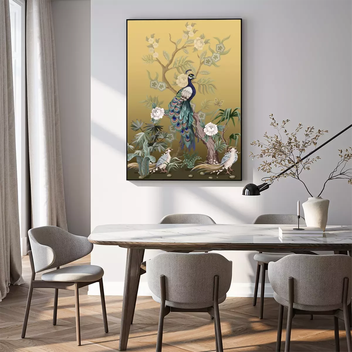 Poster: Pioenrozen en pauwen in Japanse stijl