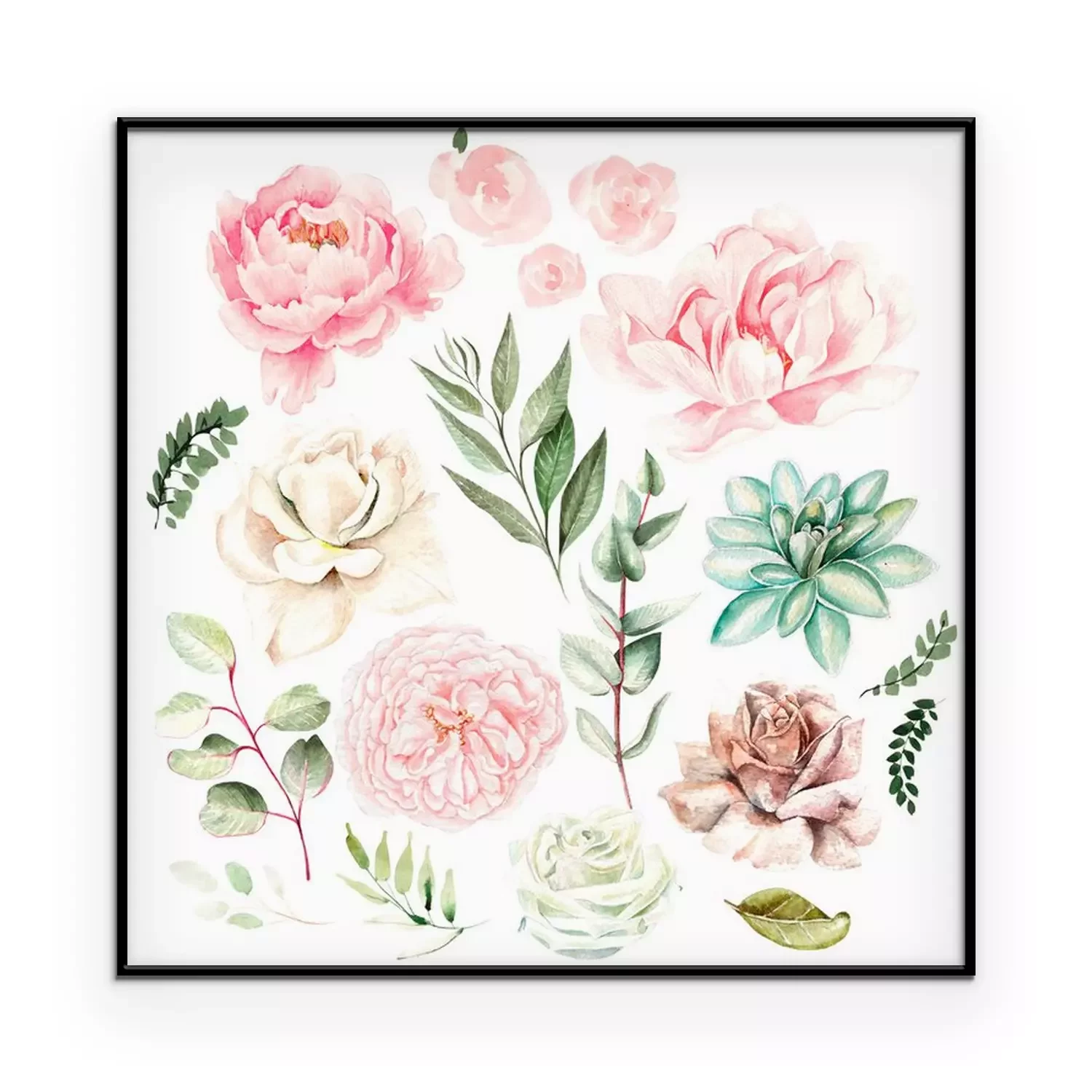 Poster: Pioenrozen, rozen en eucalyptus romantisch naadloos patroon