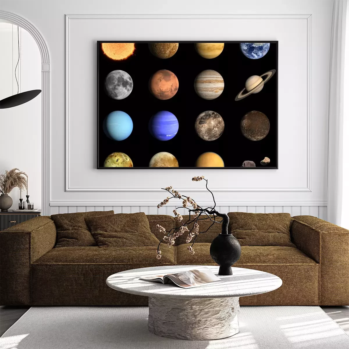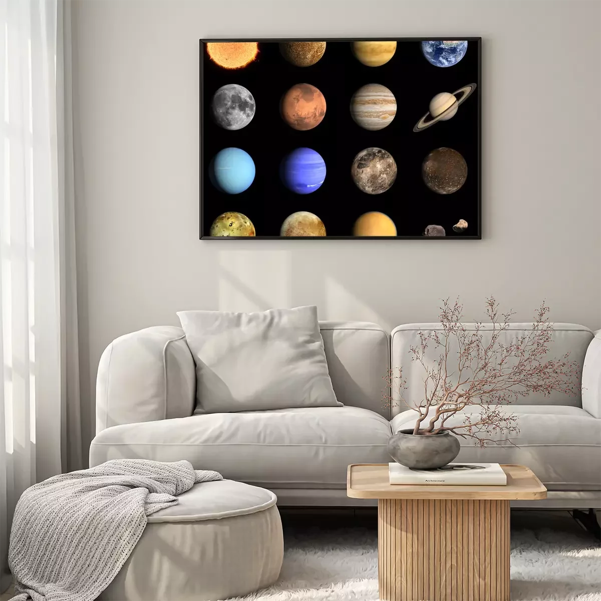 Poster Planeten en sommige Manen van het Zonnestelsel