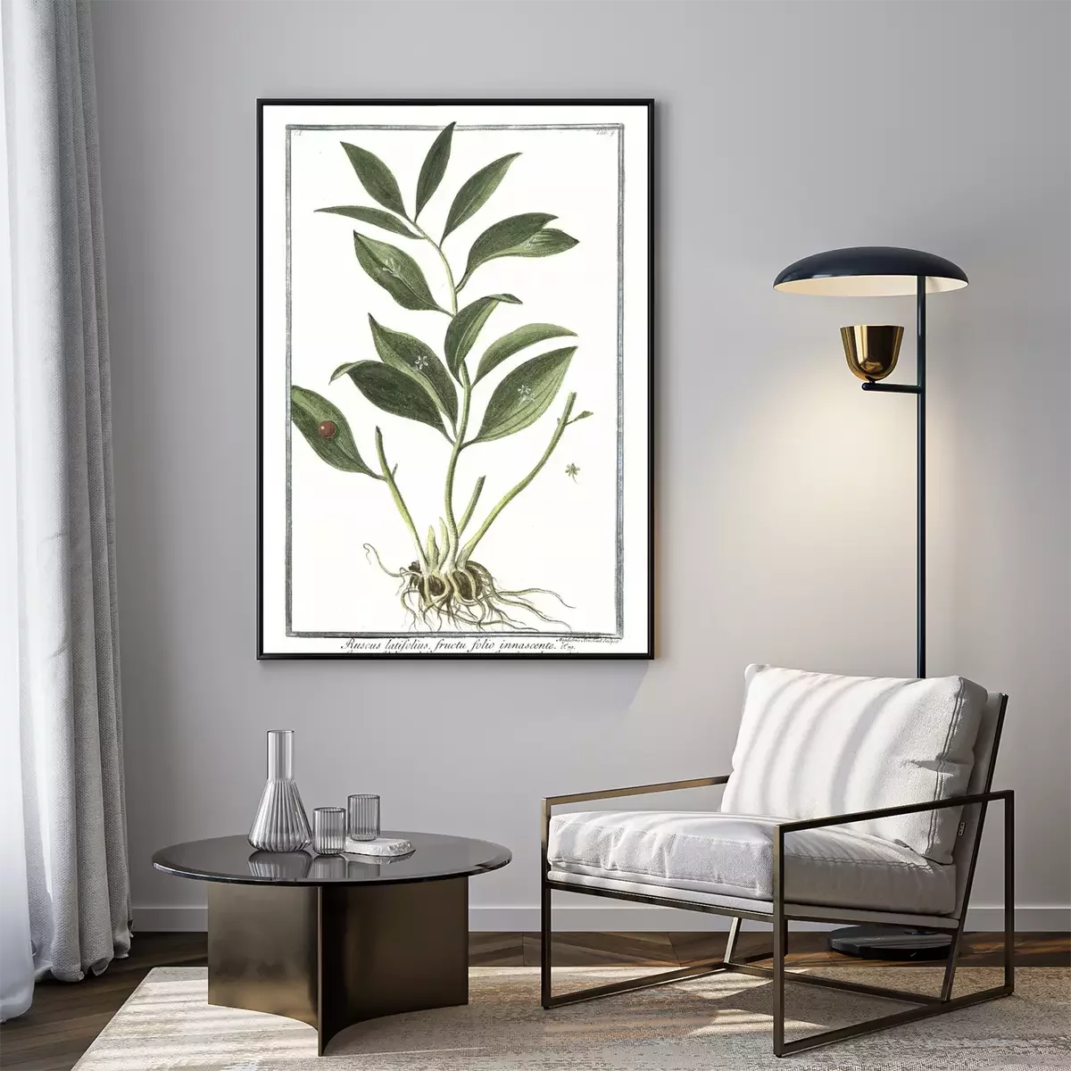 Gravure van een exotische plant in een groene lijst