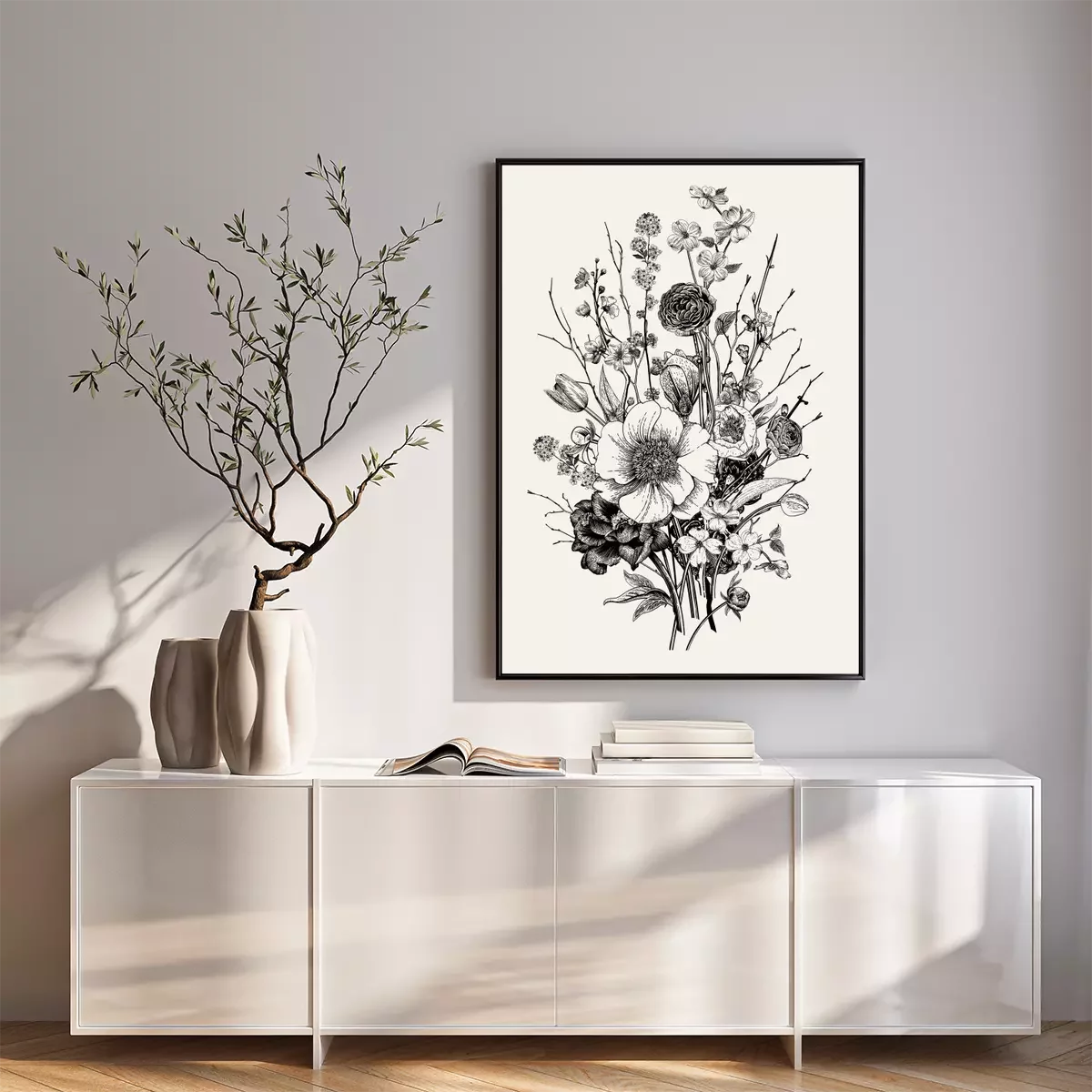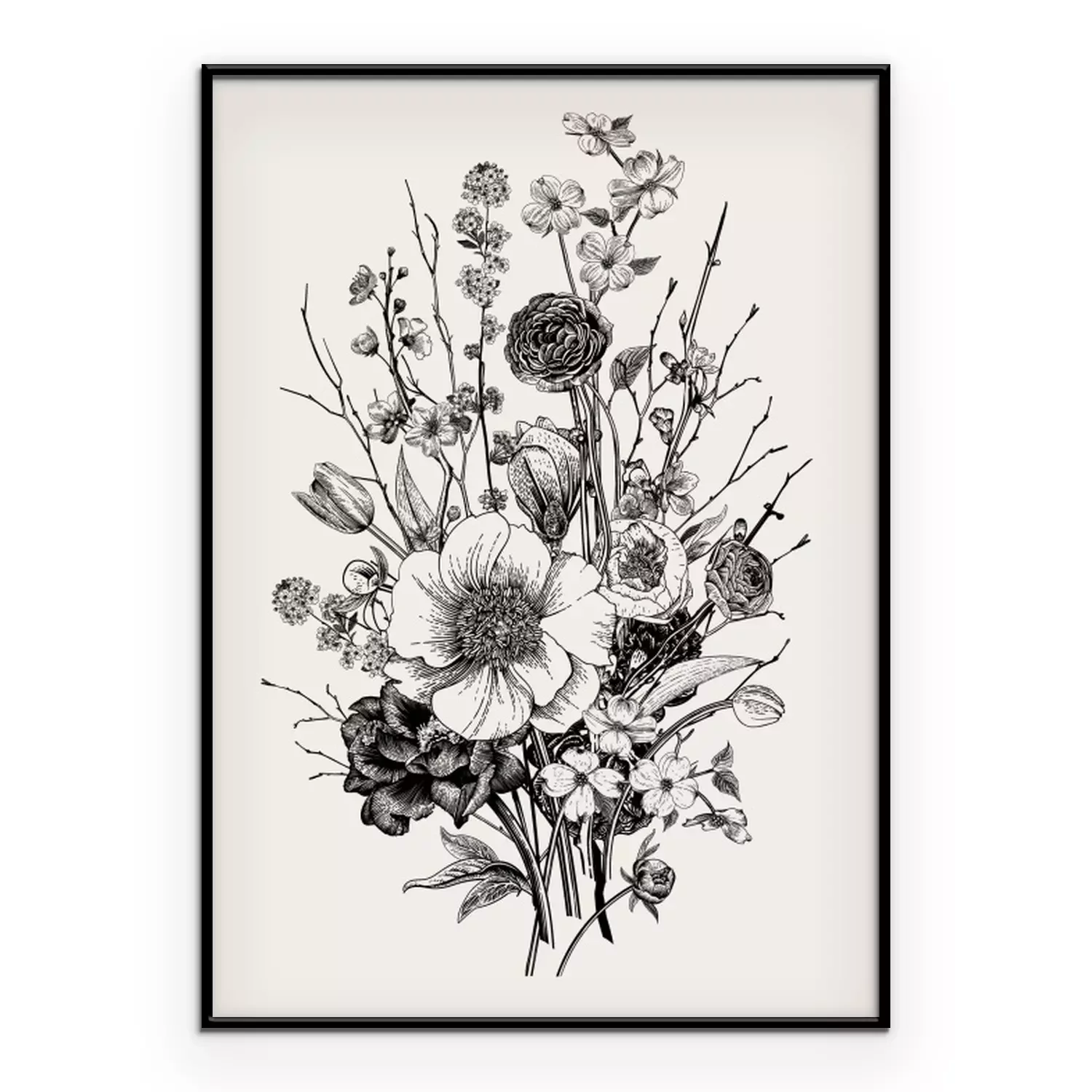 Poster: Planten gerangschikt in een boeket retro illustratie