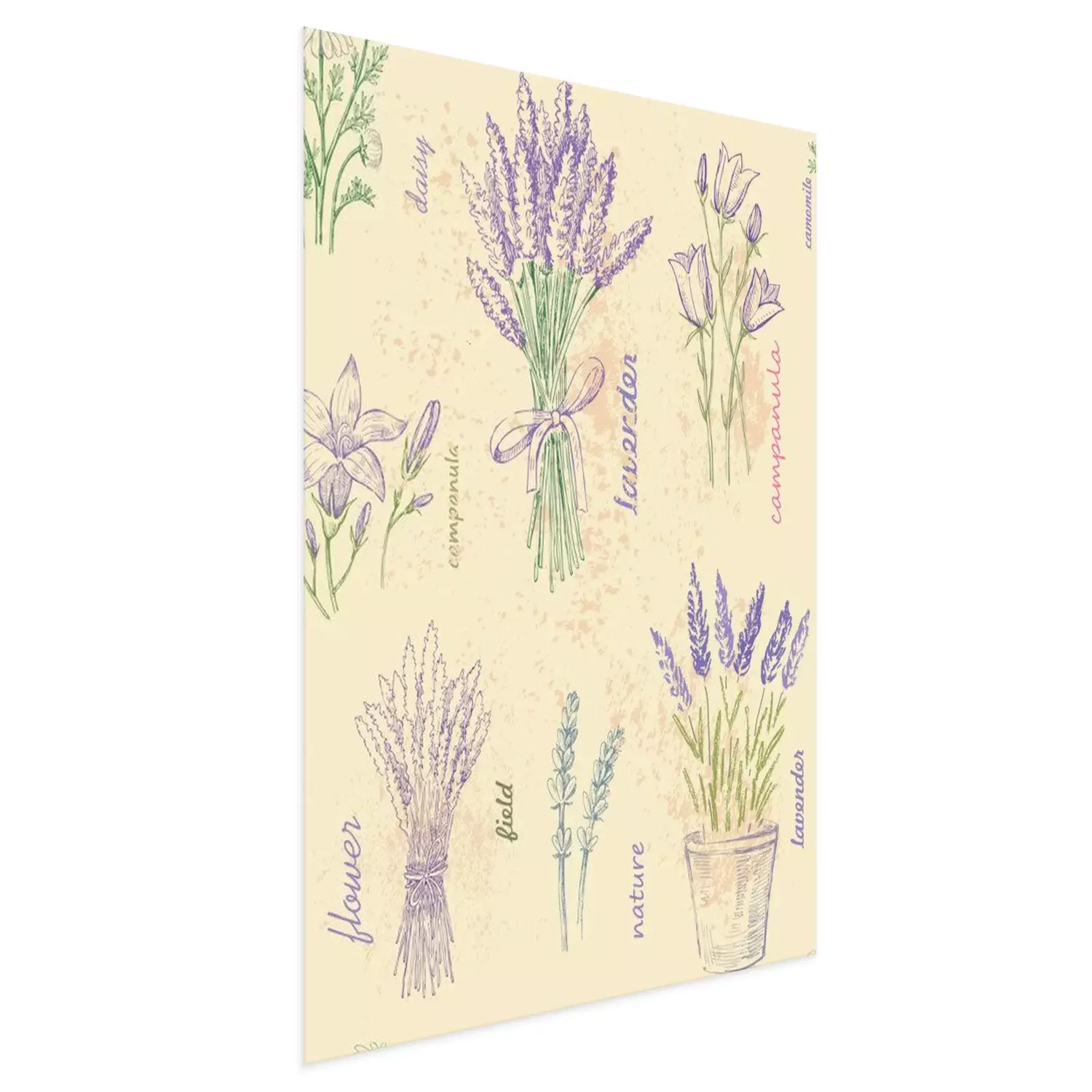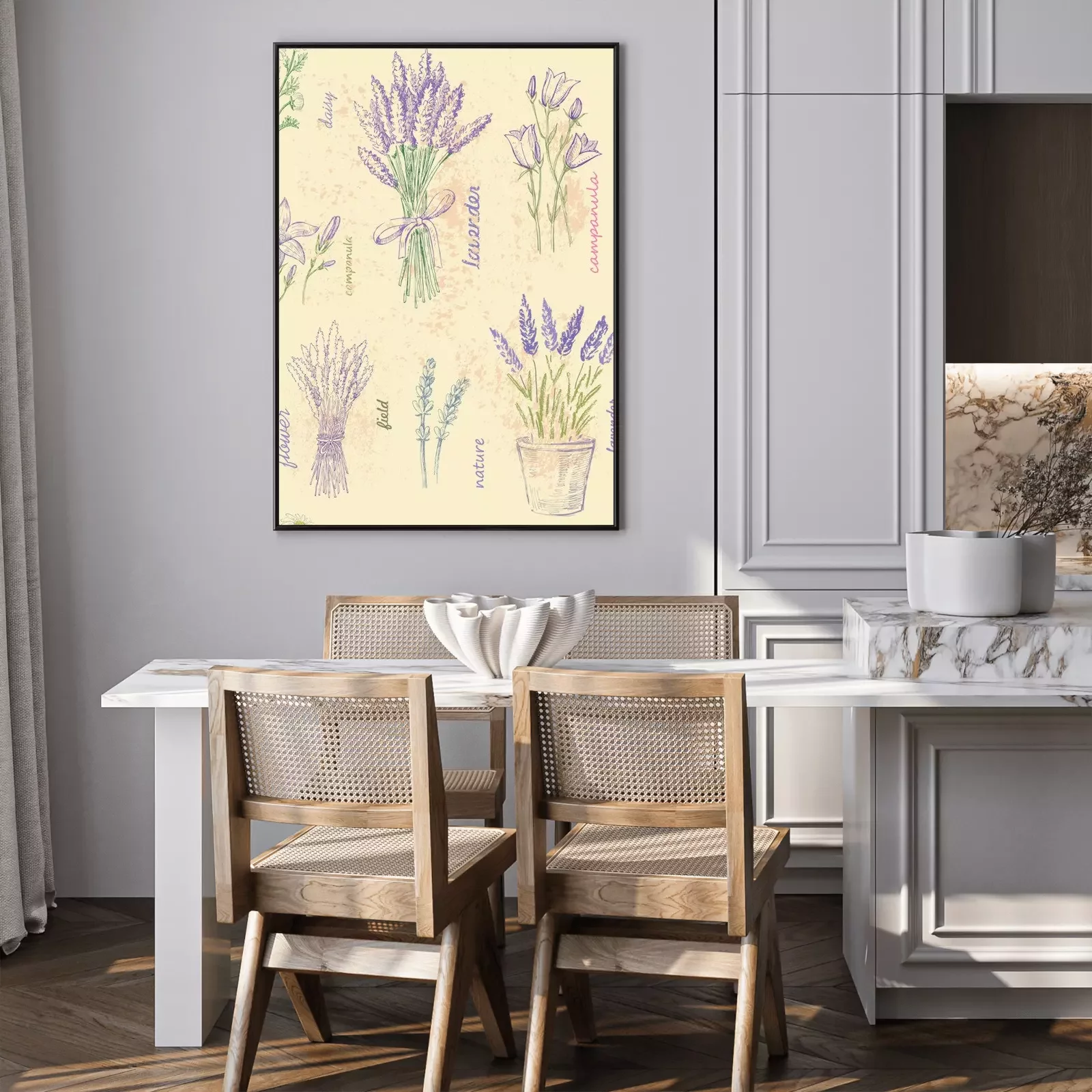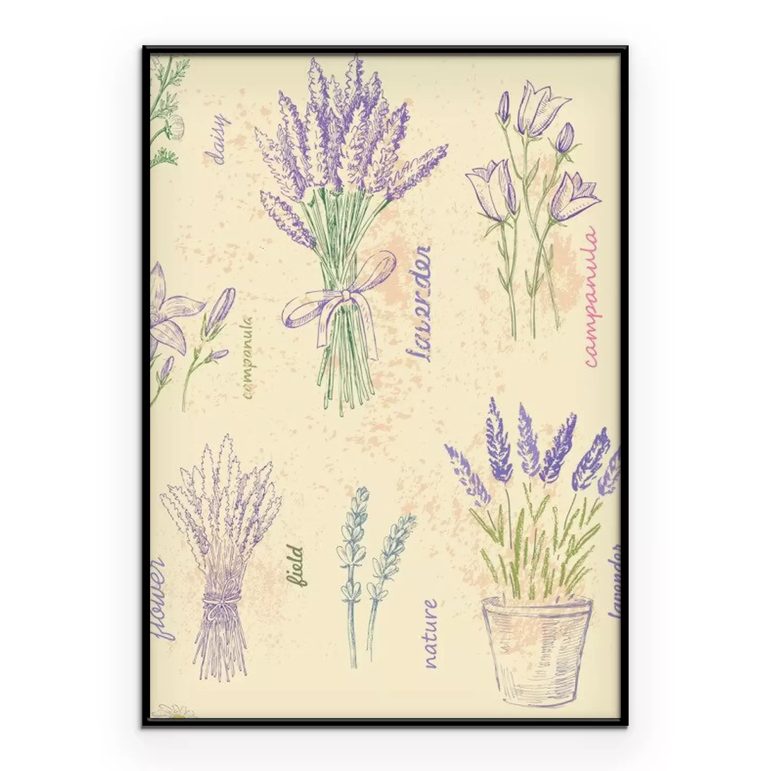 Poster: Planten met paarse bloemen en gestileerde handtekeningen