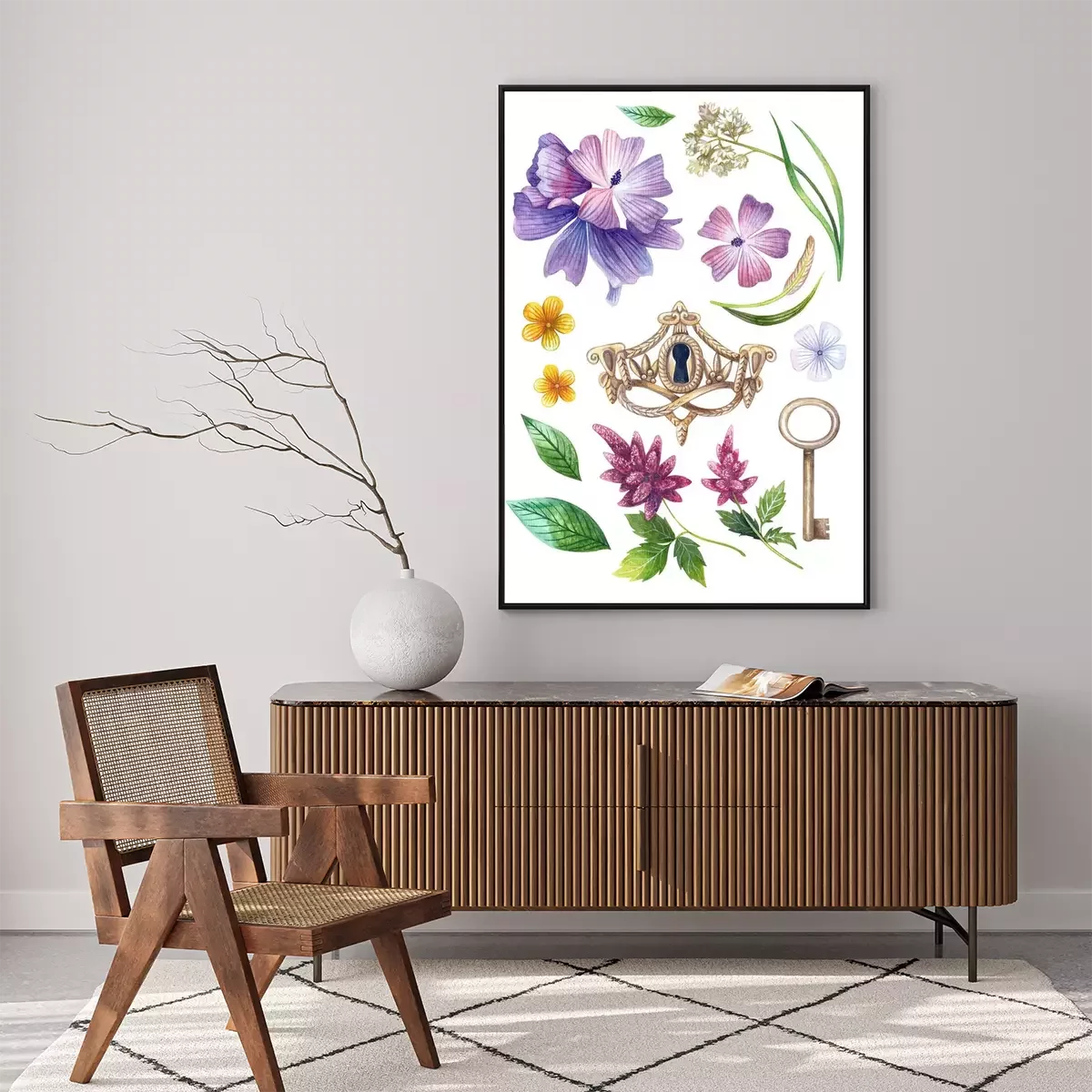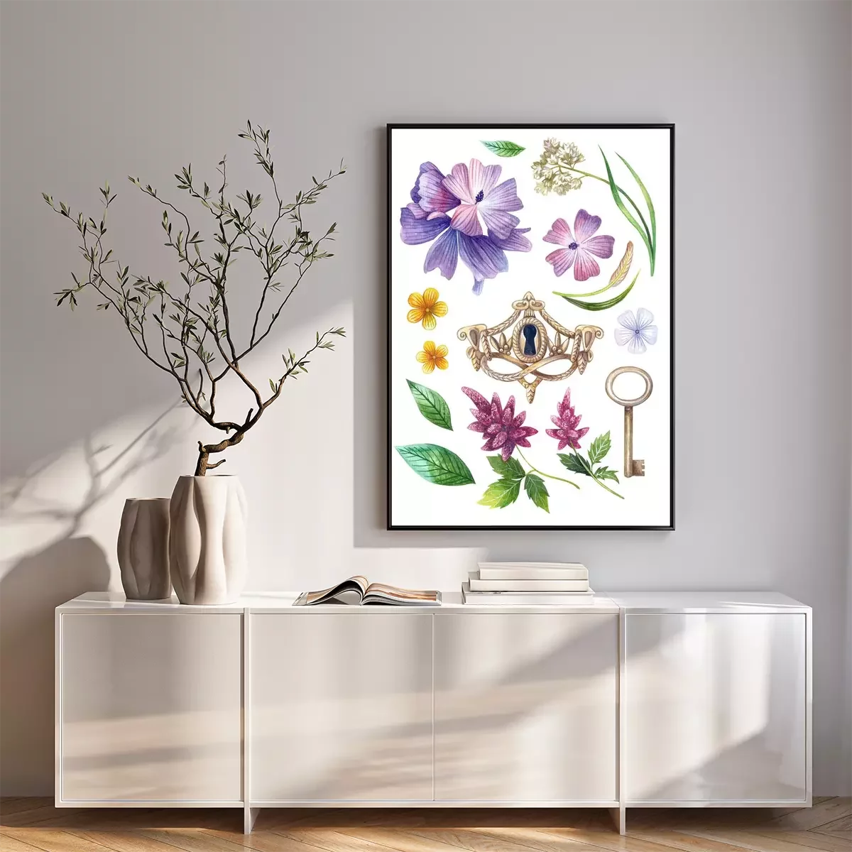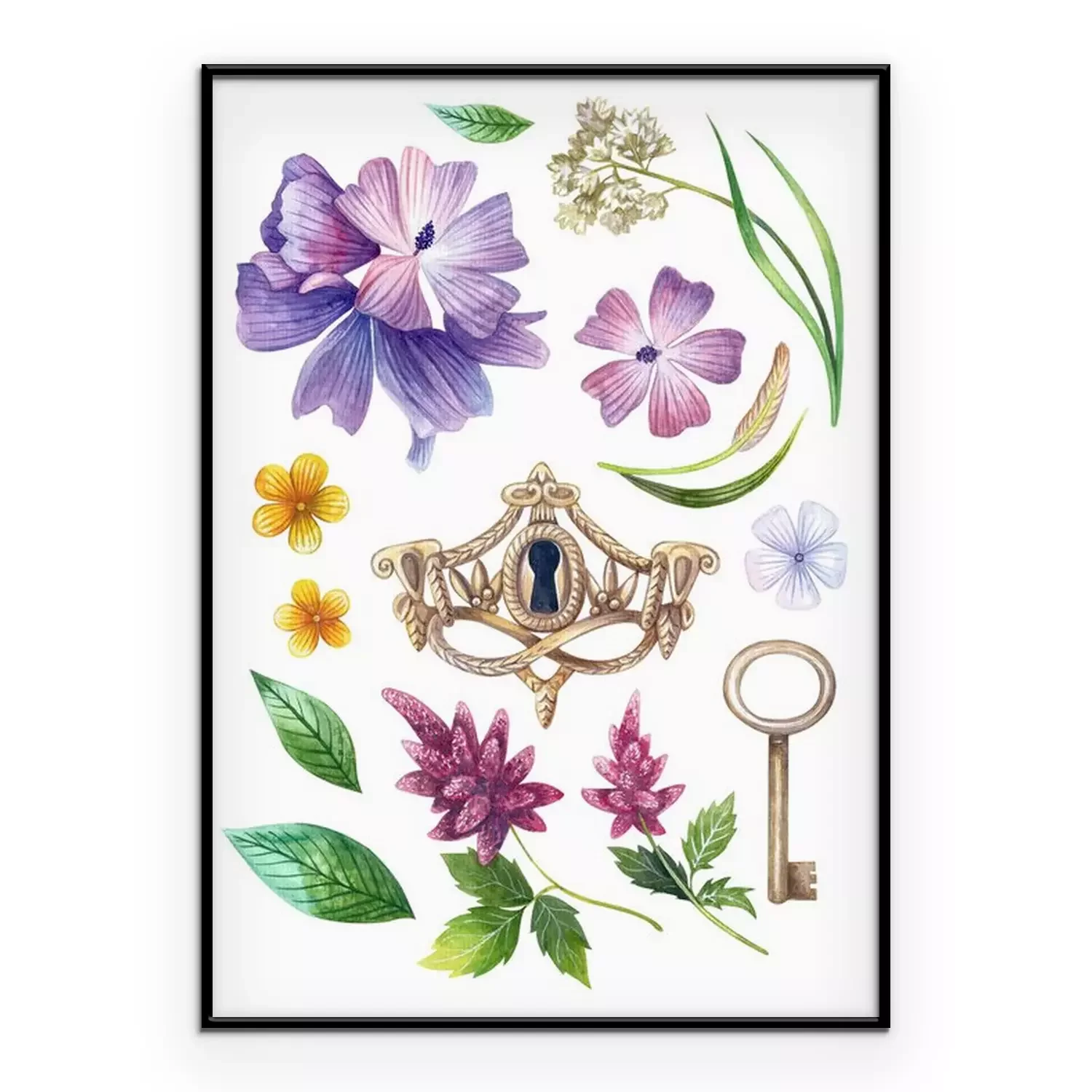 Poster: Planten mysterieuze tuin met sleutel en slot