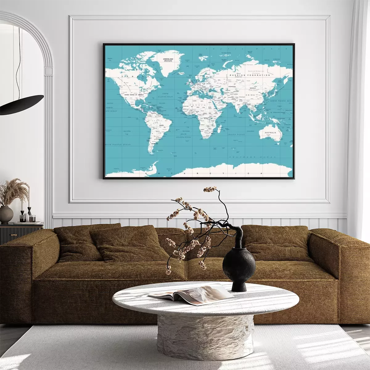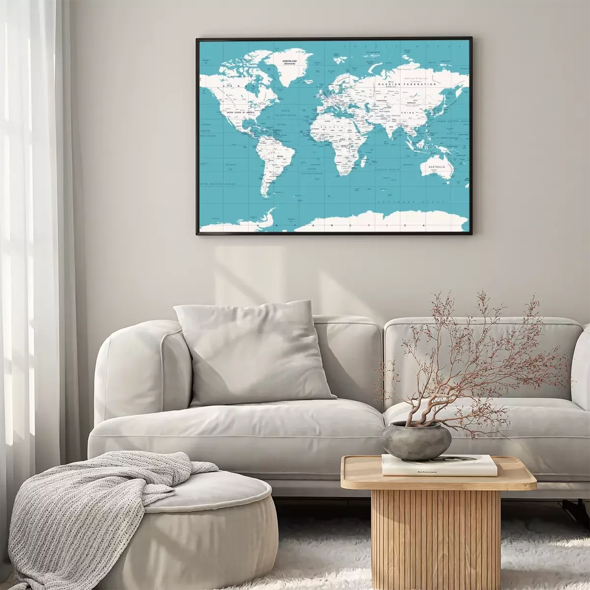 Staalblauwe wereldkaart