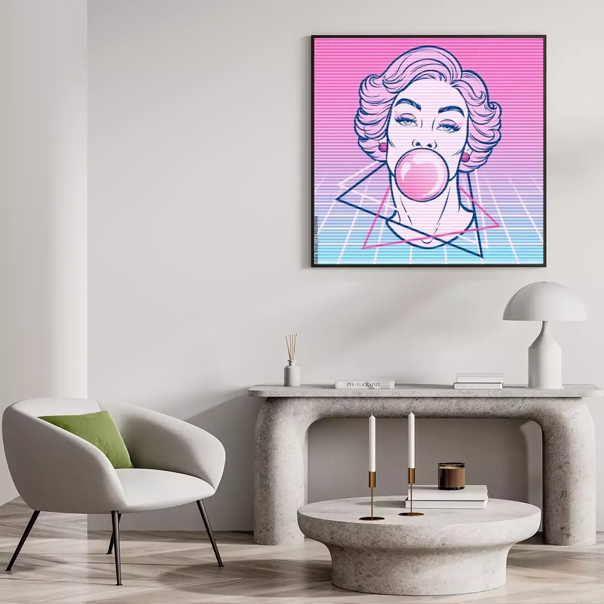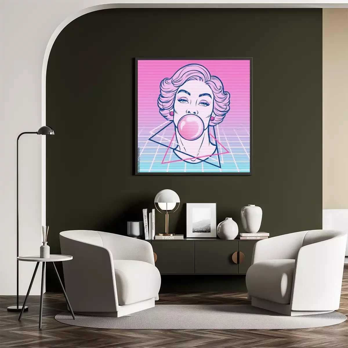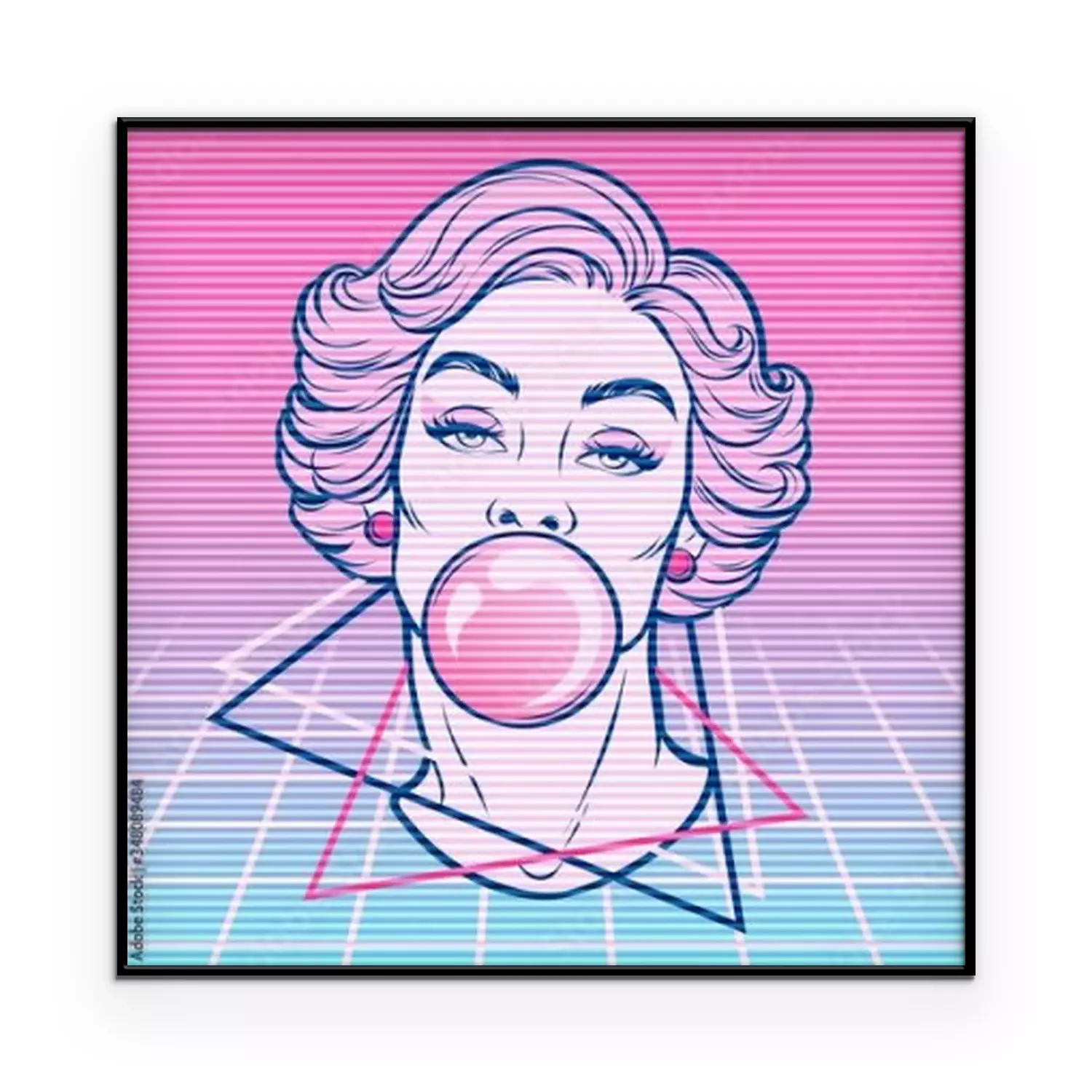 Poster: Popart afbeelding van een vrouw met kauwgom
