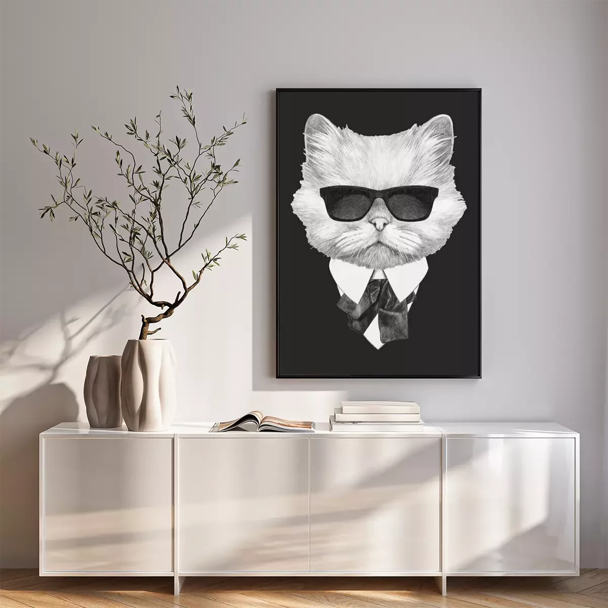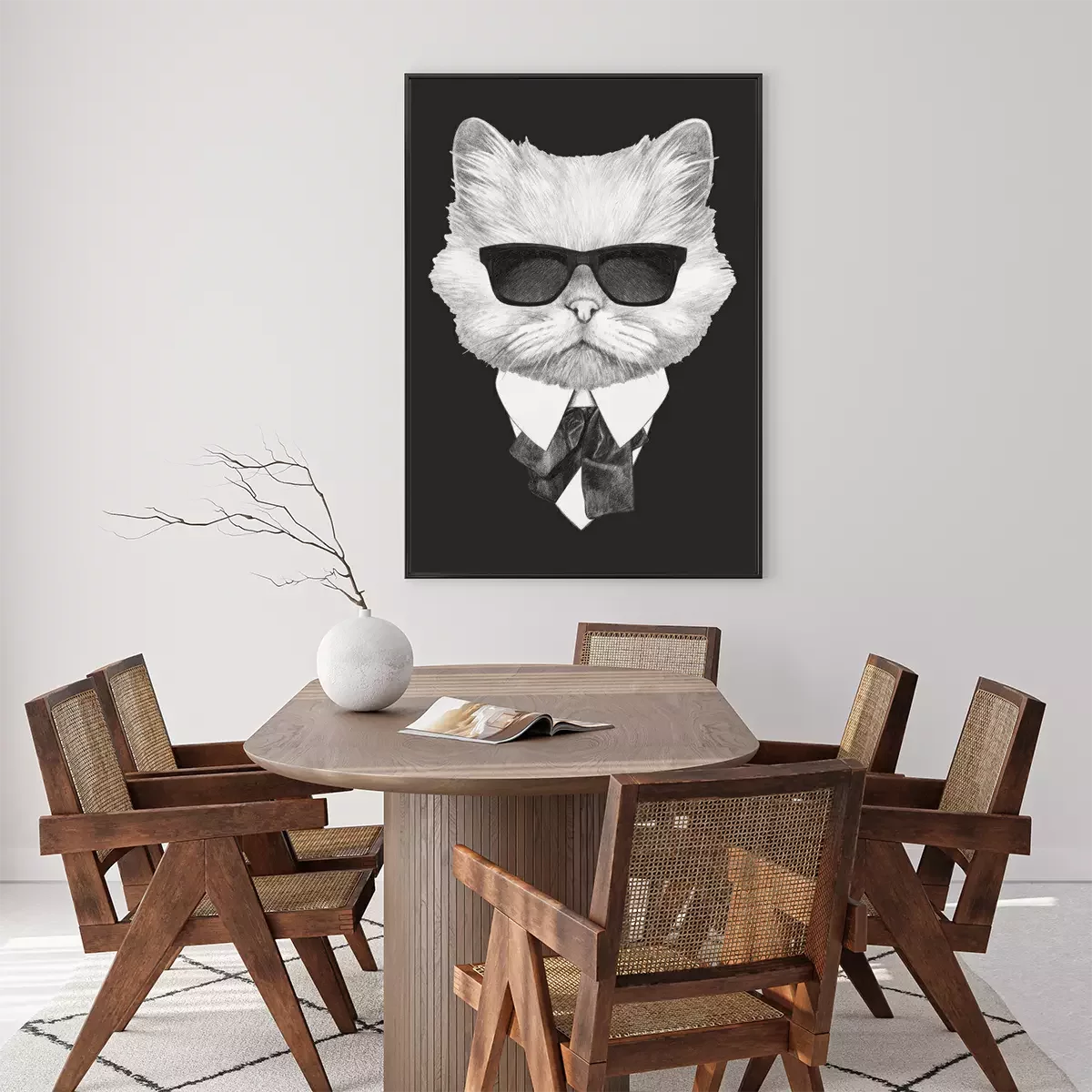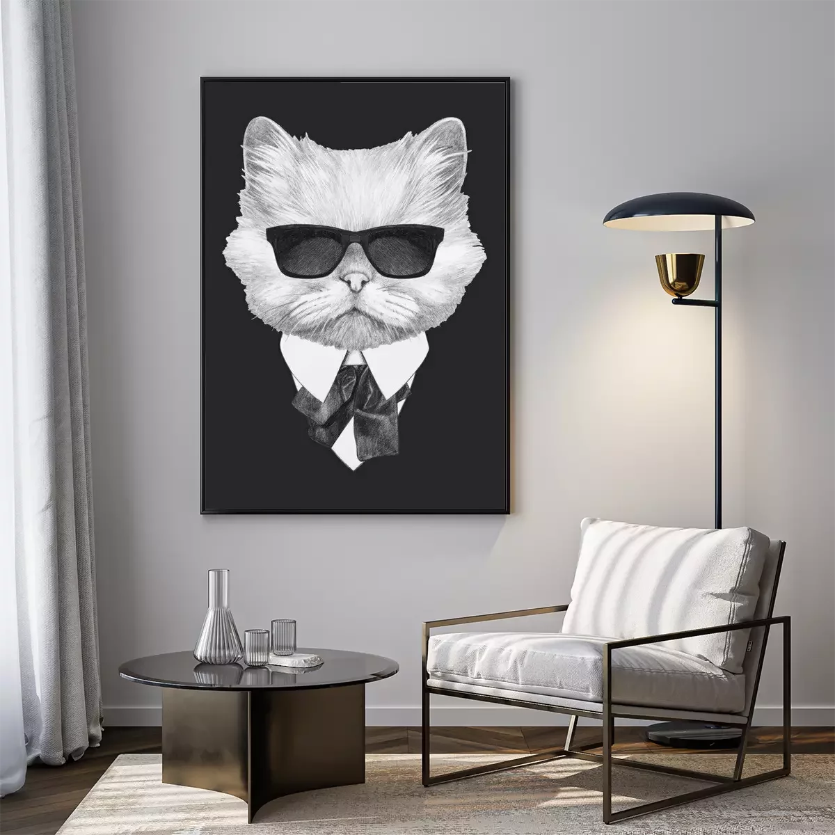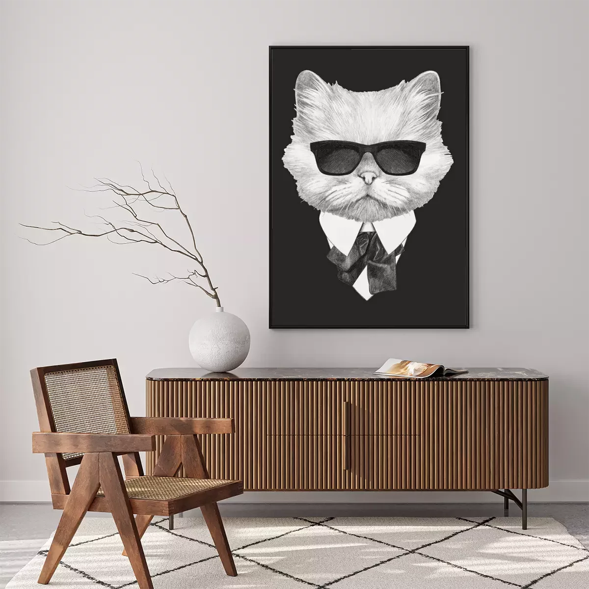 Poster: Portrait of Persian Cat in suit. Hand-drawn illustration. Vector isolated elements.