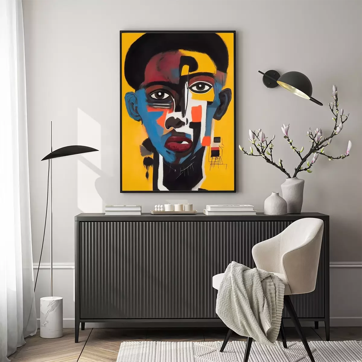 Poster: Portret van een man in Basquiat-kunststijlen