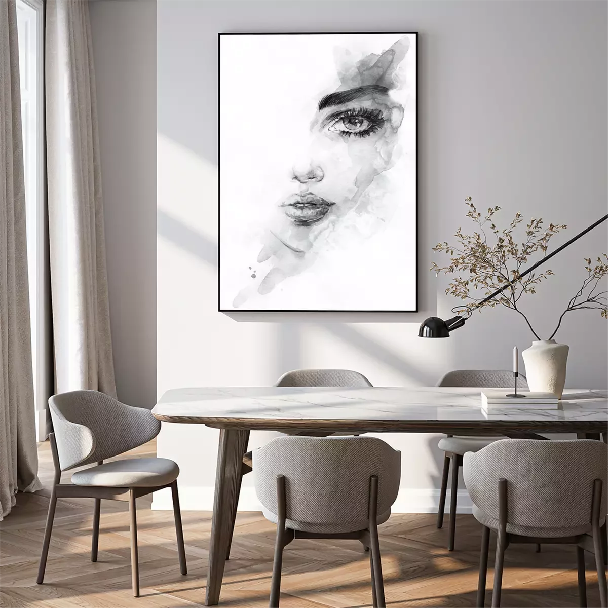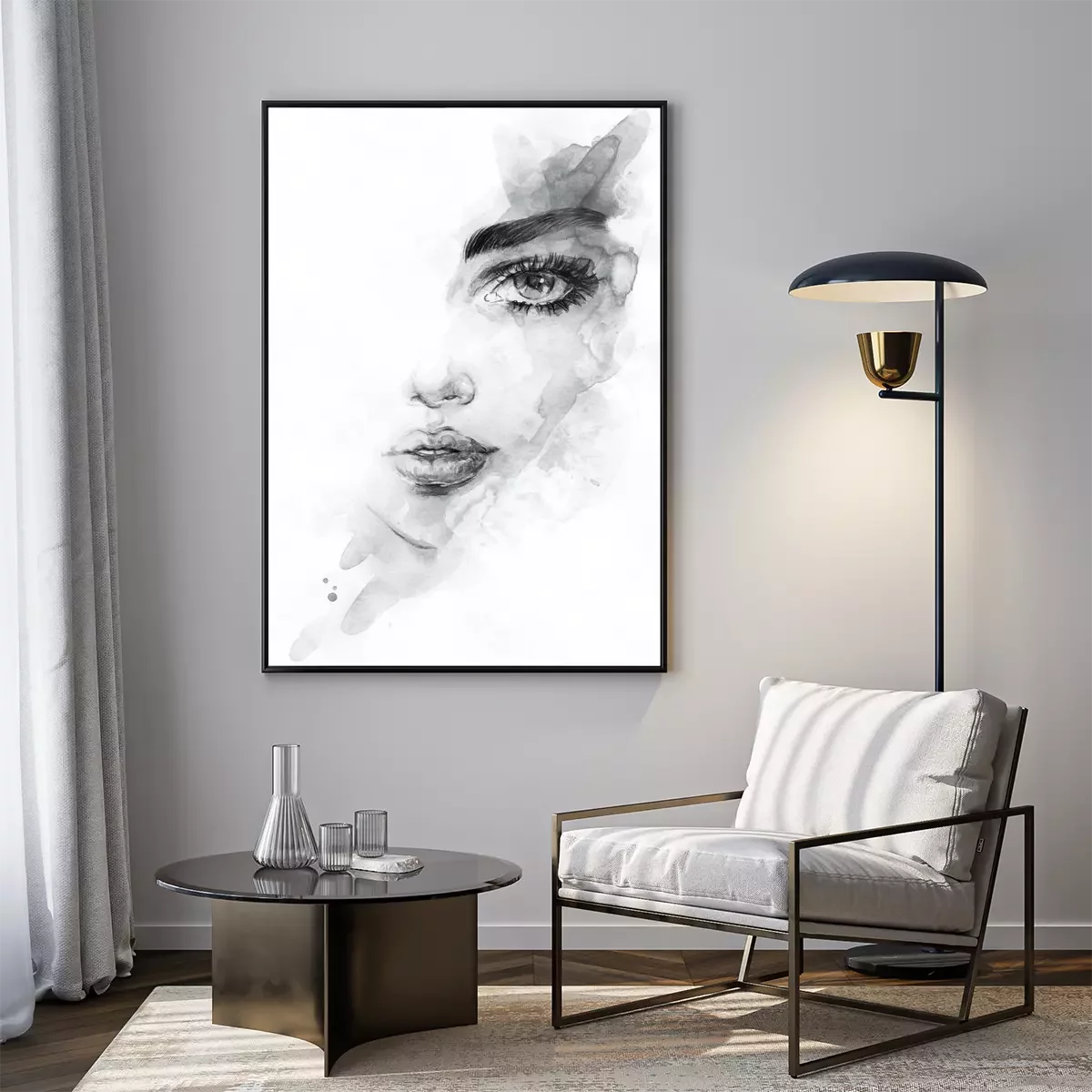 Poster: Portret van een mooie vrouw in de schaduw gestelde illustratie
